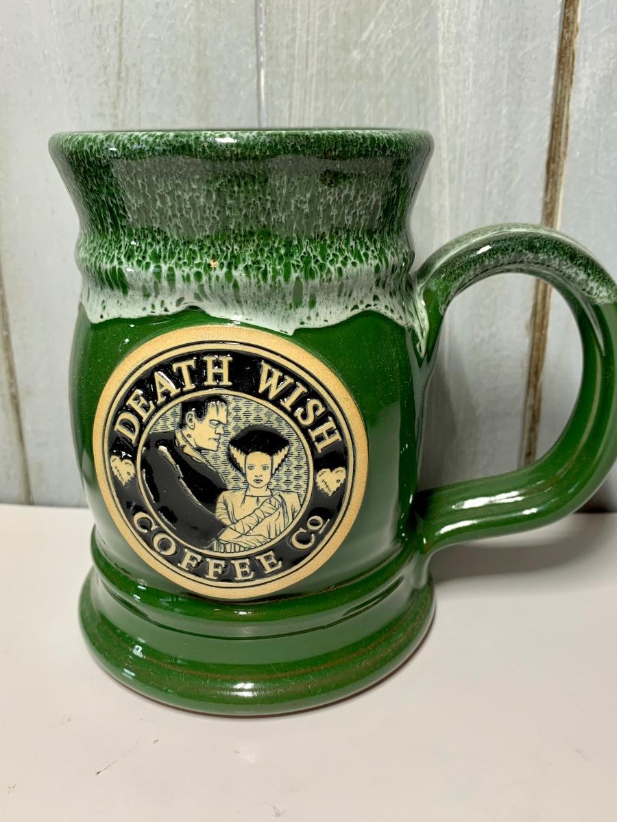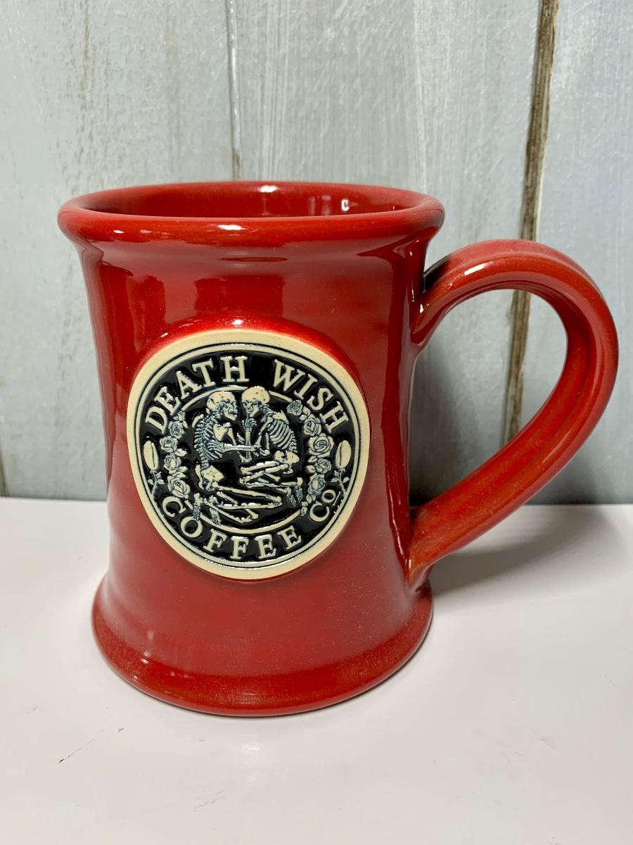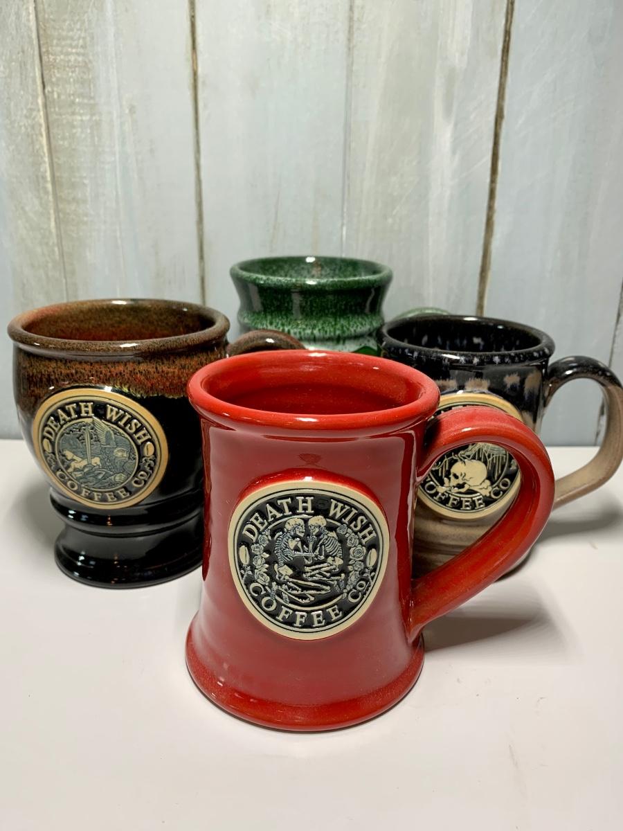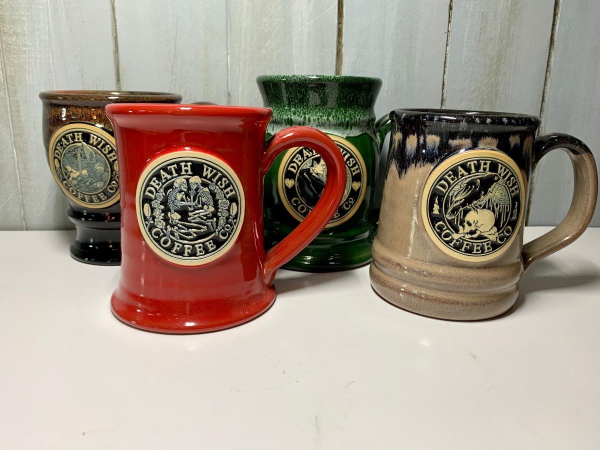 Highly collectible bundle of 4 Death Wish Coffee mugs hand thrown by Deneen Pottery.