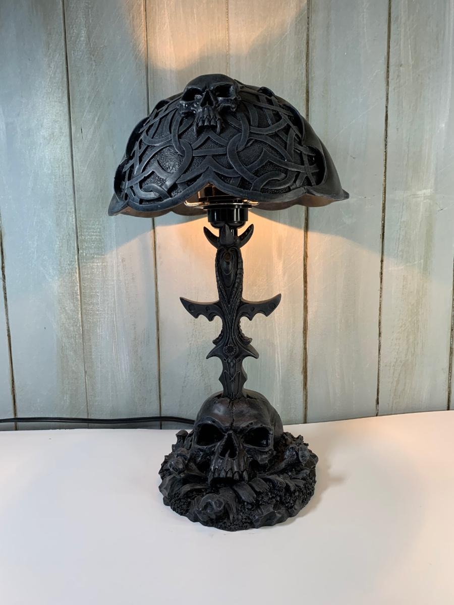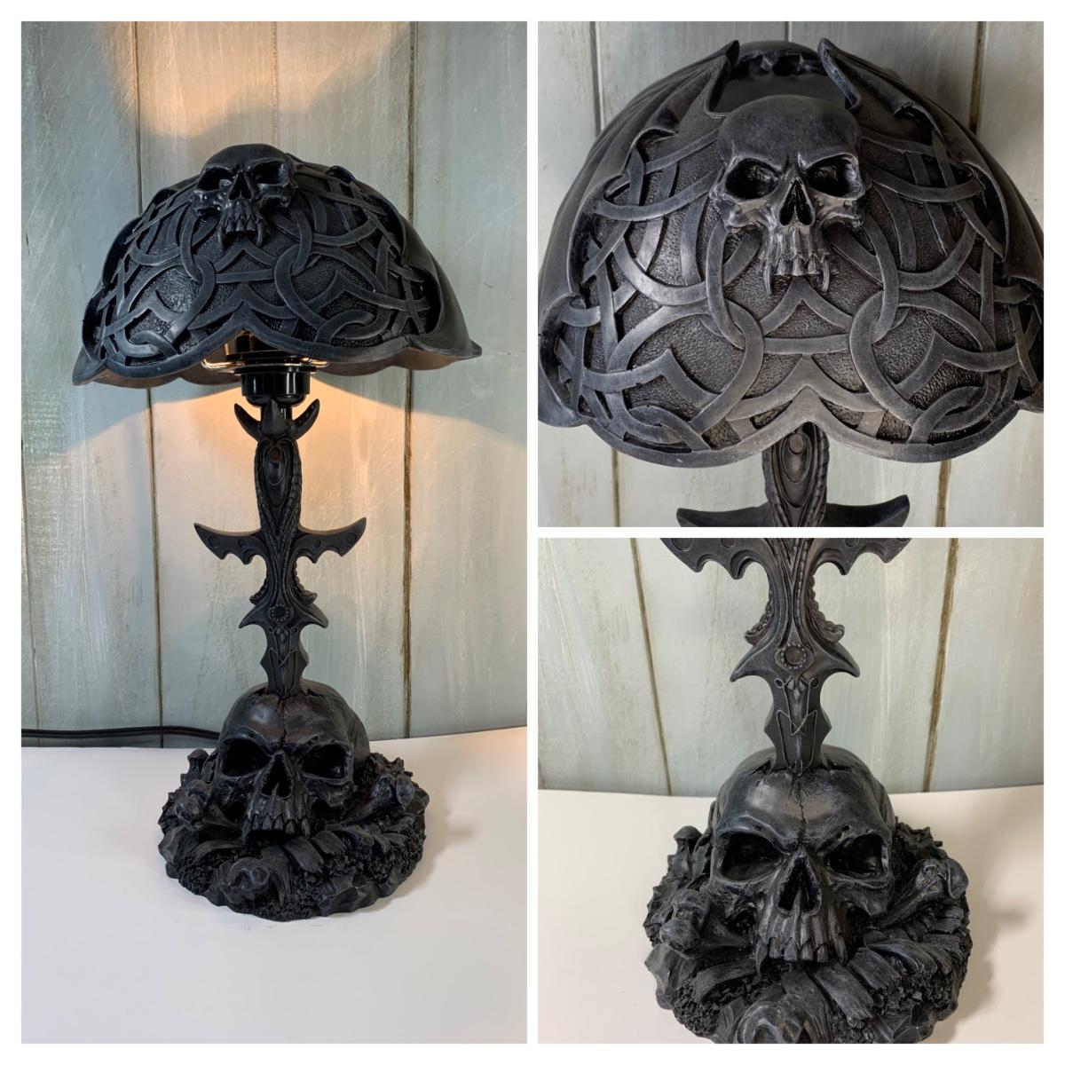 Death Sword Resin Skull Table Lamp Gothic, Heavy Metal, Fantasy War Craft