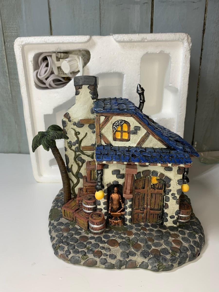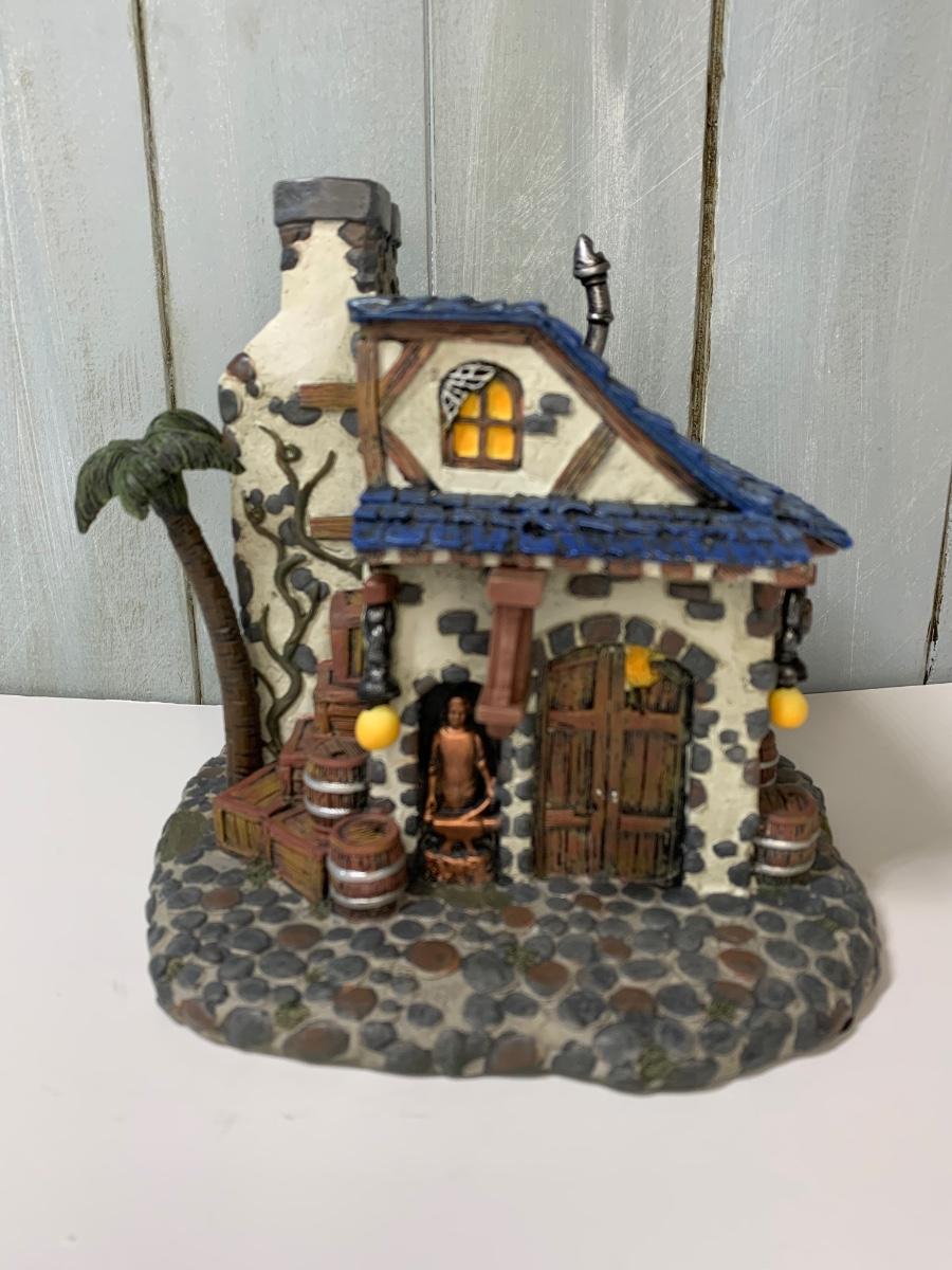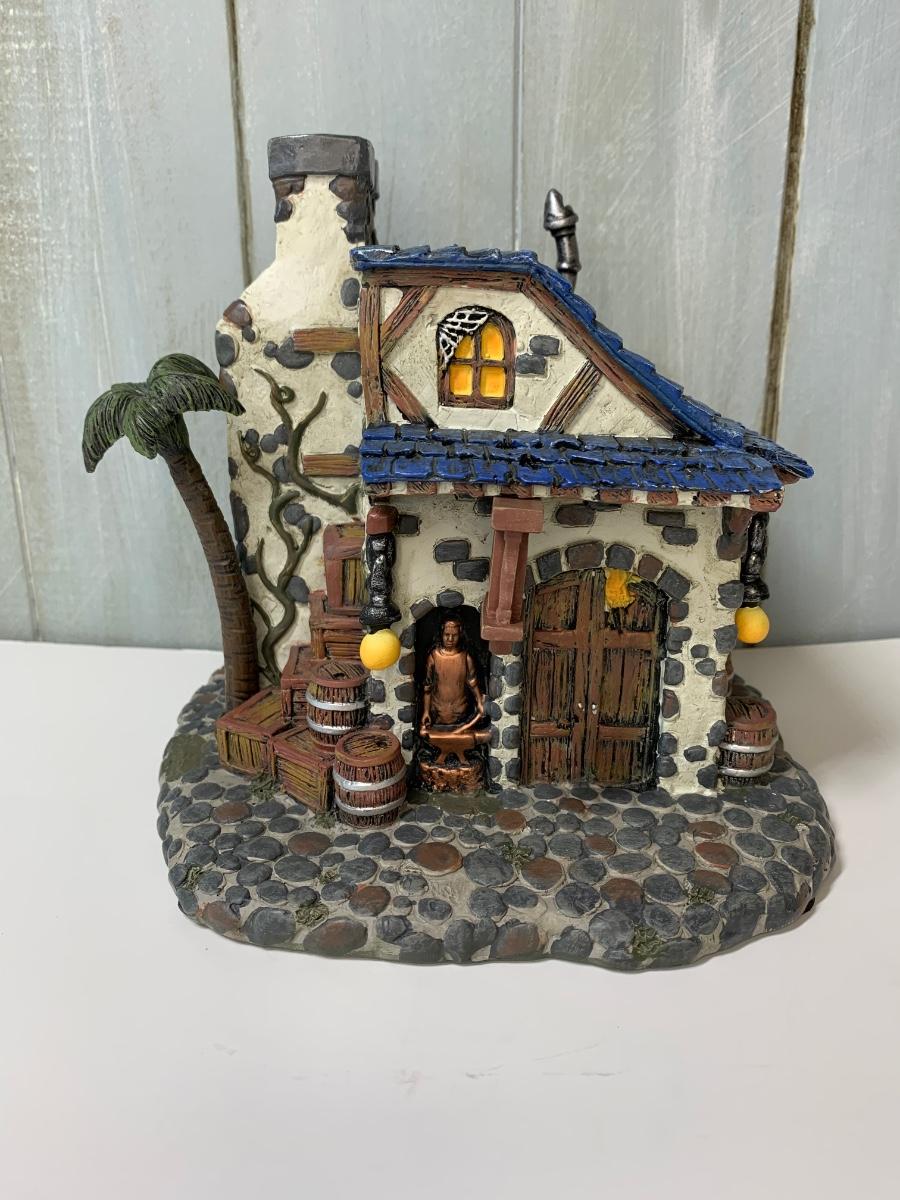 Collectible Pirates of the Caribbean Hawthorne Village Blacksmith and figures.