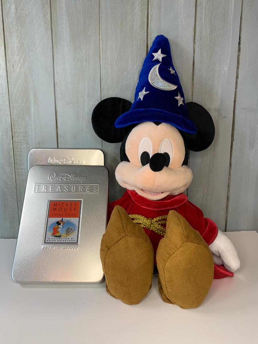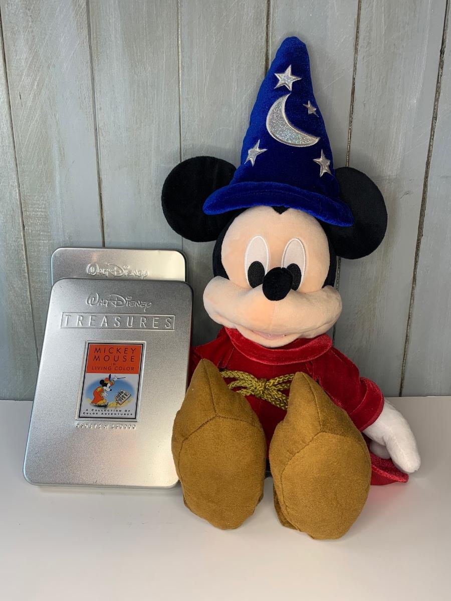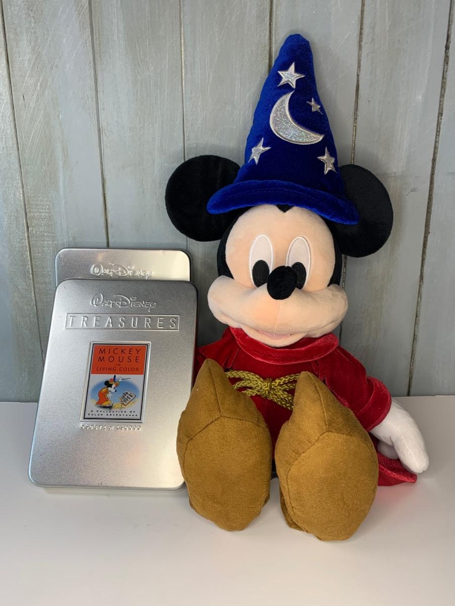 Walt Disney Treasures Original Meta Tin Edition DVDs: Mickey Mouse in Living Color and In living color volume 2 along with 16' plush Mickey Mouse as the Sorcerer.