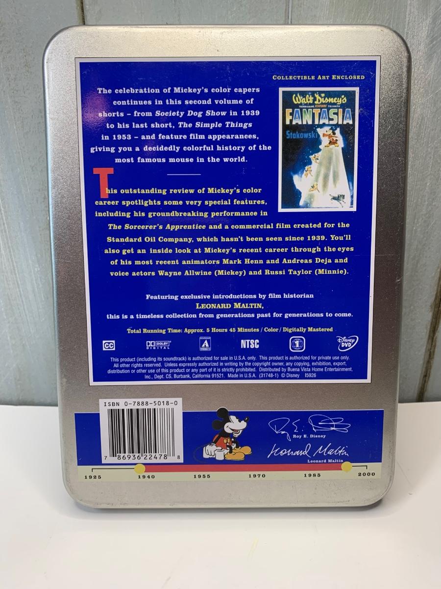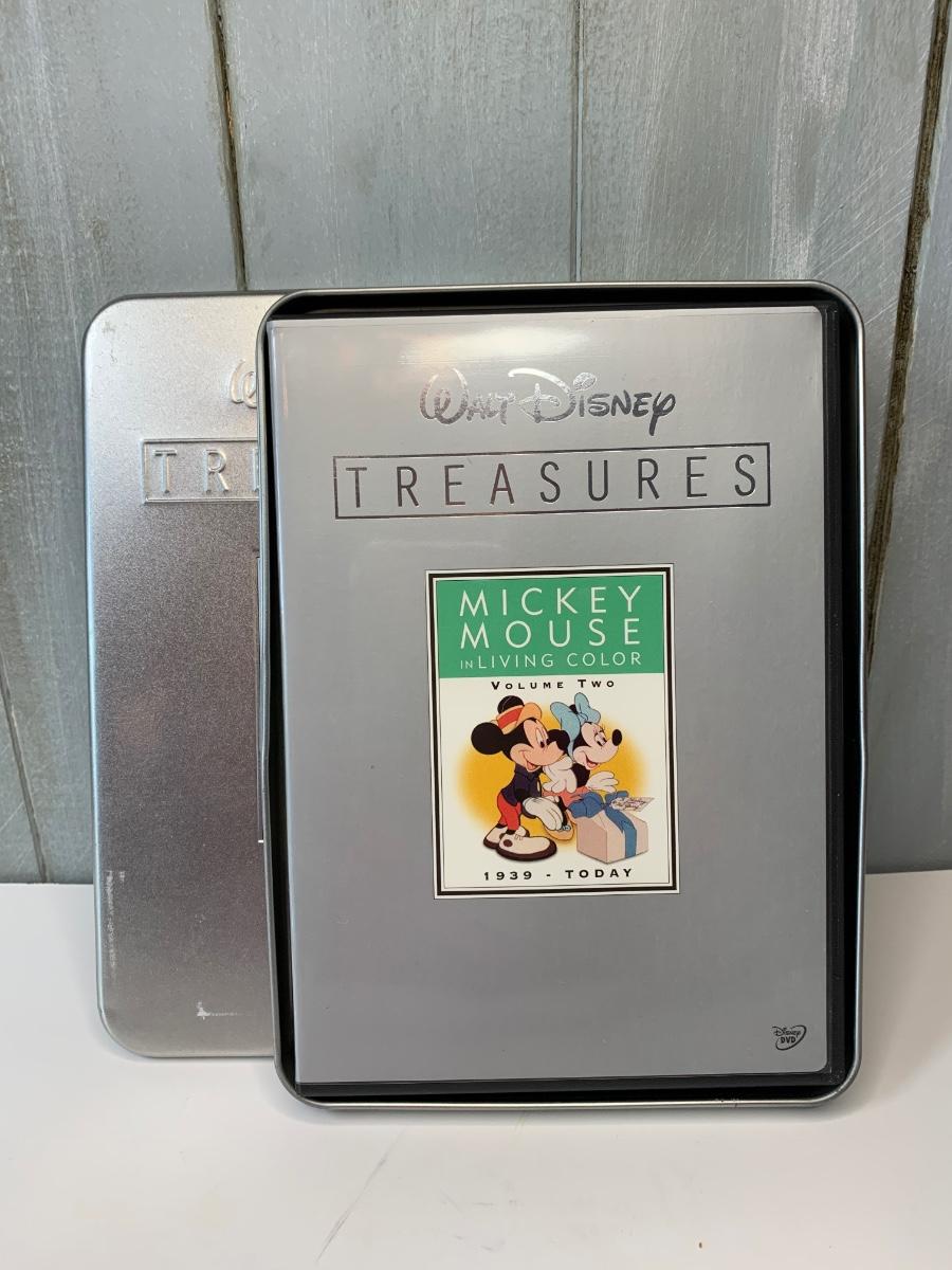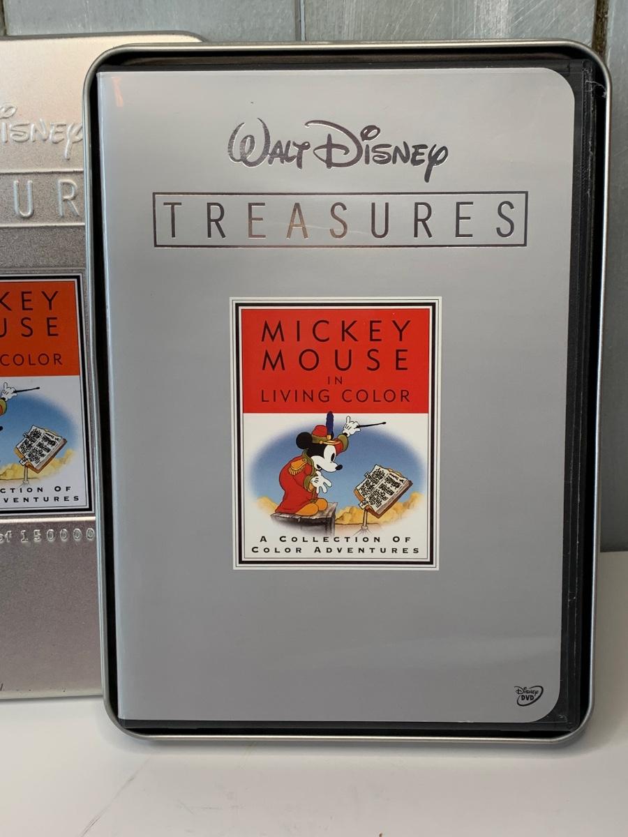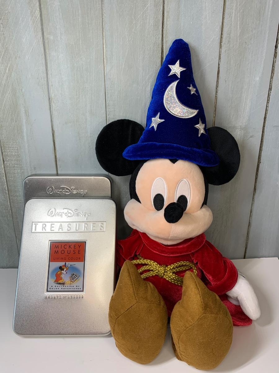Walt Disney Treasures Original Meta Tin Edition DVDs: Mickey Mouse in Living Color and In living color volume 2 along with 16' plush Mickey Mouse as the Sorcerer.