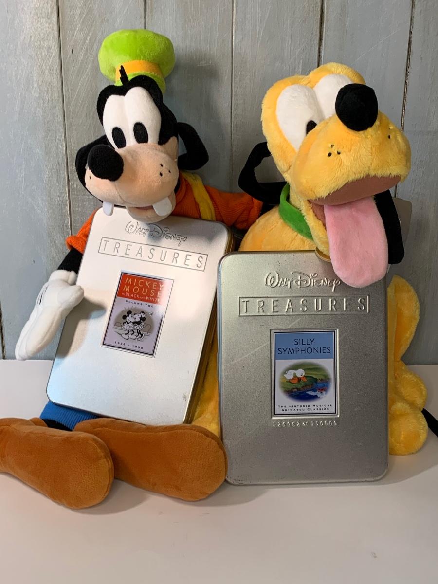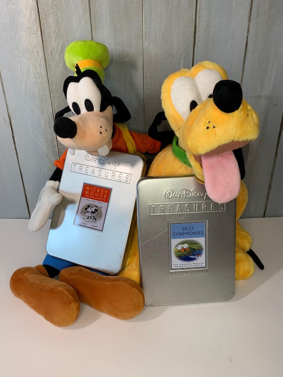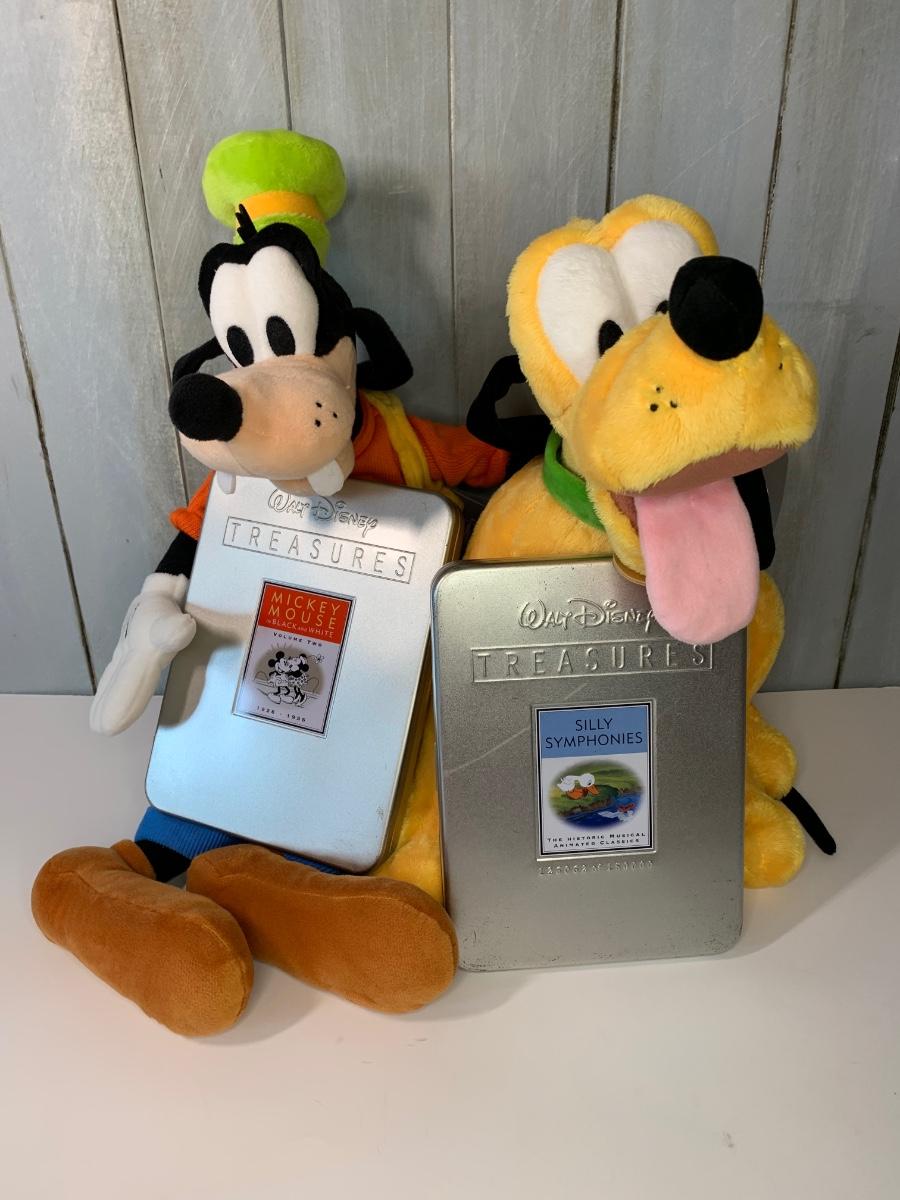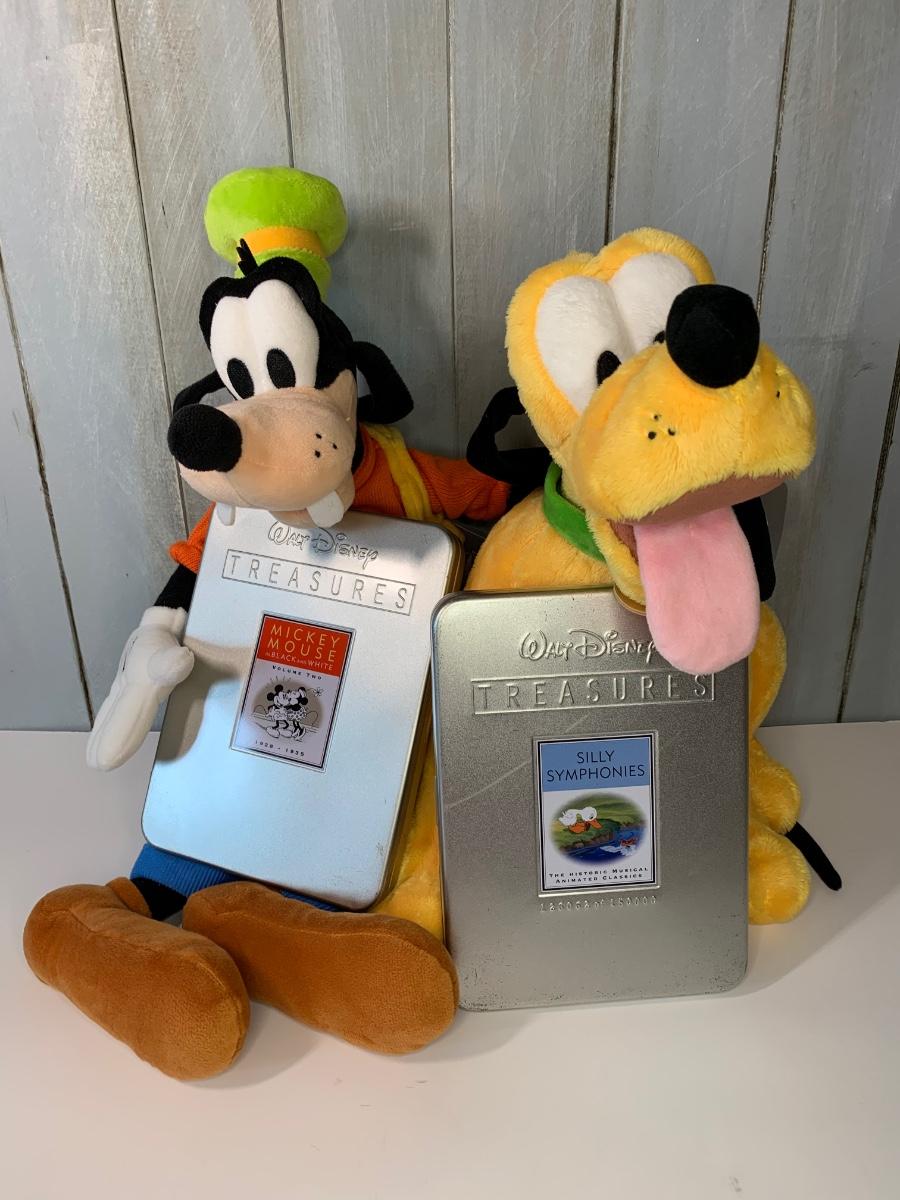 LOT 20R: Walt Disney Treasures Original Metal Tin Edition DVDs with Plush Pluto & Goofy