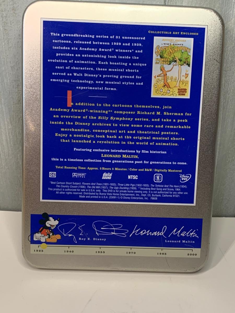 Walt Disney Treasures Original Metal Tin Edition DVDs; Silly Symphonies along with Mickey Mouse in black & White. Also includes Pluto w/original tags and Goofy.