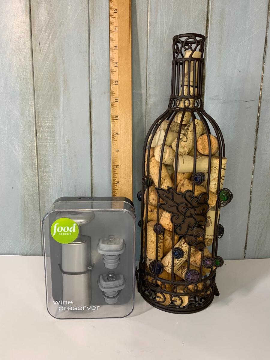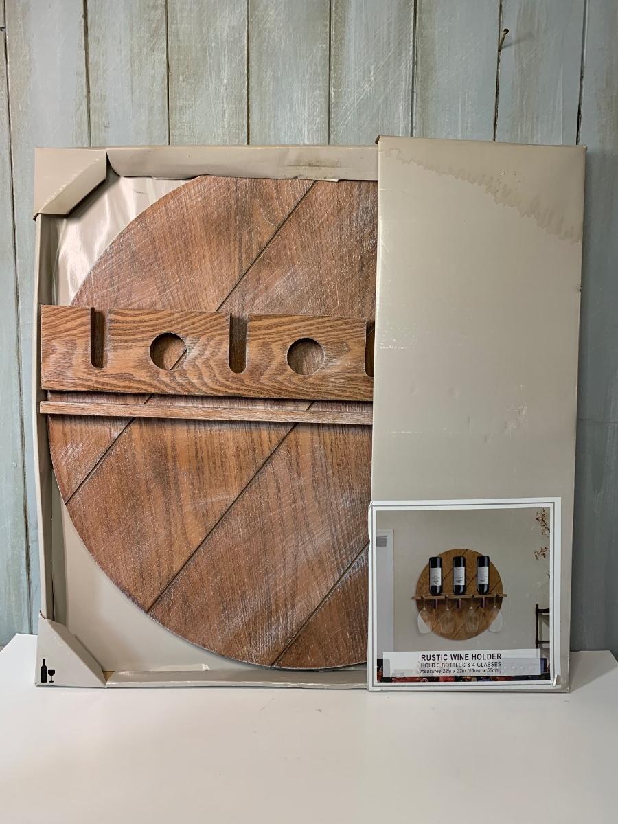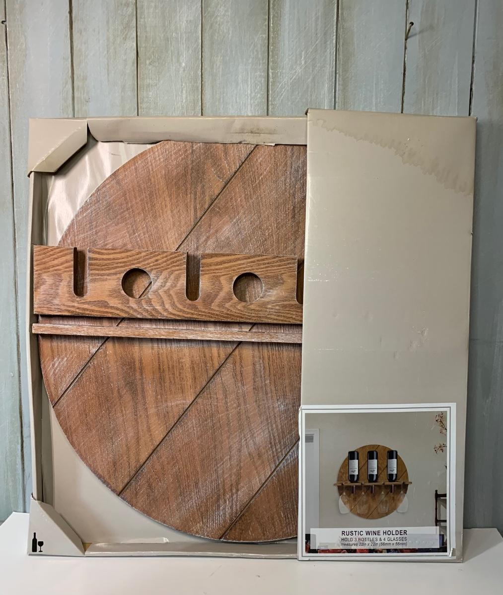 LOT 22R: Home Decor: Rustic Wine Holder, Crafted Wooden Bowl & Wine Accessories
