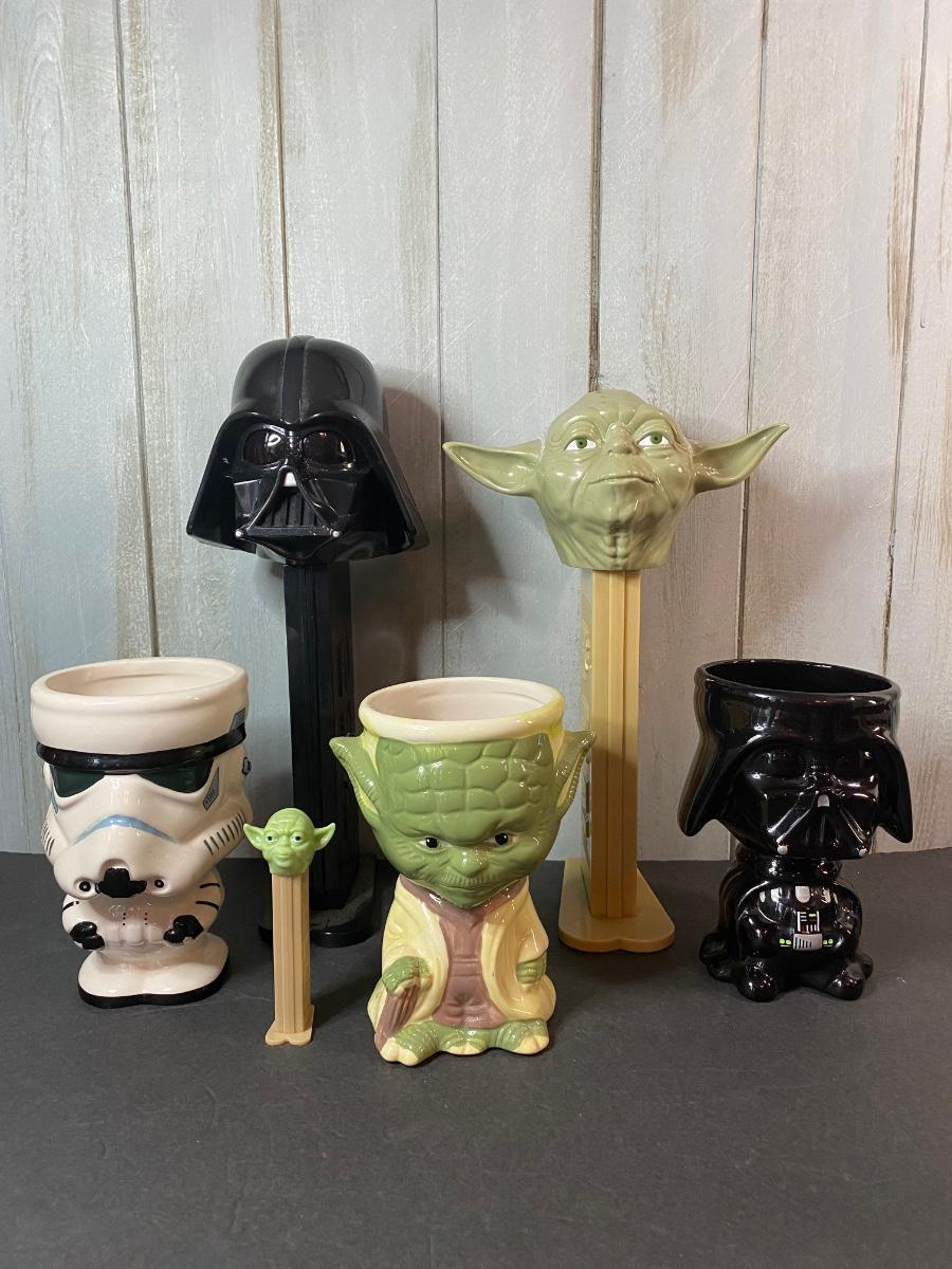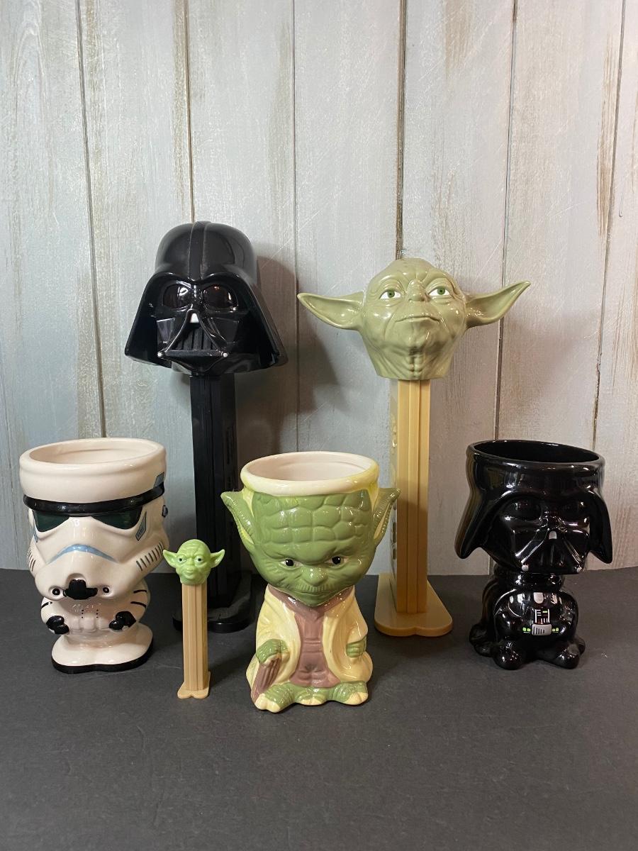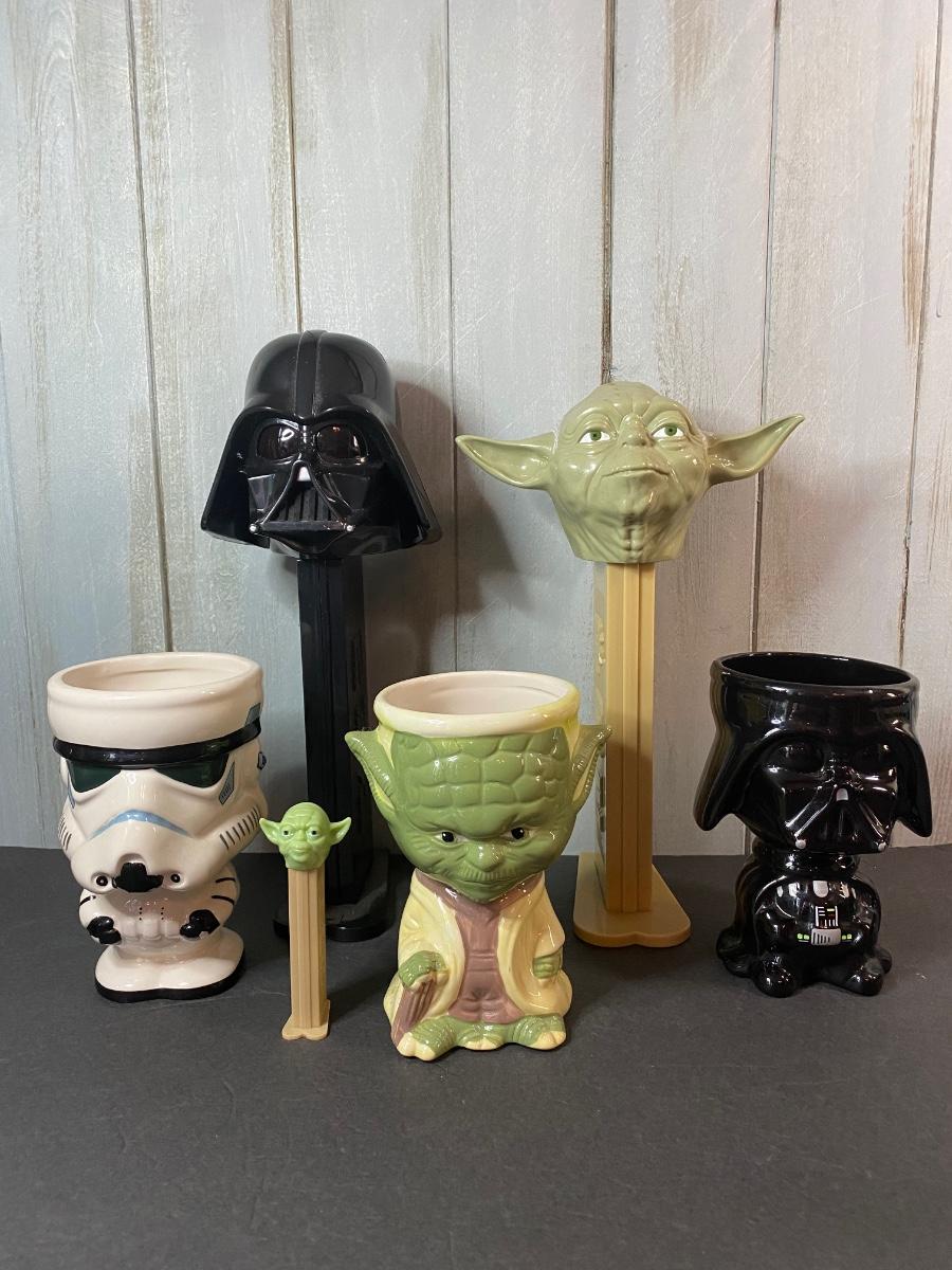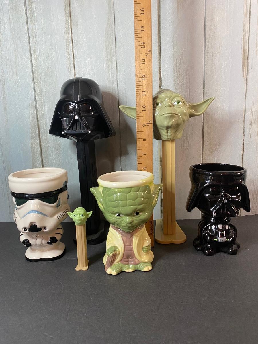 LOT C57: Star Wars Mugs and Large Pez  Dispensers