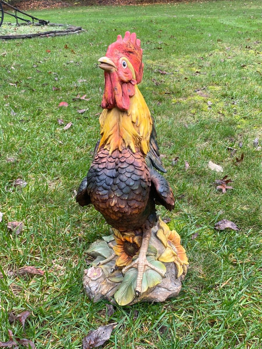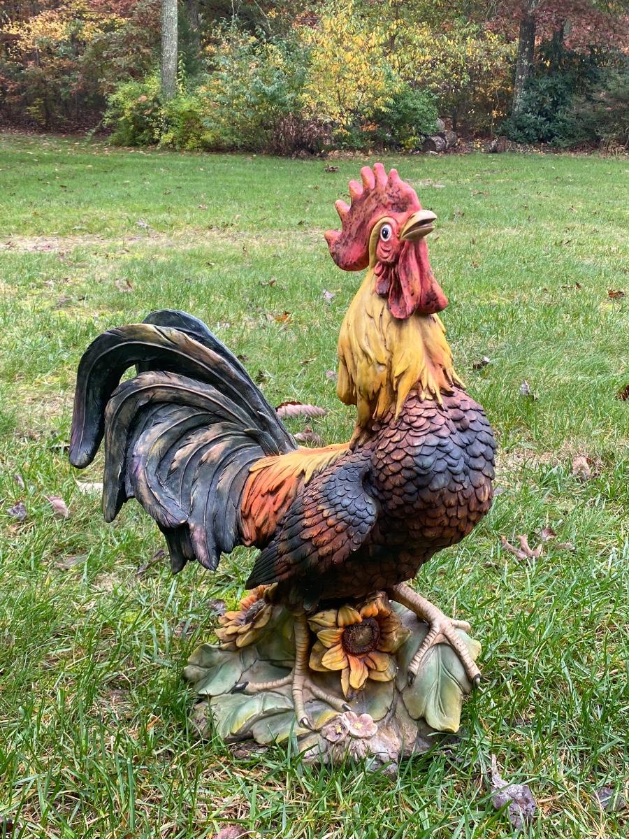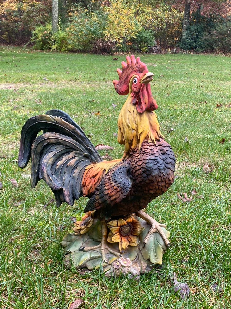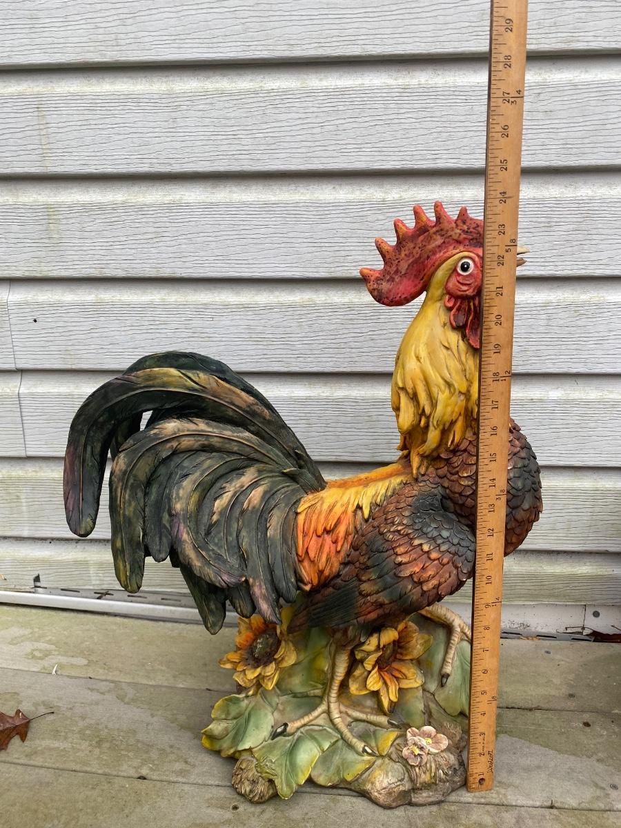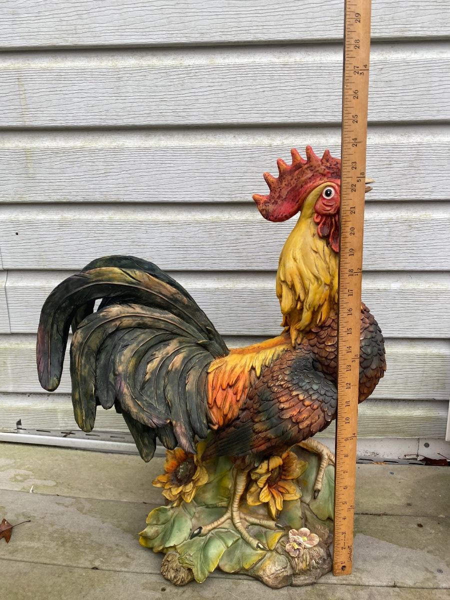 Decor Rooster has vibrant colors, made of heavy resin. Please see all pictures as they are the best representation of the items. The pictures show condition, measurements if taken, and what is included in the lot. Due to the large amount that we photograph and the time frame, we are not always able to take measurements. All items unless noted, are pre-owned and have been used. If you purchased furniture, you must bring help. We do not allow one person to carry large furniture out on their own. Bring help, tools and a truck for the safety of our client’s homes, and your personal safety. Any damages that result to the property including walls, and floors due to moving of the furniture will be charged to the buyer. Company policy. Thank you.