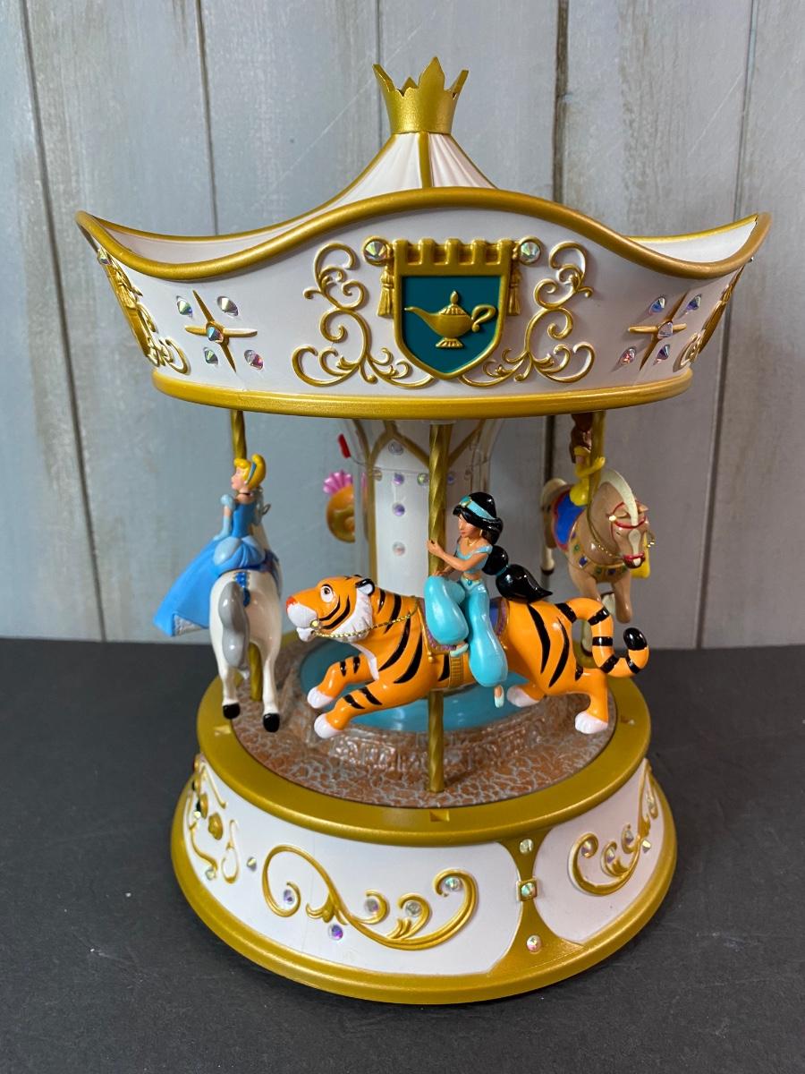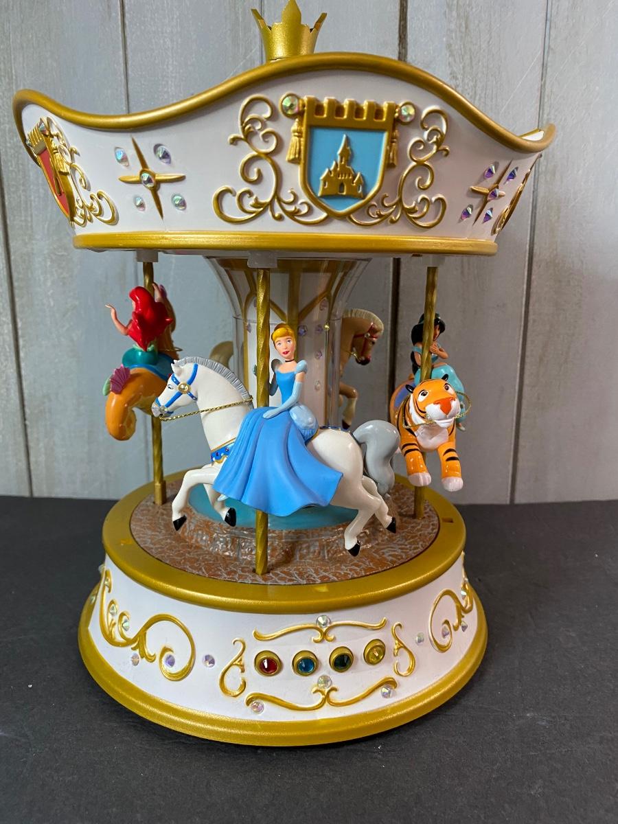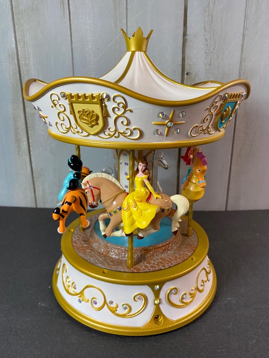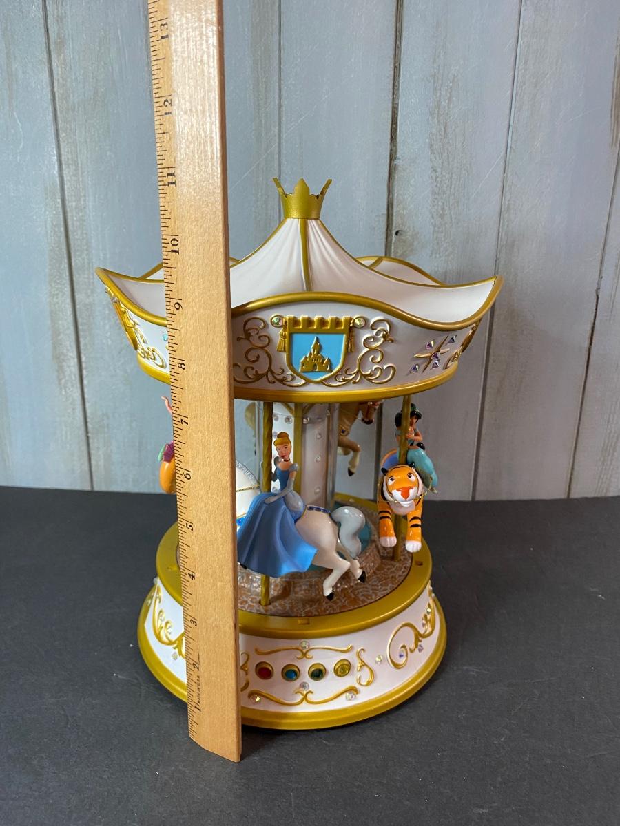 Disney’s favorite princesses in a Hallmark collectible musical and motion carousel. New in original box. Untested. Please see all pictures as they are the best representation of the items. The pictures show condition, measurements if taken, and what is included in the lot. Due to the large amount that we photograph and the time frame, we are not always able to take measurements. All items unless noted, are pre-owned and have been used. If you purchased furniture, you must bring help. We do not allow one person to carry large furniture out on their own. Bring help, tools and a truck for the safety of our client’s homes, and your personal safety. Any damages that result to the property including walls, and floors due to moving of the furniture will be charged to the buyer. Company policy. Thank you.