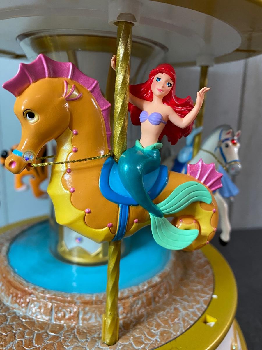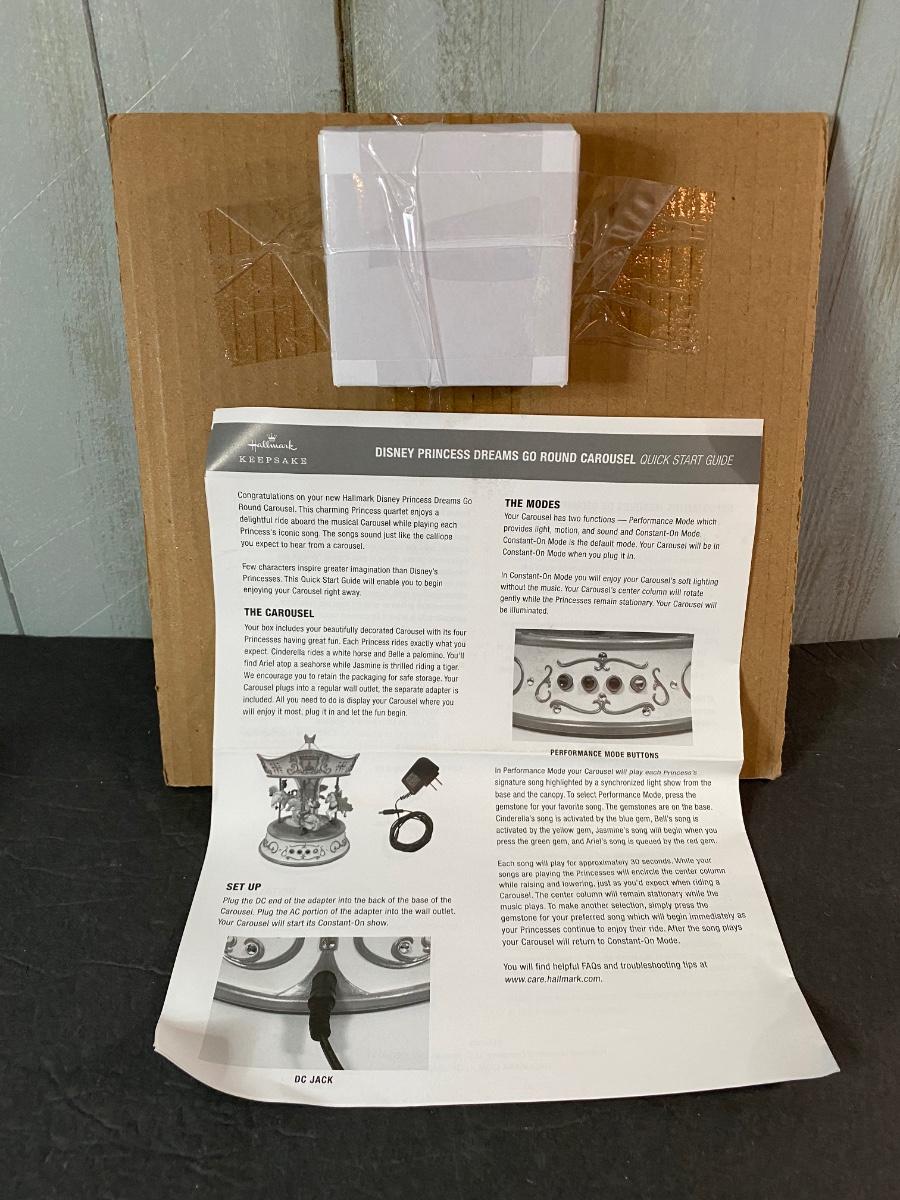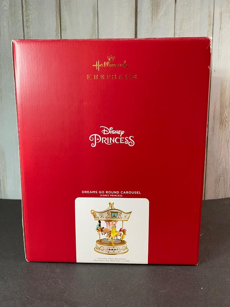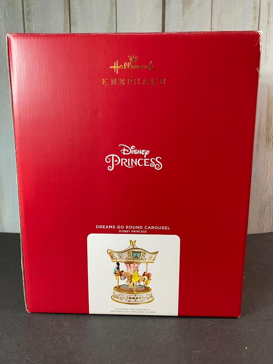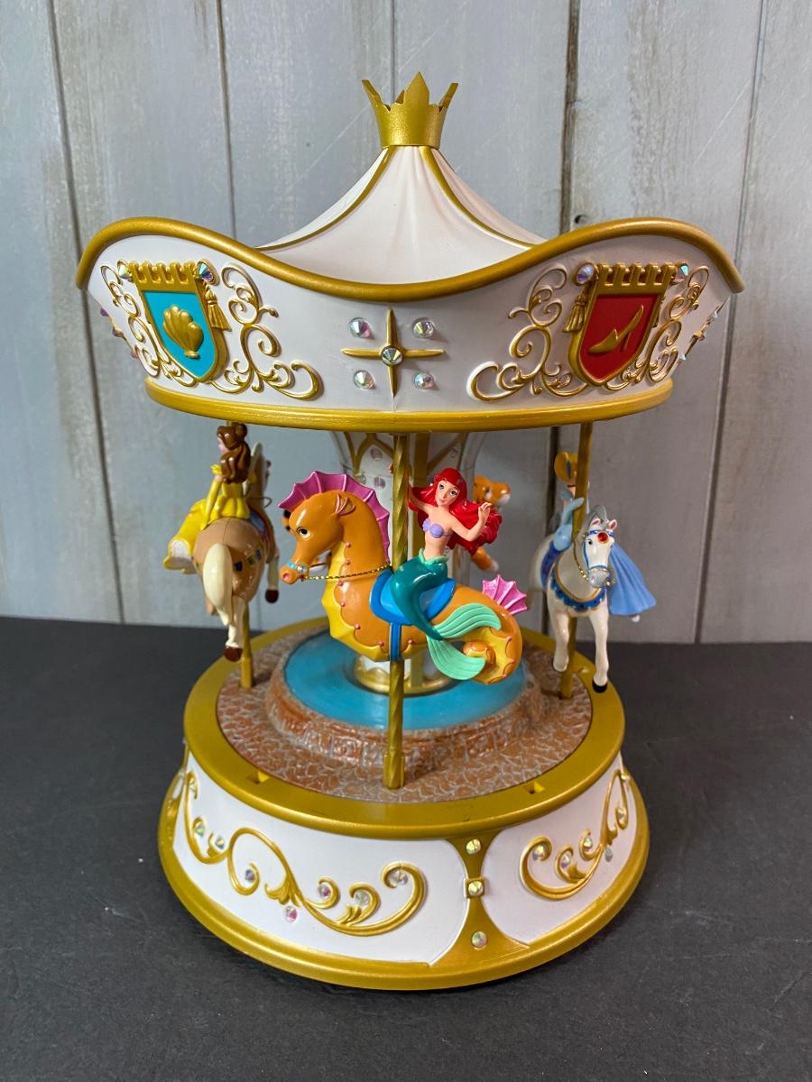 Disney’s favorite princesses in a Hallmark collectible musical and motion carousel. New in original box. Untested. Please see all pictures as they are the best representation of the items. The pictures show condition, measurements if taken, and what is included in the lot. Due to the large amount that we photograph and the time frame, we are not always able to take measurements. All items unless noted, are pre-owned and have been used. If you purchased furniture, you must bring help. We do not allow one person to carry large furniture out on their own. Bring help, tools and a truck for the safety of our client’s homes, and your personal safety. Any damages that result to the property including walls, and floors due to moving of the furniture will be charged to the buyer. Company policy. Thank you.