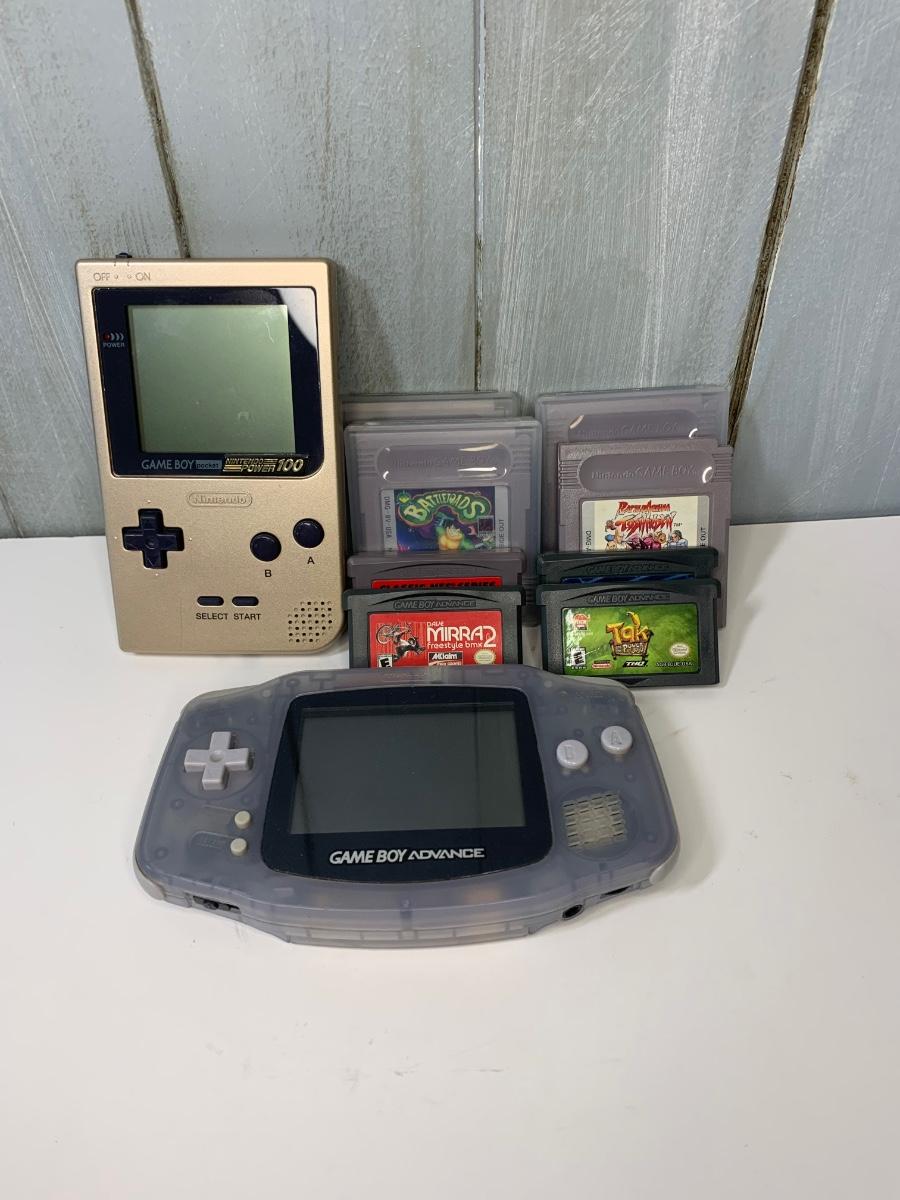LOT 84R: Vintage Nintendo Game Boy Pocket Gold Console, Game Boy Advance& Games