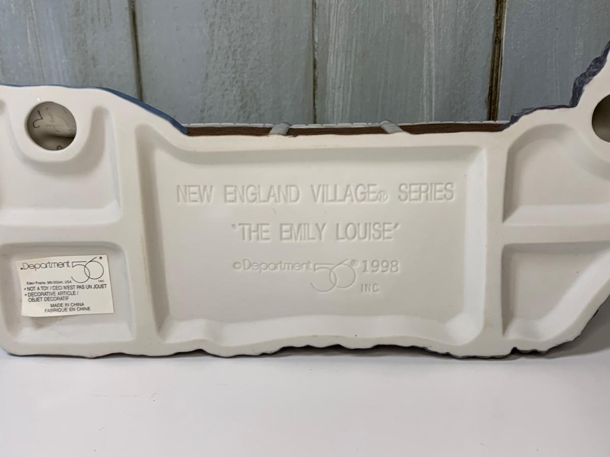 LOT 100R: Dept 56 New England Village Series: "The Emily Louise" with original Styrofoam and sleeve