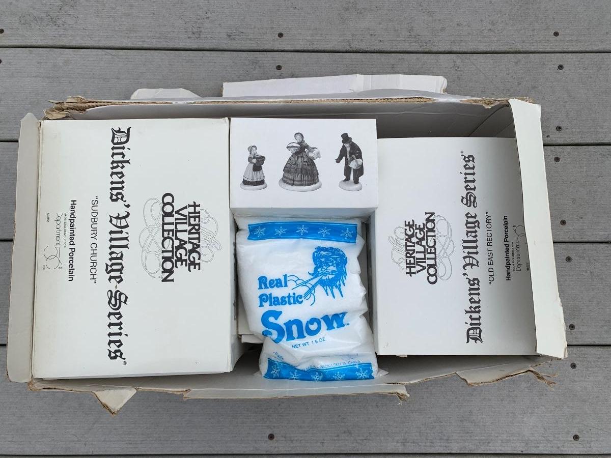 Dept 56 box set, missing from the set: light cord for the Rectory and the "road". Box has condition issues