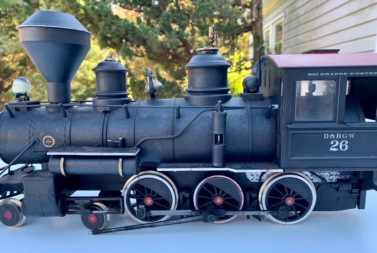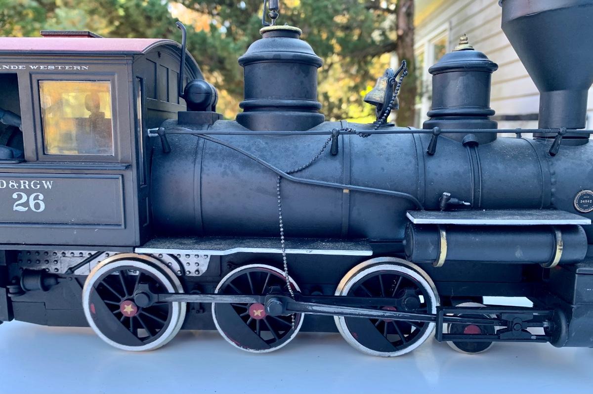 Rio Grande Western: D & RGW 26 Line. Connection to one wheel is broken as pictured