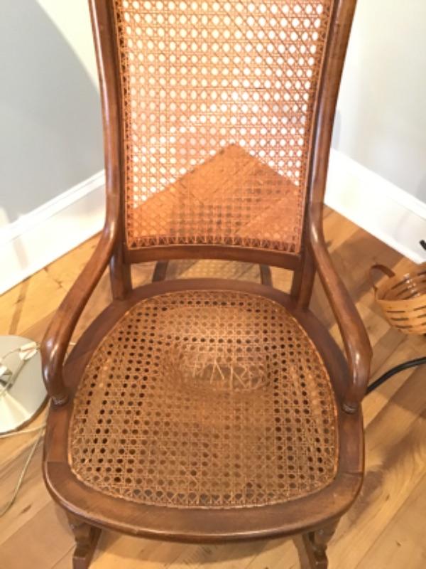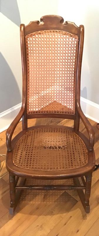 LOT # 793 Cane Seat Rocker And Handmade Quilt Wall Decor