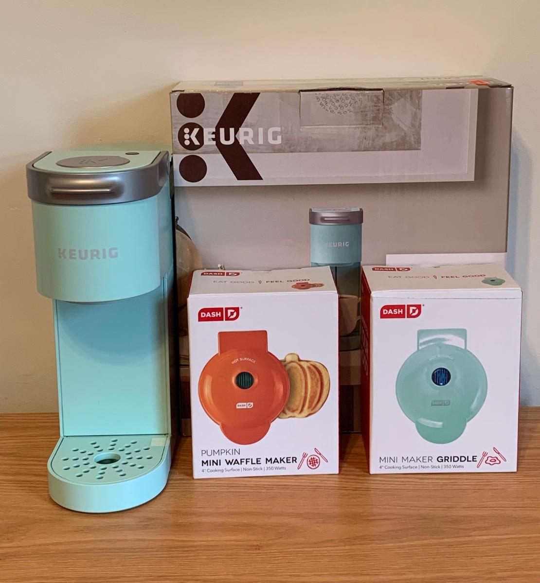 LOT R3: Keurig Mini One Cup Coffee Maker (Like New), Mini Maker Griddle & Mini  Maker Pumpkin Waffle Maker ( New in Boxes)