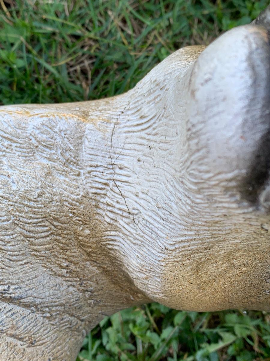 two of two in this auction, this has a small hair line crack under its chin as pictured, still adorable!! Made of a heavy resin