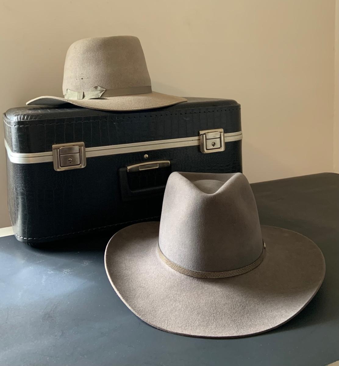 LOT:31: Cowboy Hats & a Caring Case Featuring a Gray Stetson