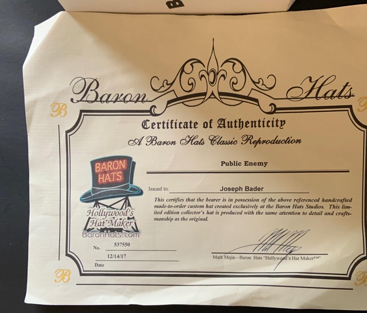LOT:35  Fedoras Including A Baron Hats “Public  Enemy” Hat Reproduction with COA