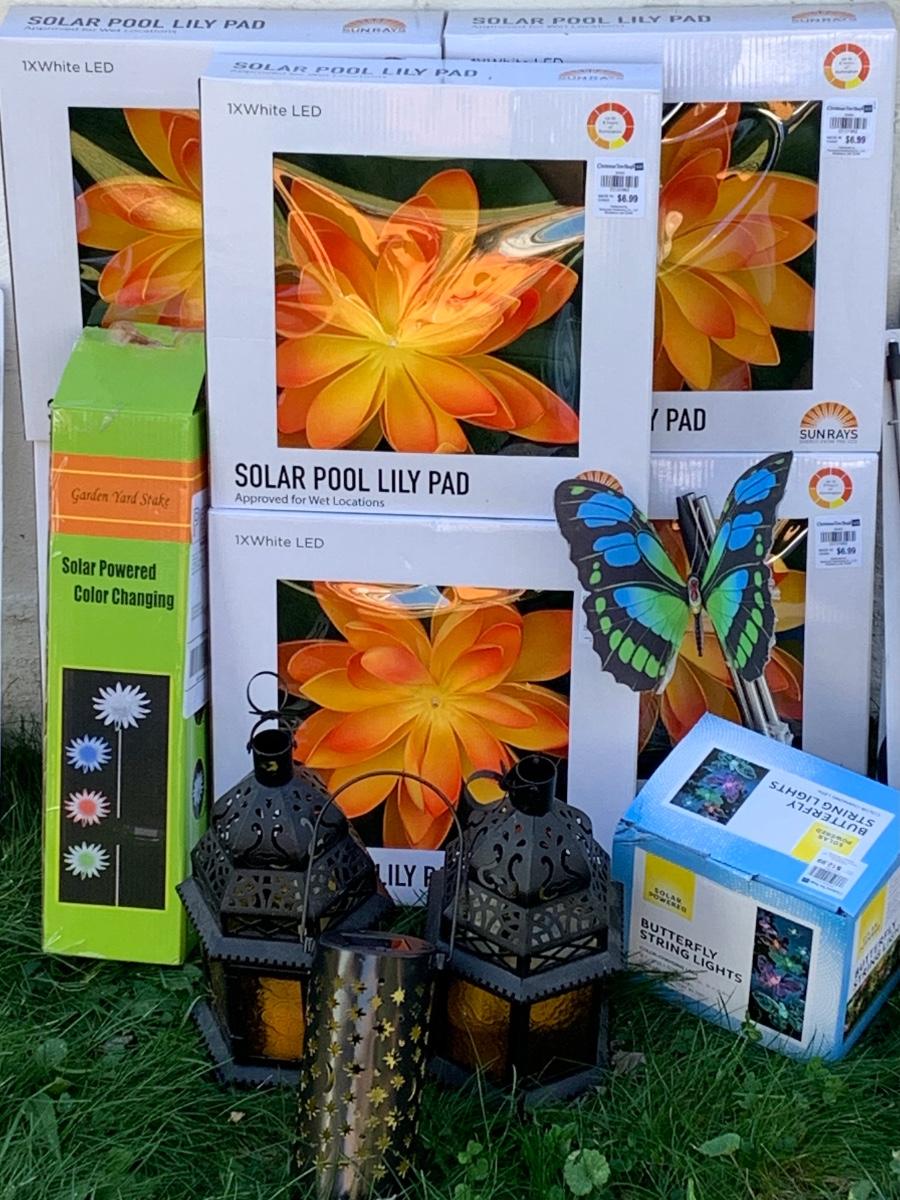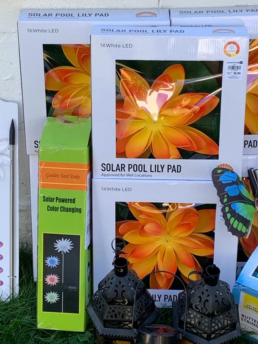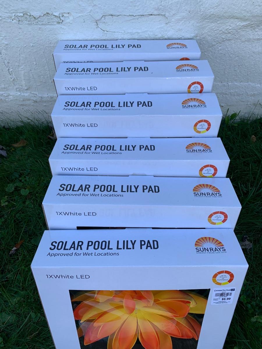 Solar pool lily pads. New in box. Light up butterflies. Light up stars and flowers. Please see all pictures as they are the best representation of the items. The pictures show condition, measurements if taken, and what is included in the lot. Due to the large amount that we photograph and the time frame, we are not always able to take measurements. All items unless noted, are pre-owned and have been used. If you purchased furniture, you must bring help. We do not allow one person to carry large furniture out on their own. Bring help, tools and a truck for the safety of our client’s homes, and your personal safety. Any damages that result to the property including walls, and floors due to moving of the furniture will be charged to the buyer. Company policy. Thank you.