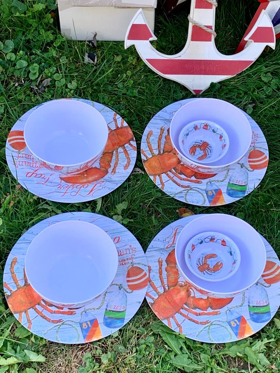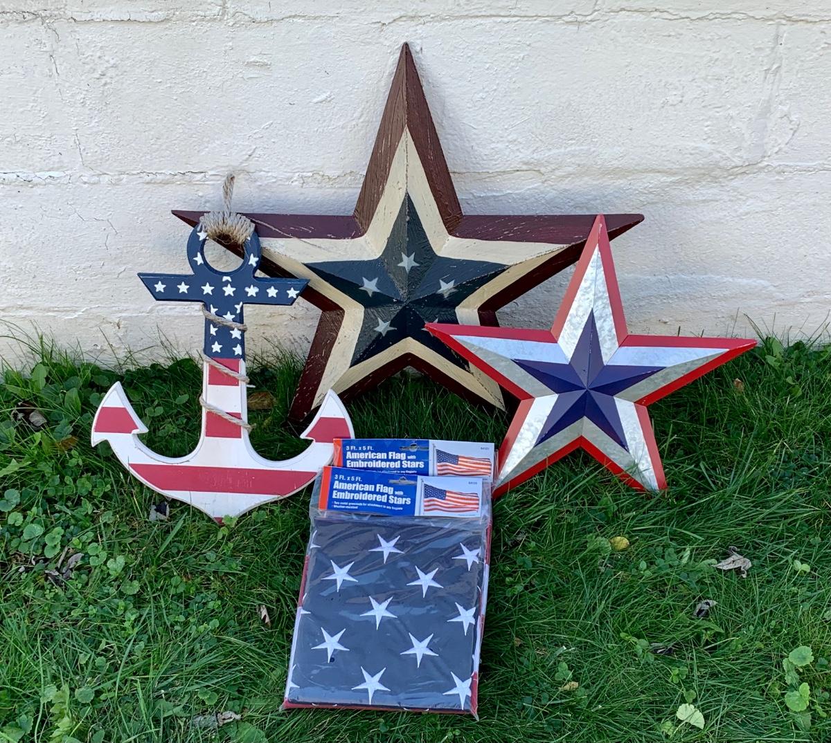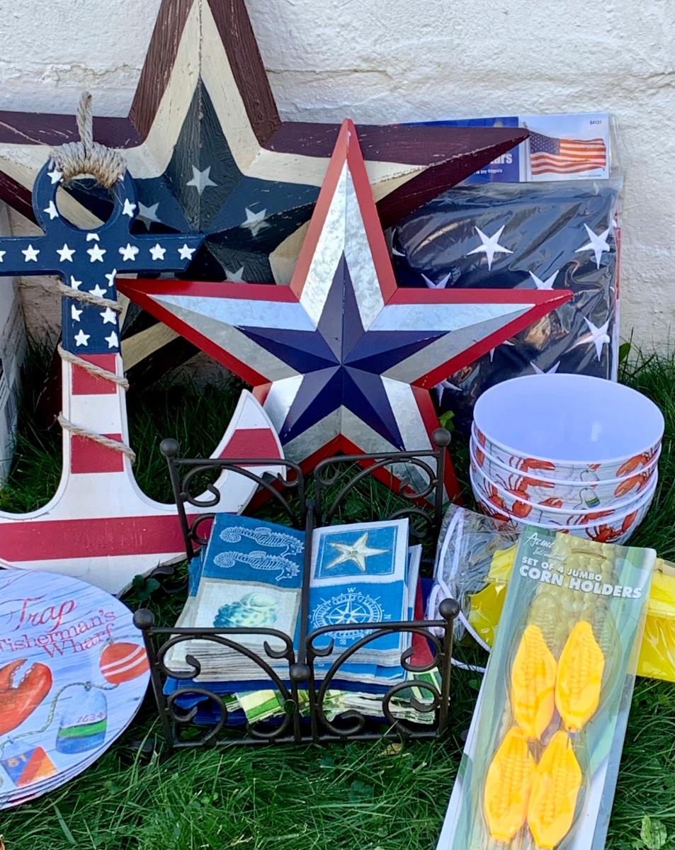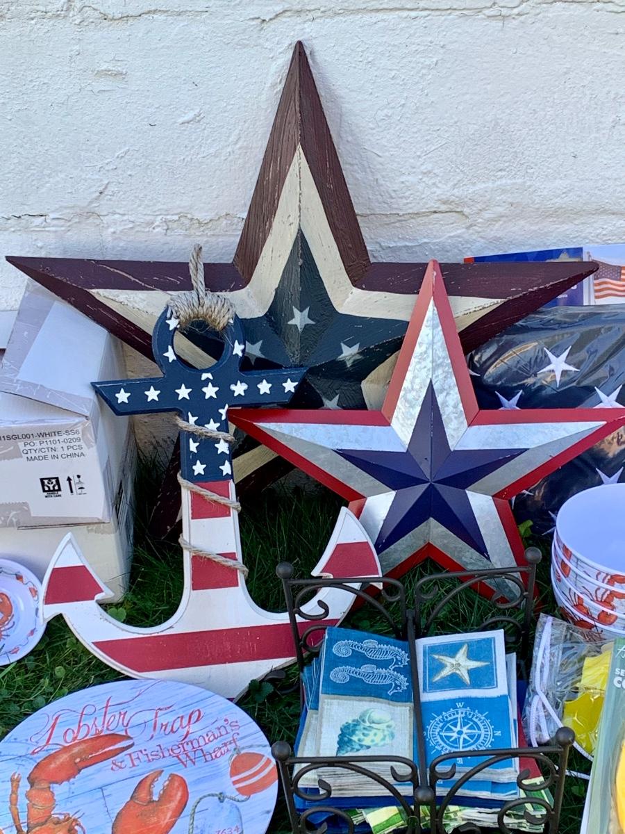 LOT 61R: Patriotic Decor, Flags, Solar Walkway Lights, Lobster Plates & More