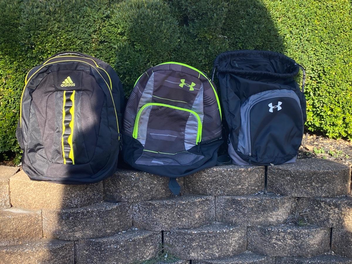 Adidas backpack, Under Armor backpack and Under Armor drawstring bag all in good used condition. Please see all pictures as they are the best representation of the items. The pictures show condition, measurements if taken, and what is included in the lot. Due to the large amount that we photograph and the time frame, we are not always able to take measurements. All items unless noted, are pre-owned and have been used. If you purchased furniture, you must bring help. We do not allow one person to carry large furniture out on their own. Bring help, tools and a truck for the safety of our client’s homes, and your personal safety. Any damages that result to the property including walls, and floors due to moving of the furniture will be charged to the buyer. Company policy. Thank you.