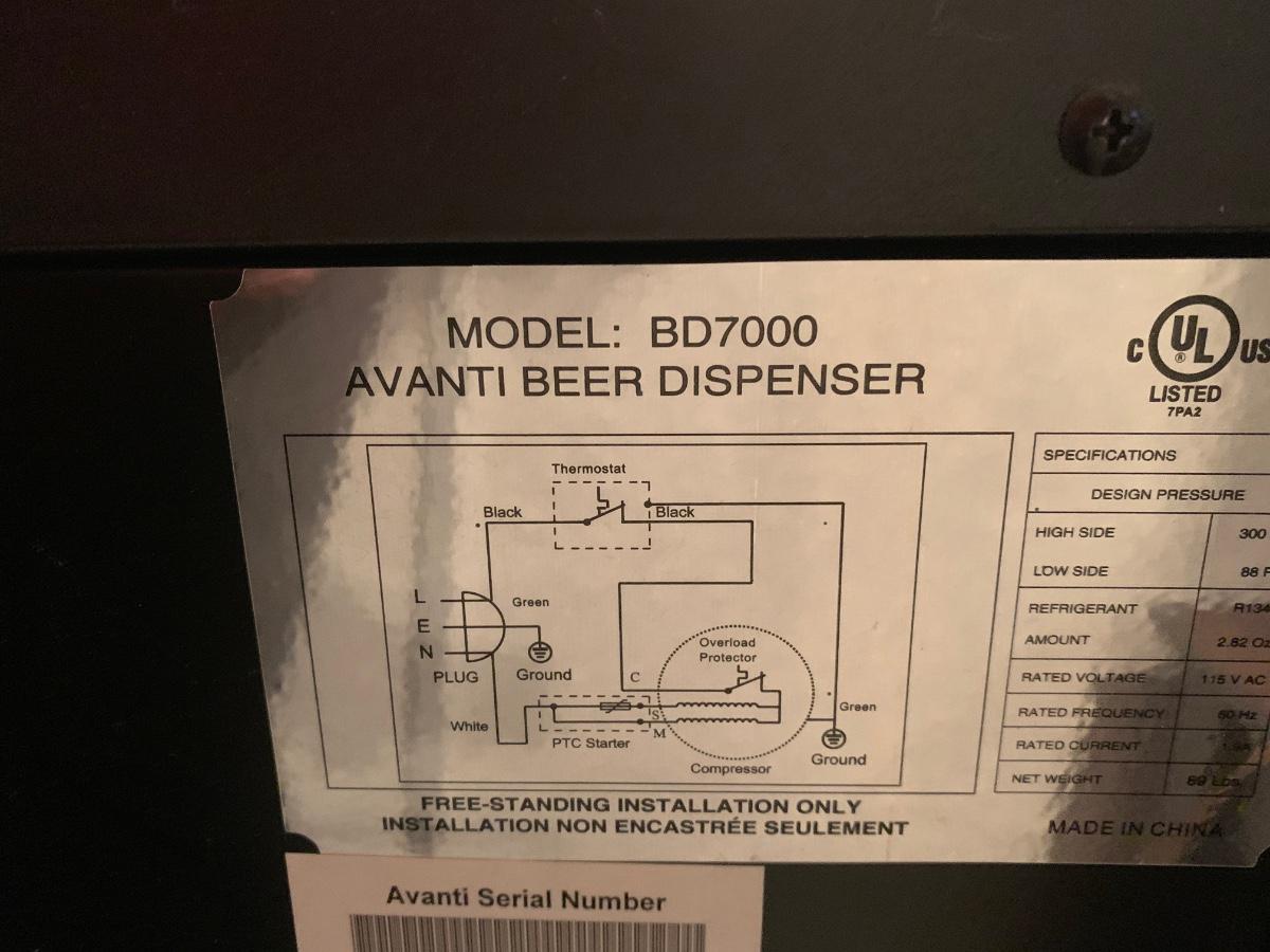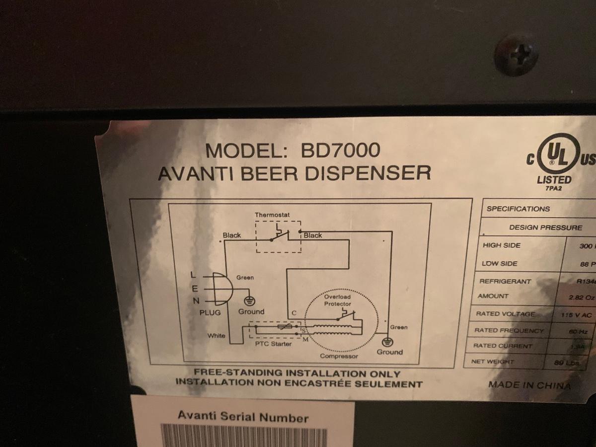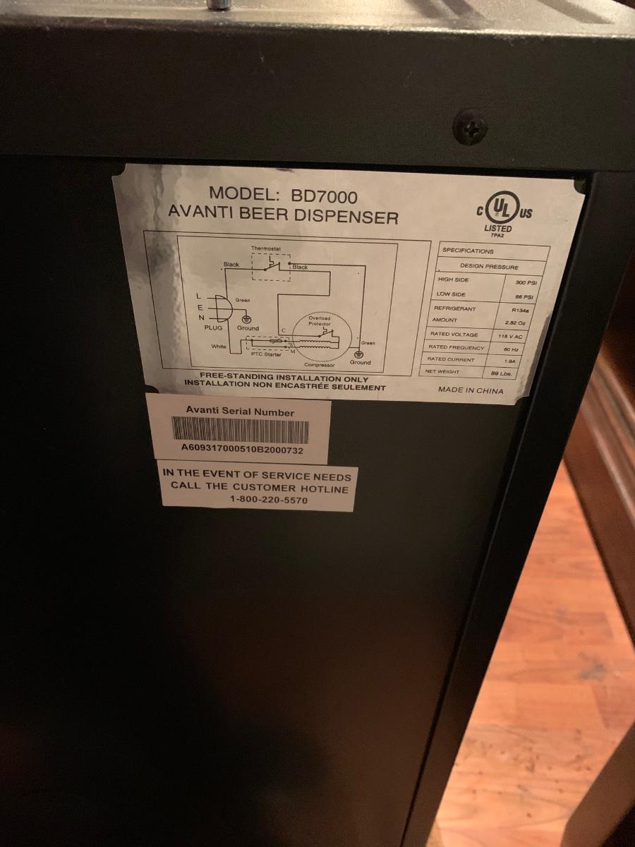 LOT 93: Avanti Beer Dispenser Model:BD7000 w/ Budweiser & Yuengling Taps & More