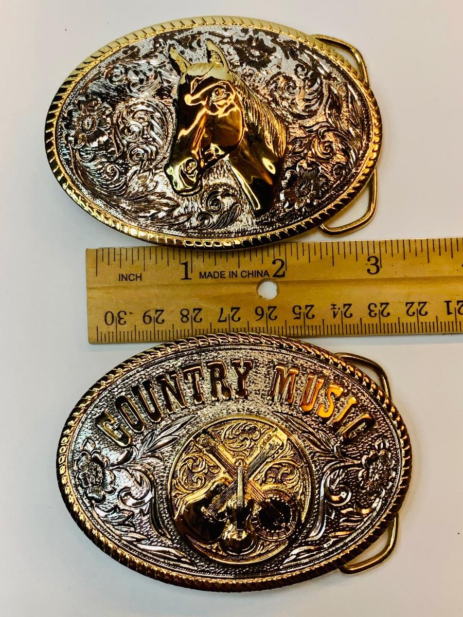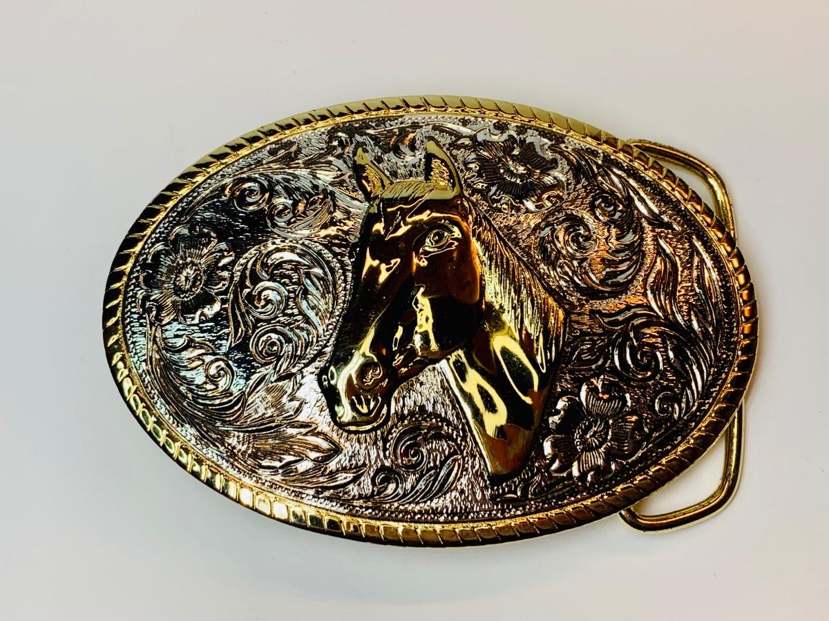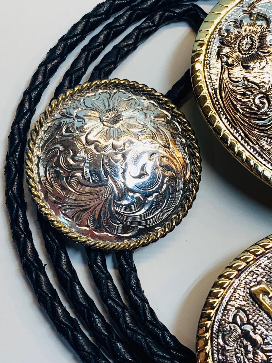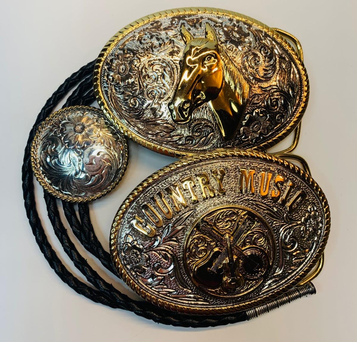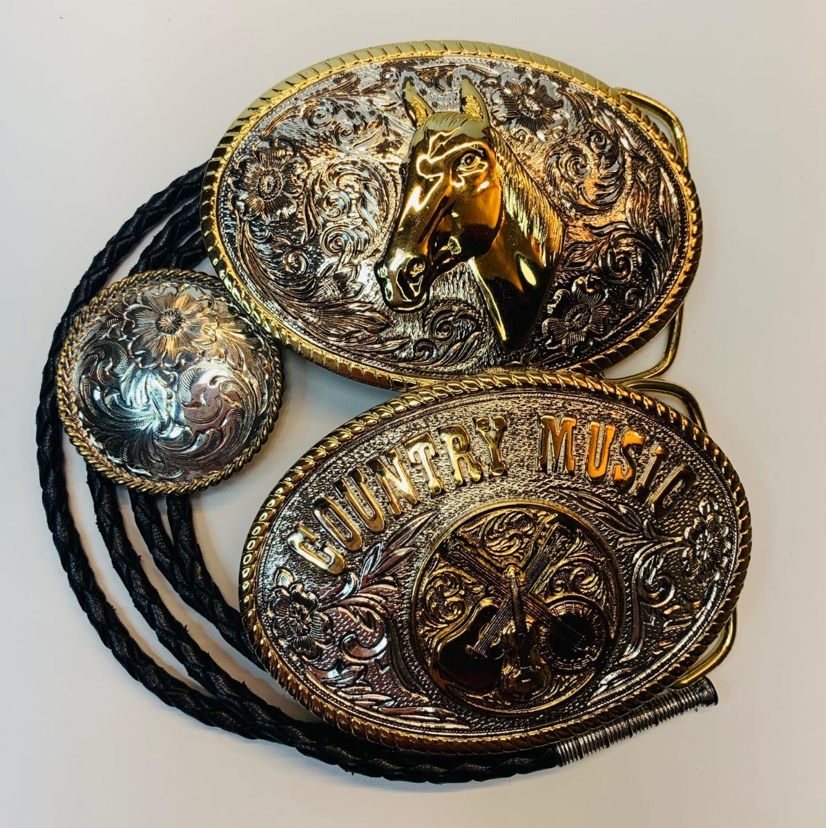 LOT 104: Silver & Gold Plated Belt Buckles & Bolo Tie