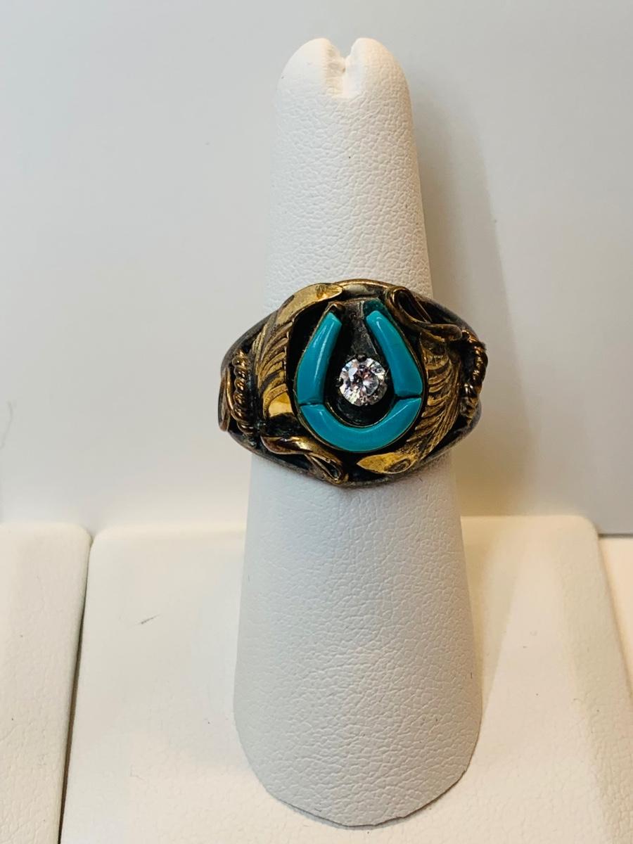LOT 111: Gold Plated Ring  & S, Ray Turquoise Horseshoe Sterling Silver