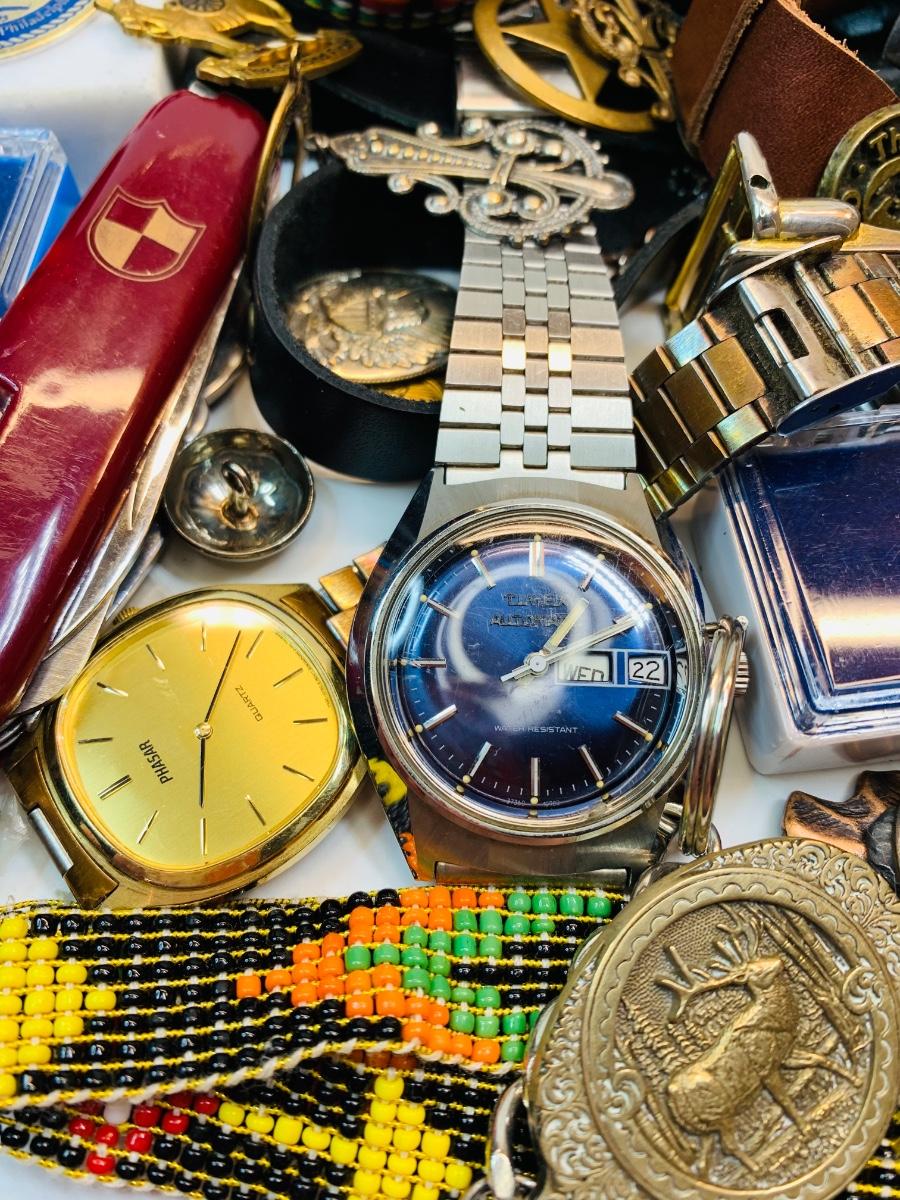 LOT 119: "What Not Lot" Craft, Service Pins, Pocket Knife, Watches & More