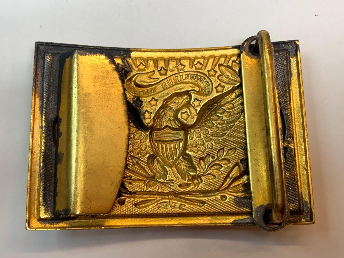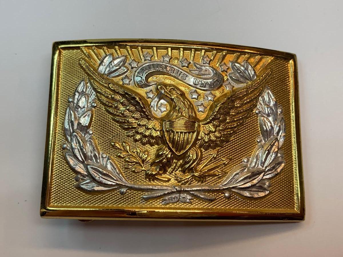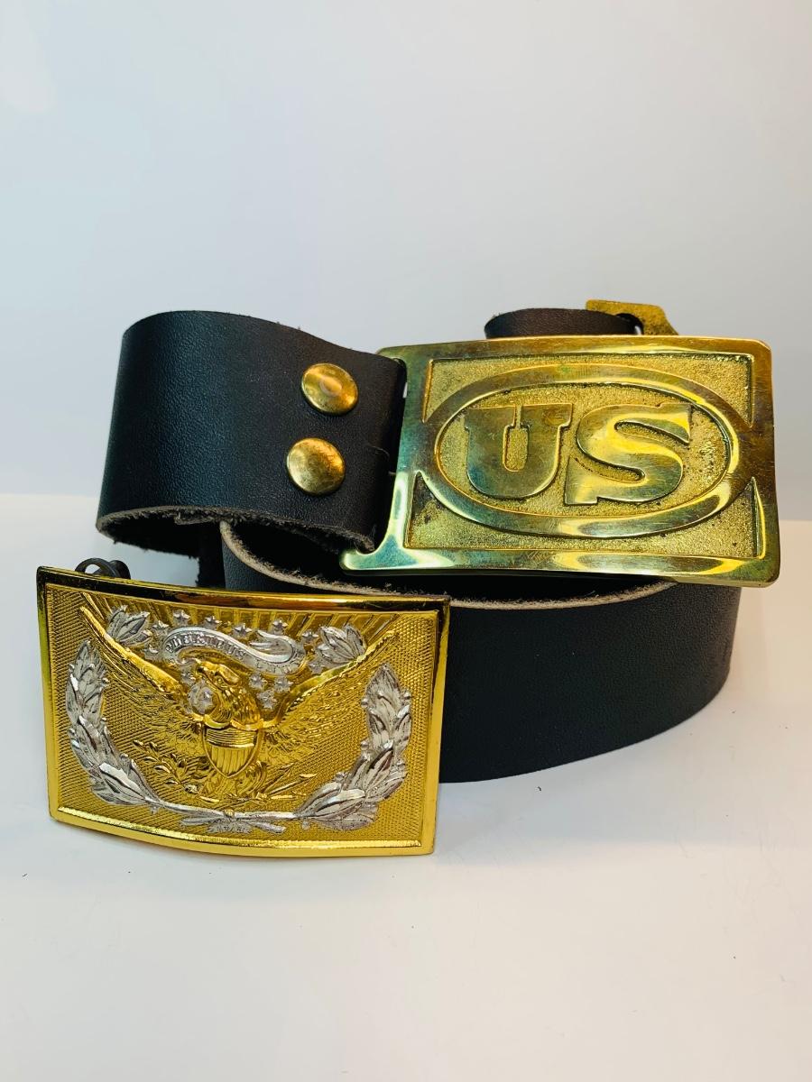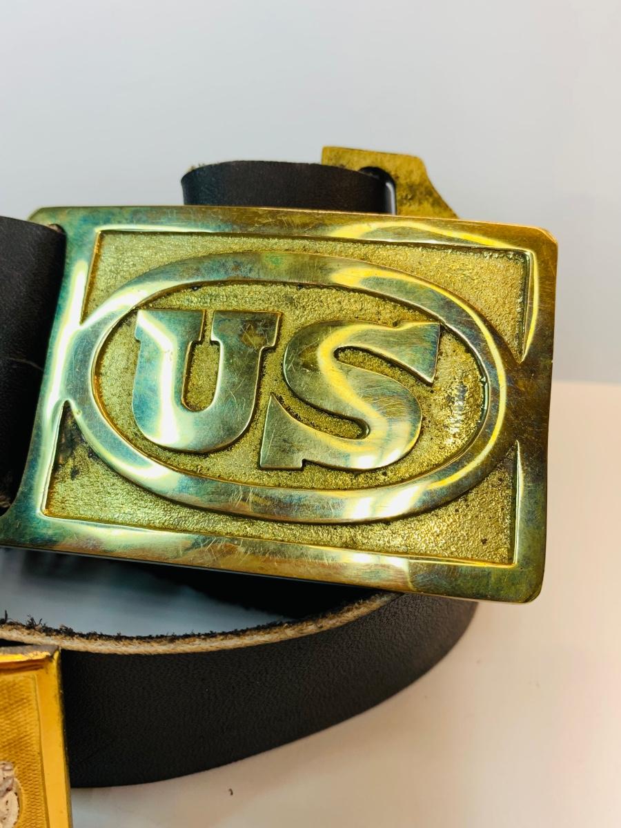 LOT 120: Belt w/Brass US Buckle & Eagle Belt Buckle