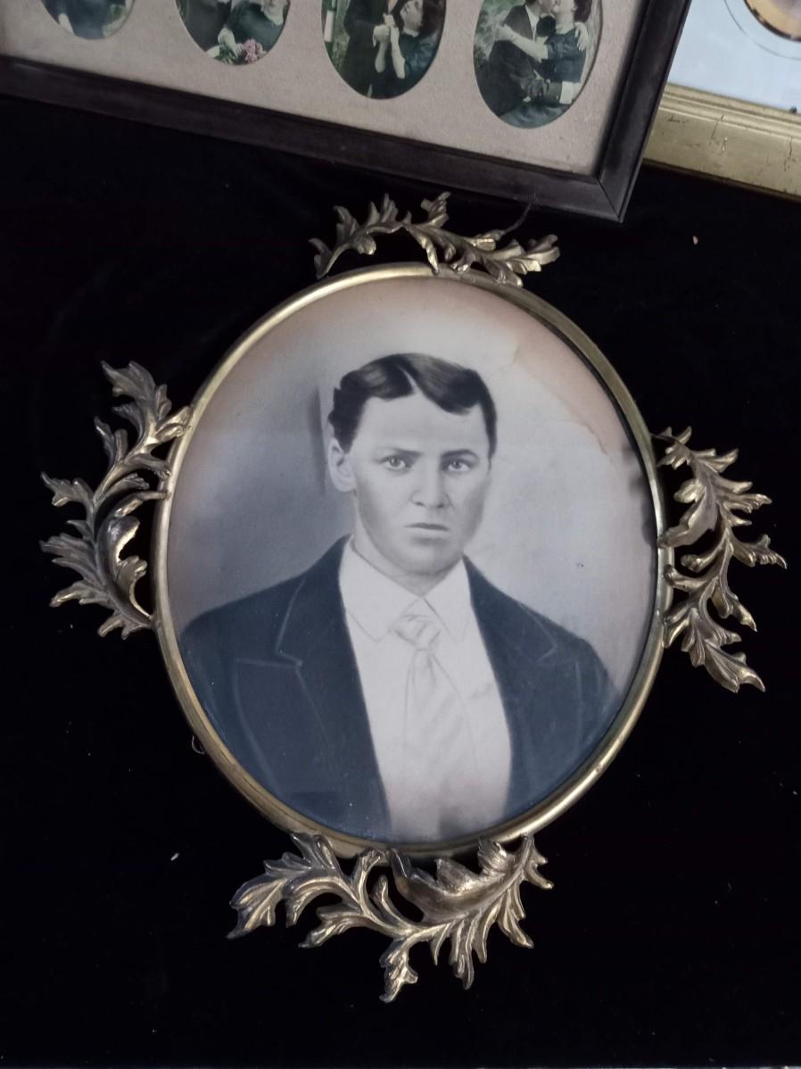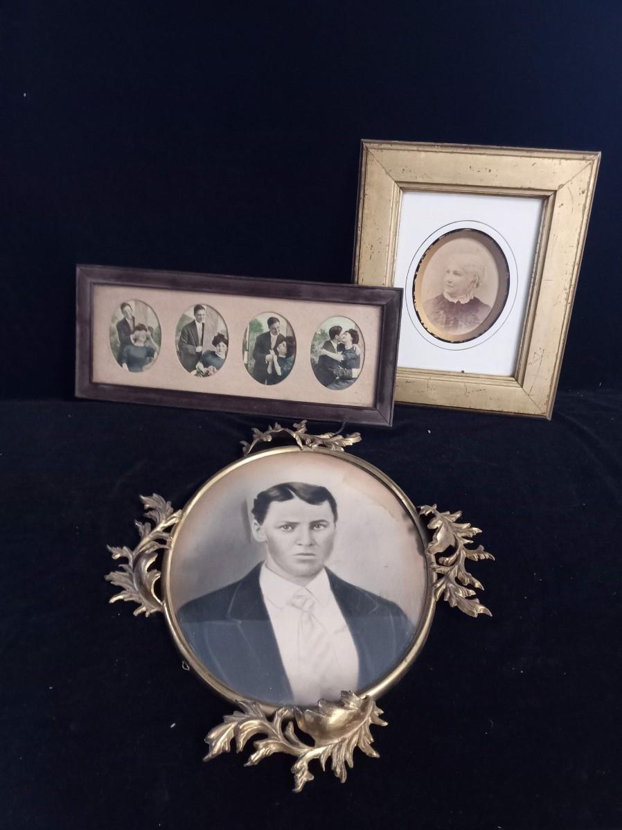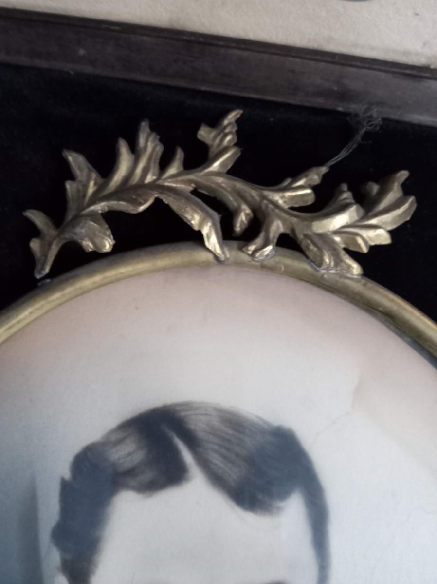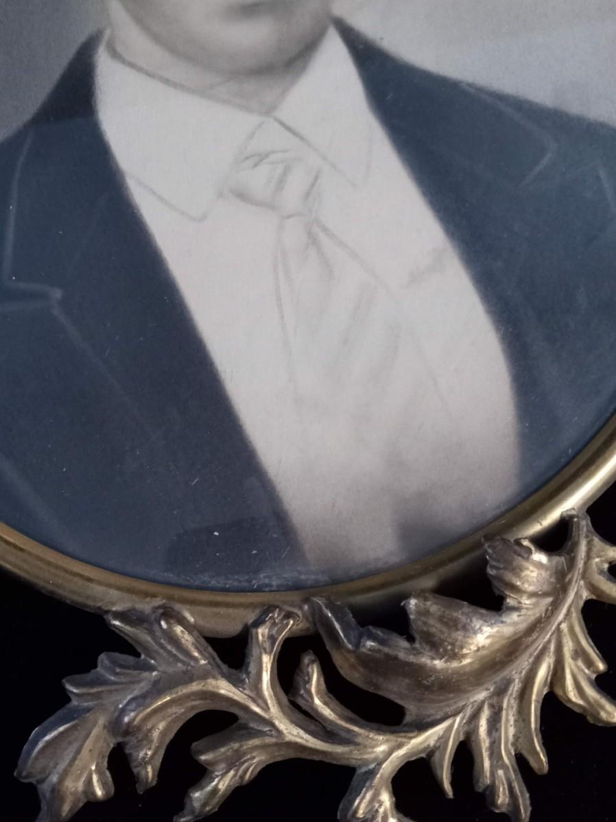 ROUND ORNATE HEAVY BRASS FRAME WITH A MAN'S PHOTO 16" X 14"