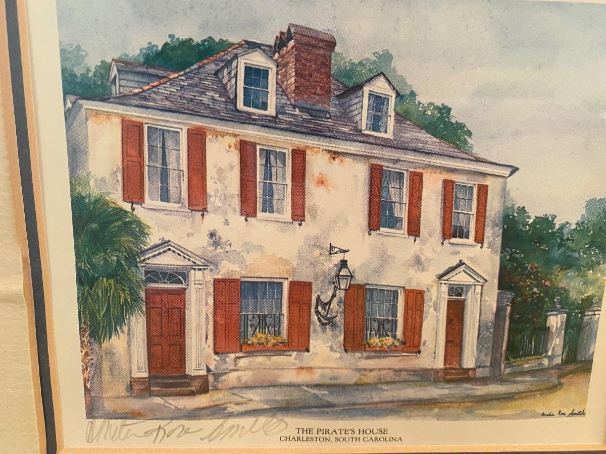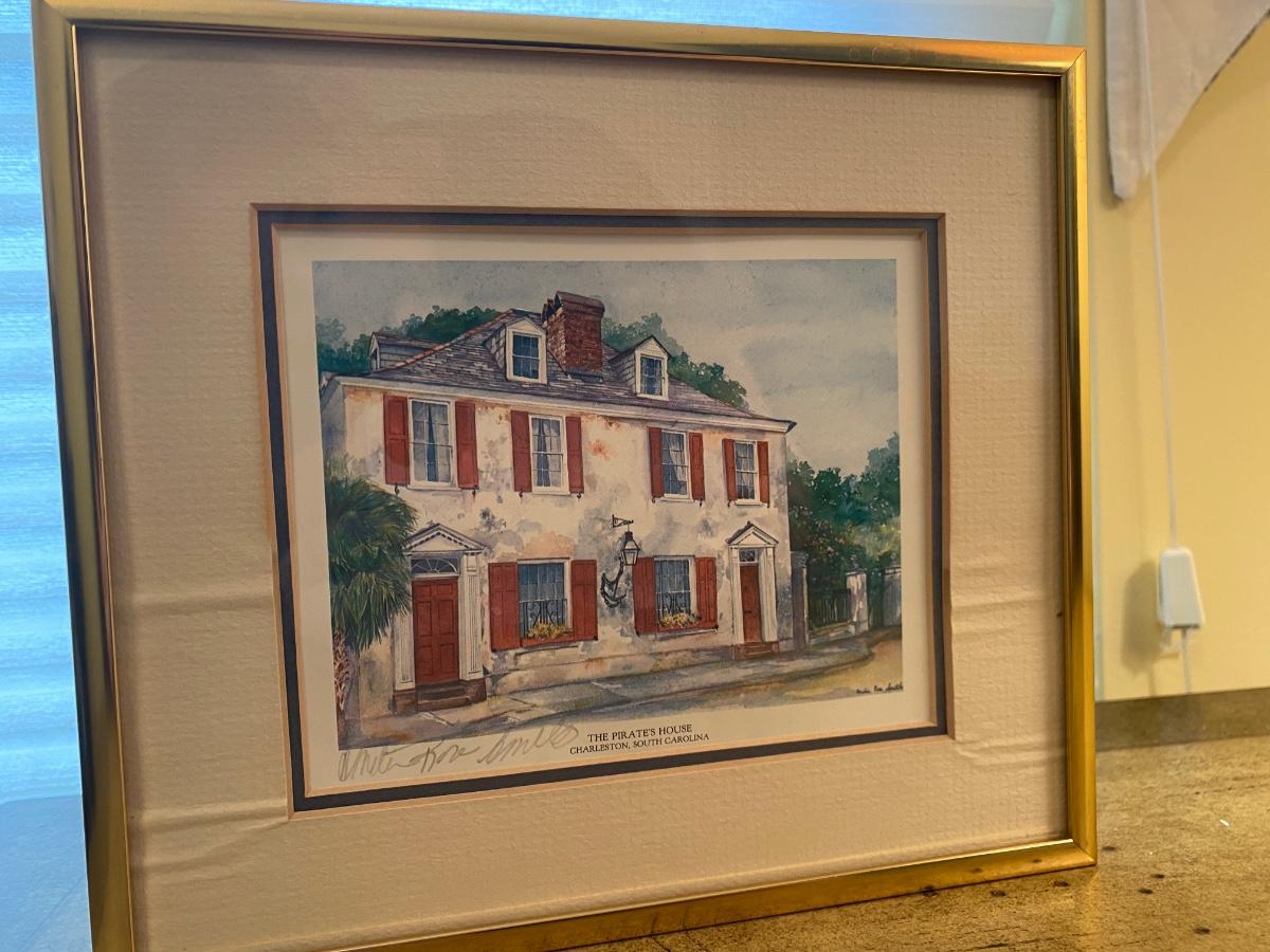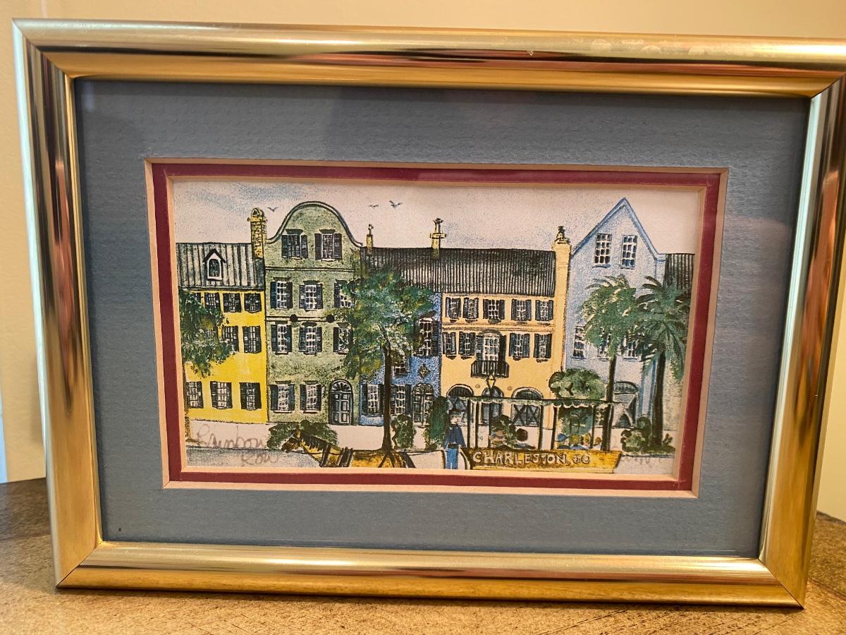 LOT C3: Signed Artwork of Charleston, SC, Shabby Chic Accent Side Chest of Drawers &  Floor Lamp