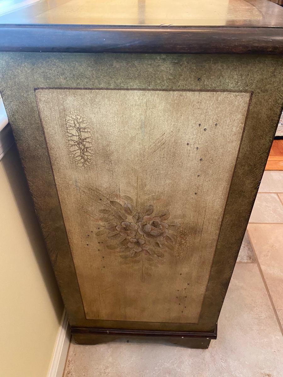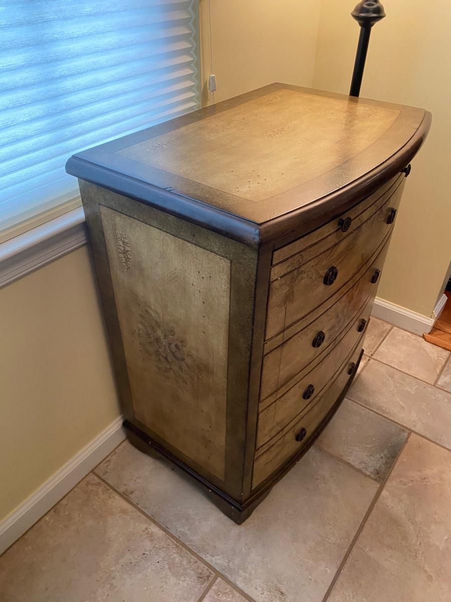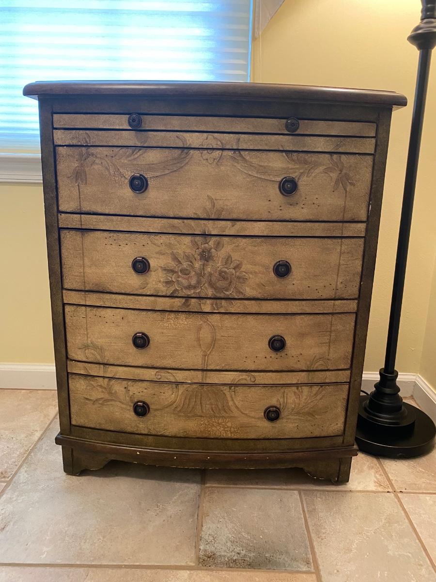 LOT C3: Signed Artwork of Charleston, SC, Shabby Chic Accent Side Chest of Drawers &  Floor Lamp