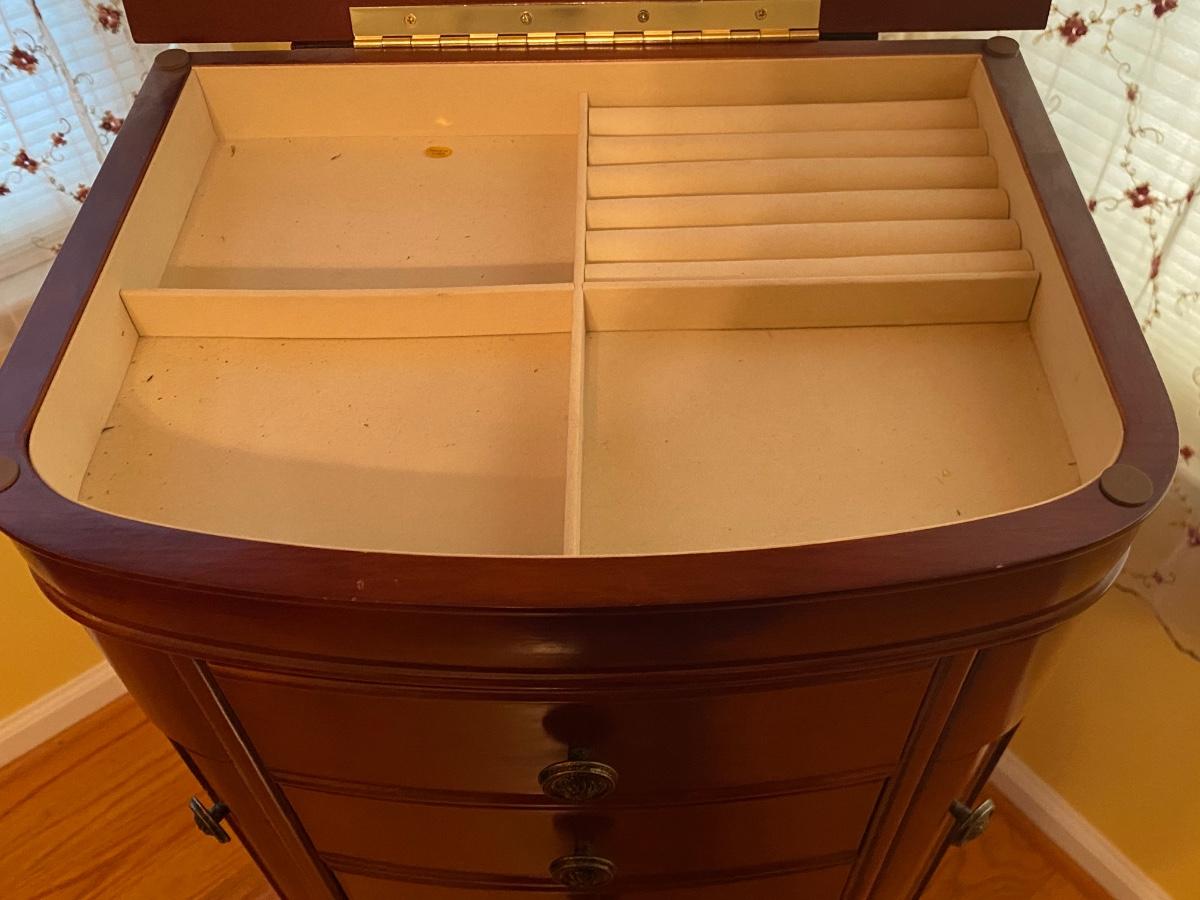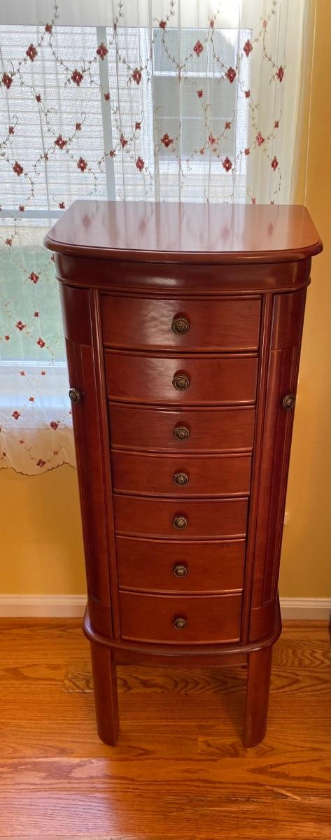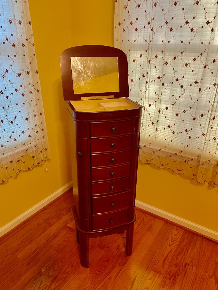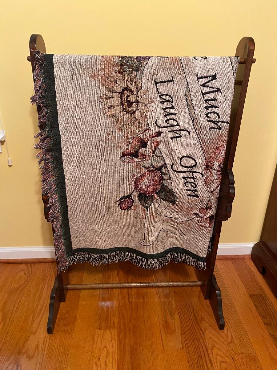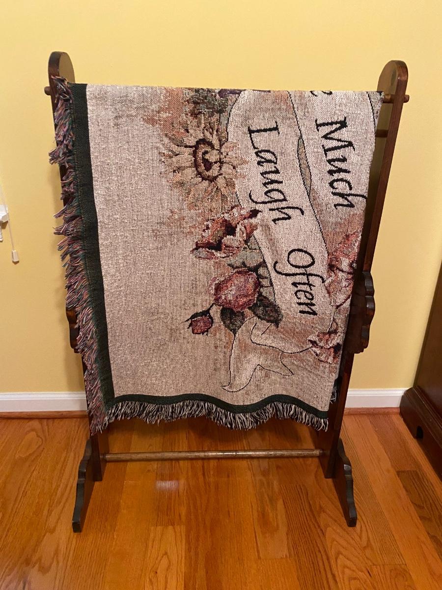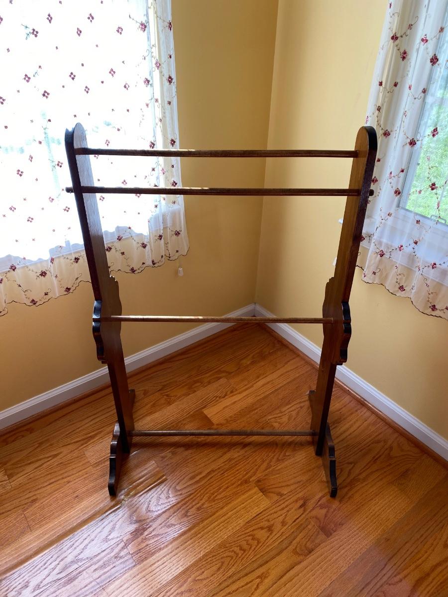 Jewelry chest, quilt rack, blanket, framed needlework art. Please see all pictures as they are the best representation of the items. The pictures show condition, measurements if taken, and what is included in the lot. Due to the large amount that we photograph and the time frame, we are not always able to take measurements. All items unless noted, are pre-owned and have been used. If you purchased furniture, you must bring help. We do not allow one person to carry large furniture out on their own. Bring help, tools and a truck for the safety of our client’s homes, and your personal safety. Any damages that result to the property including walls, and floors due to moving of the furniture will be charged to the buyer. Company policy. Thank you.