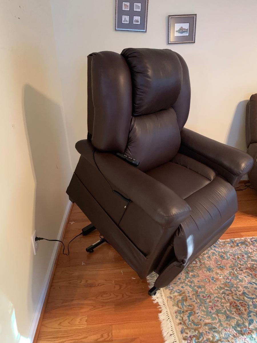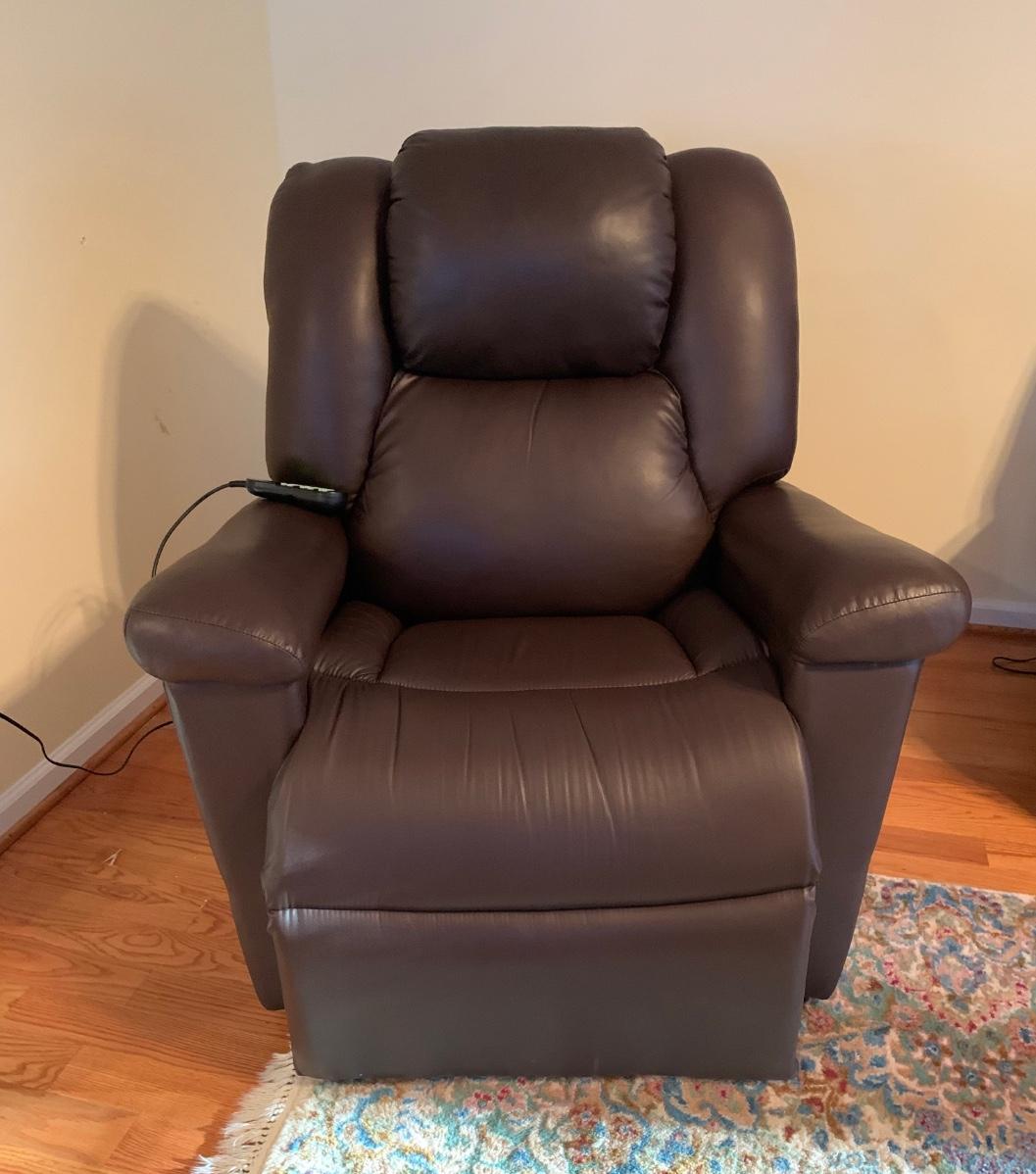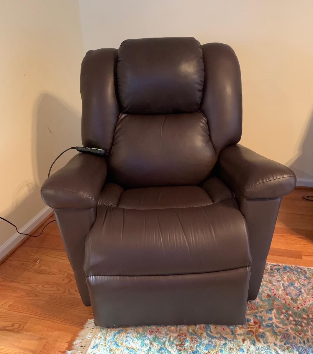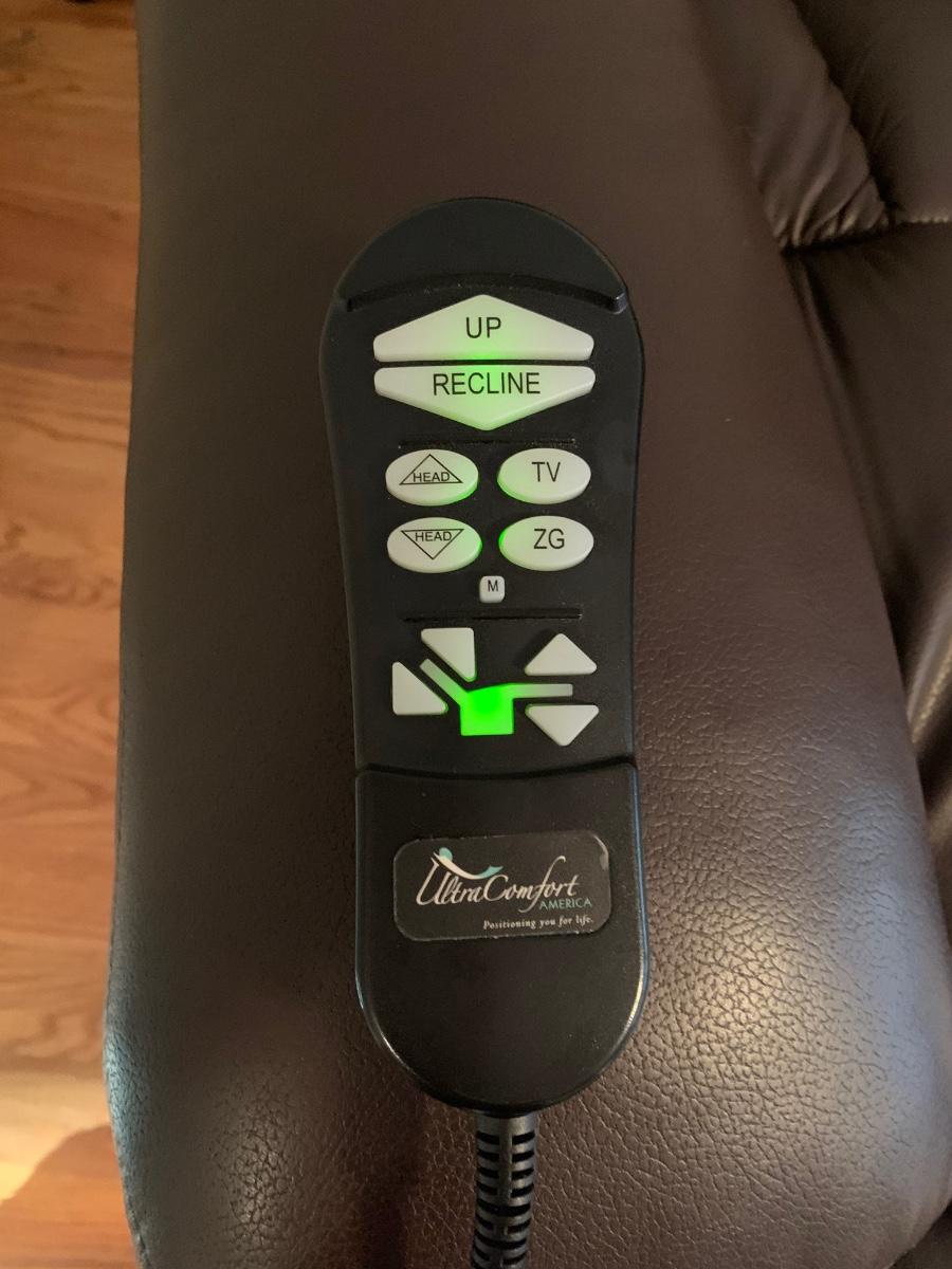 LOT 32: 2019 Leather Ultra Comfort Power Lift & Reclining Chair EUC