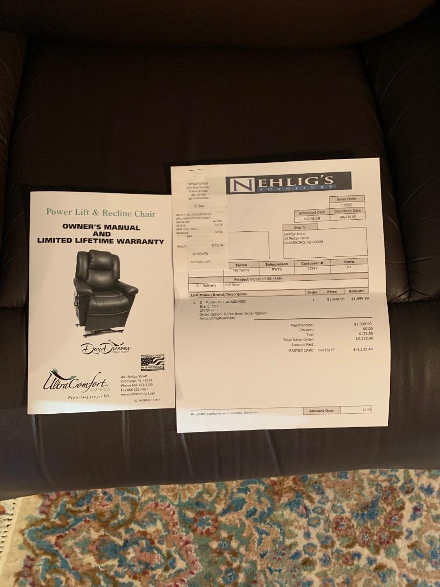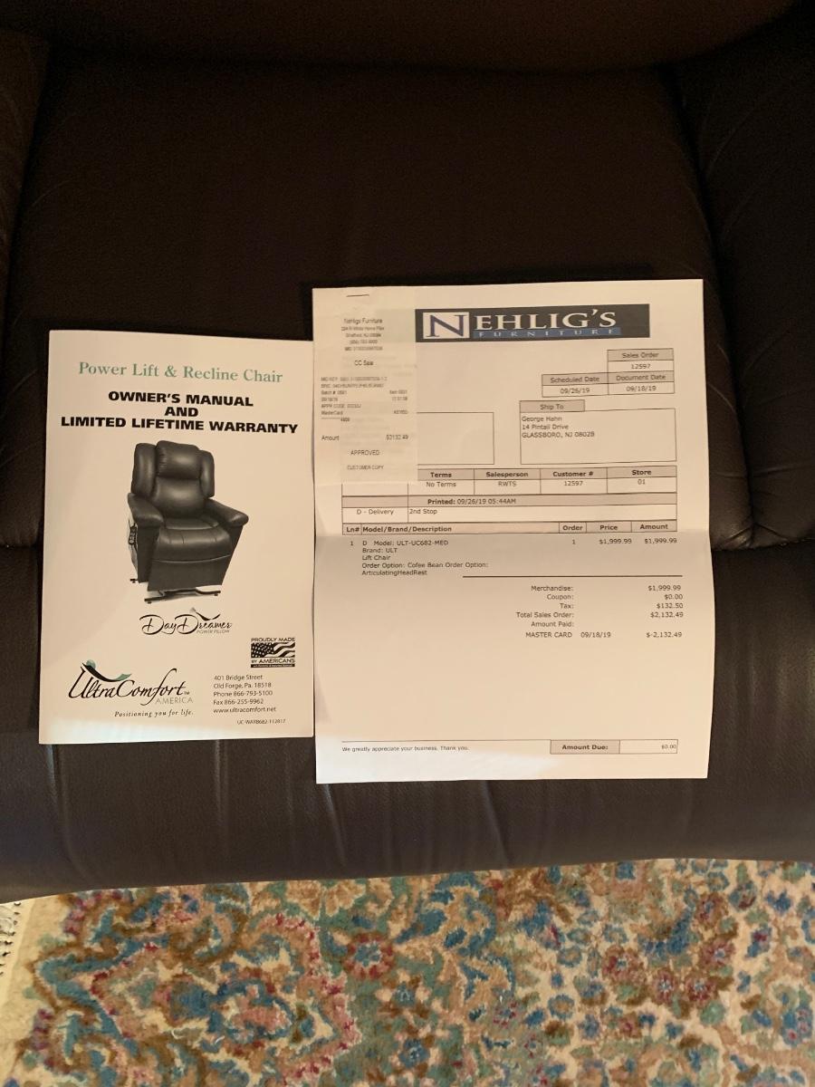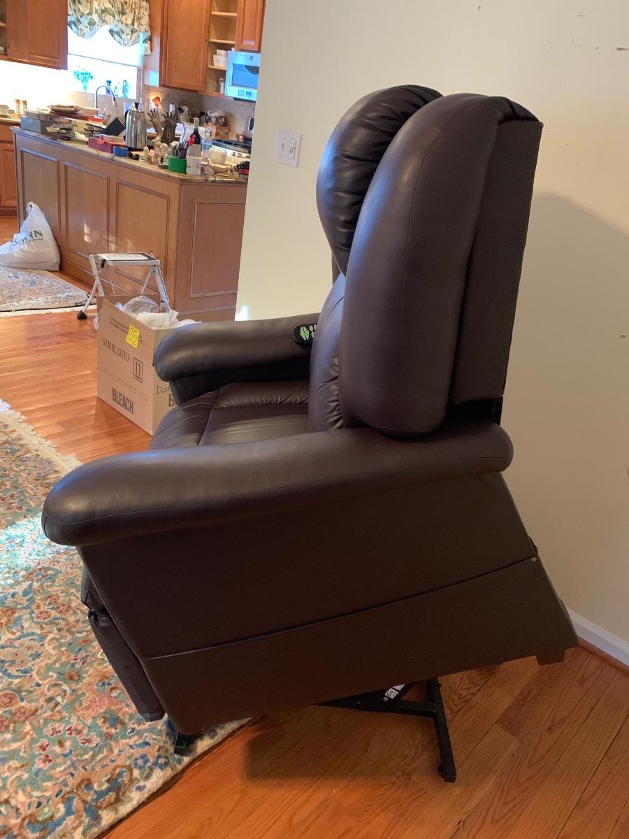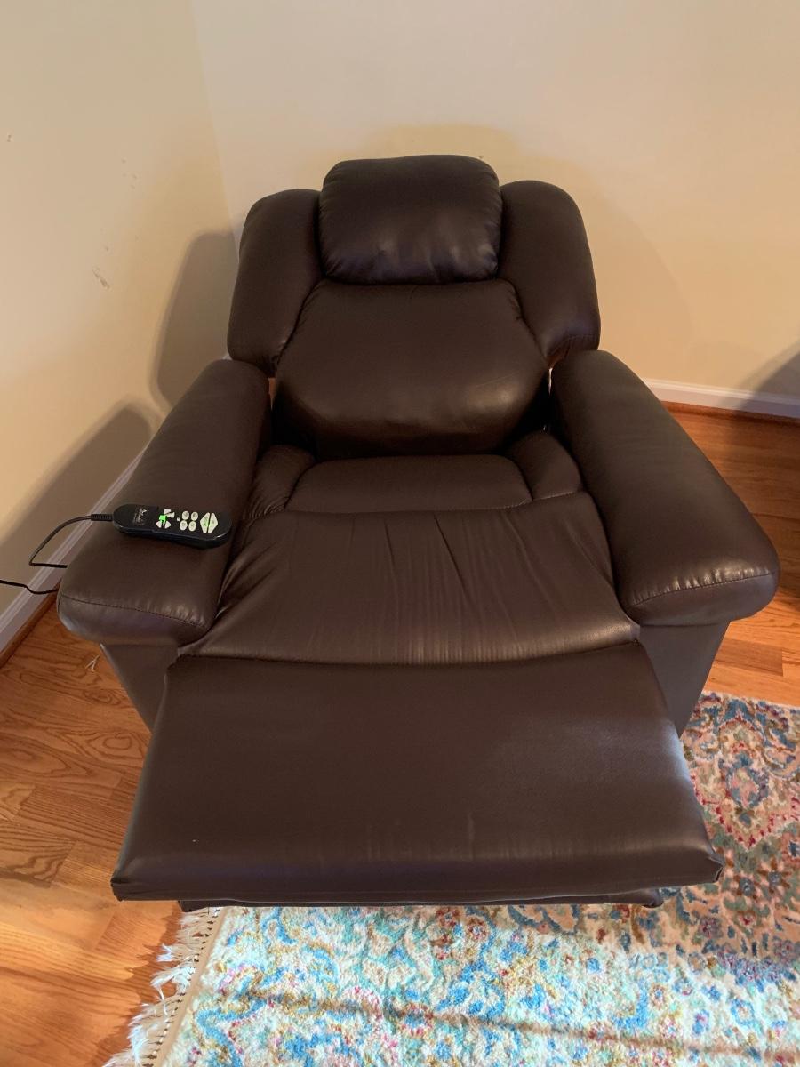 LOT 32: 2019 Leather Ultra Comfort Power Lift & Reclining Chair EUC