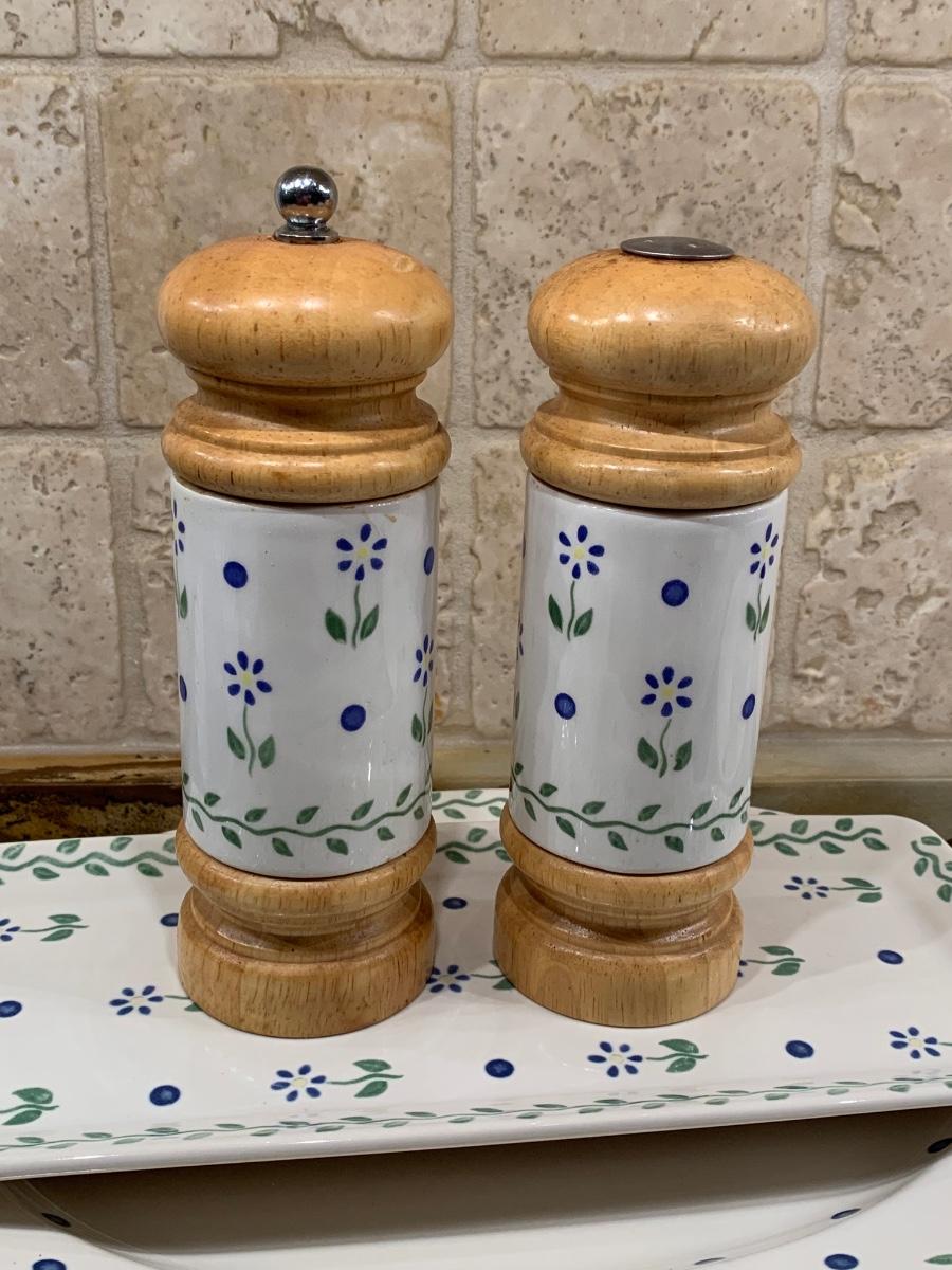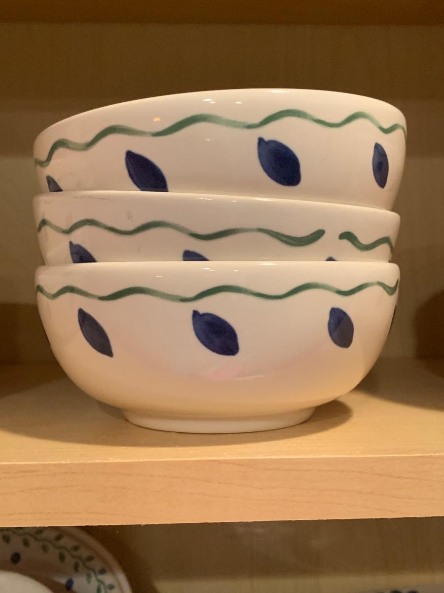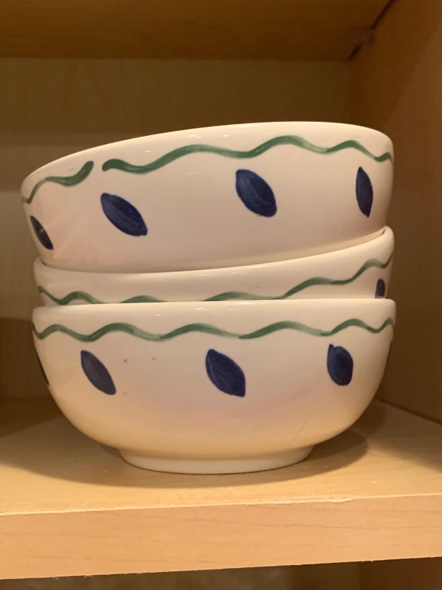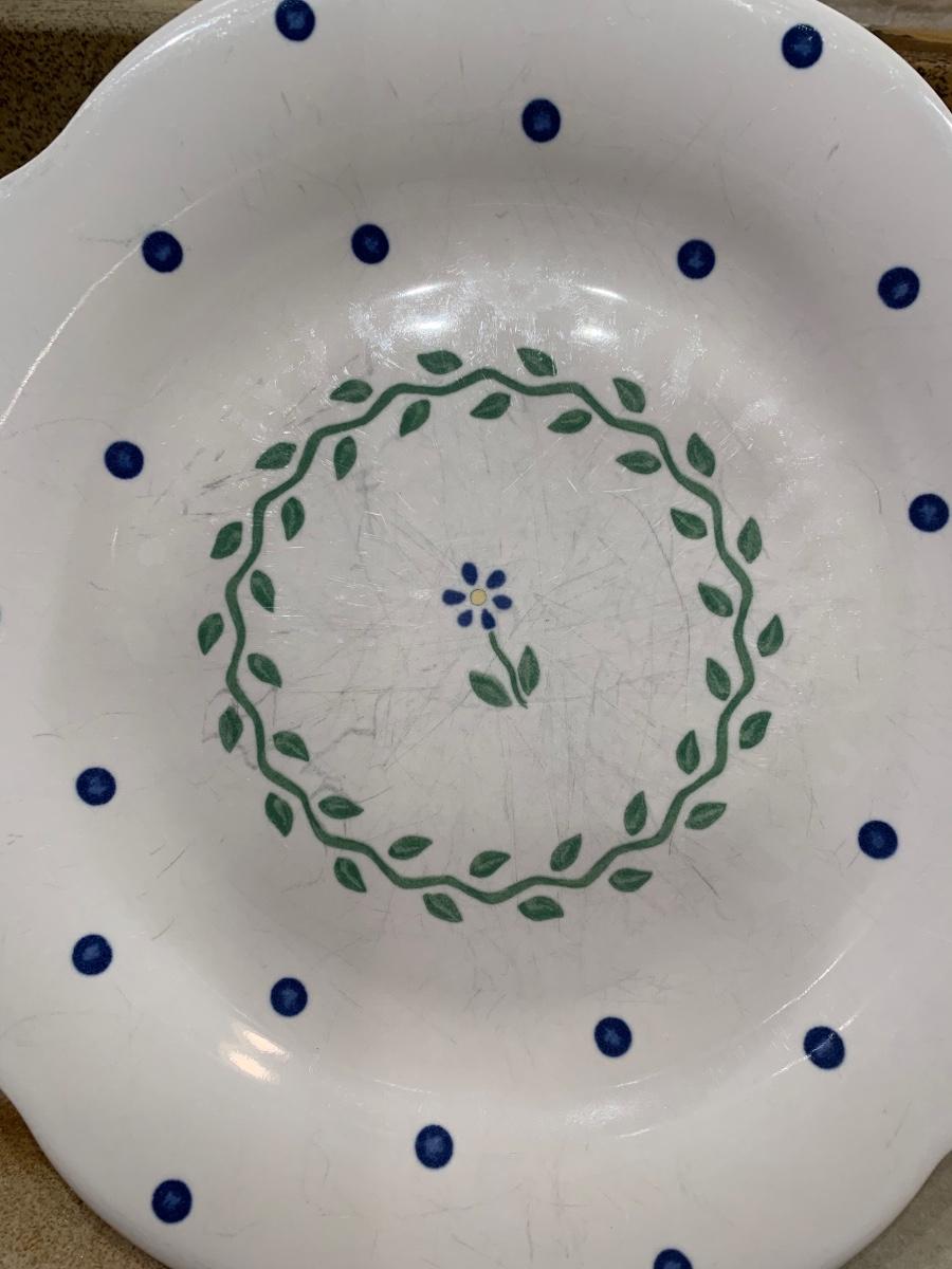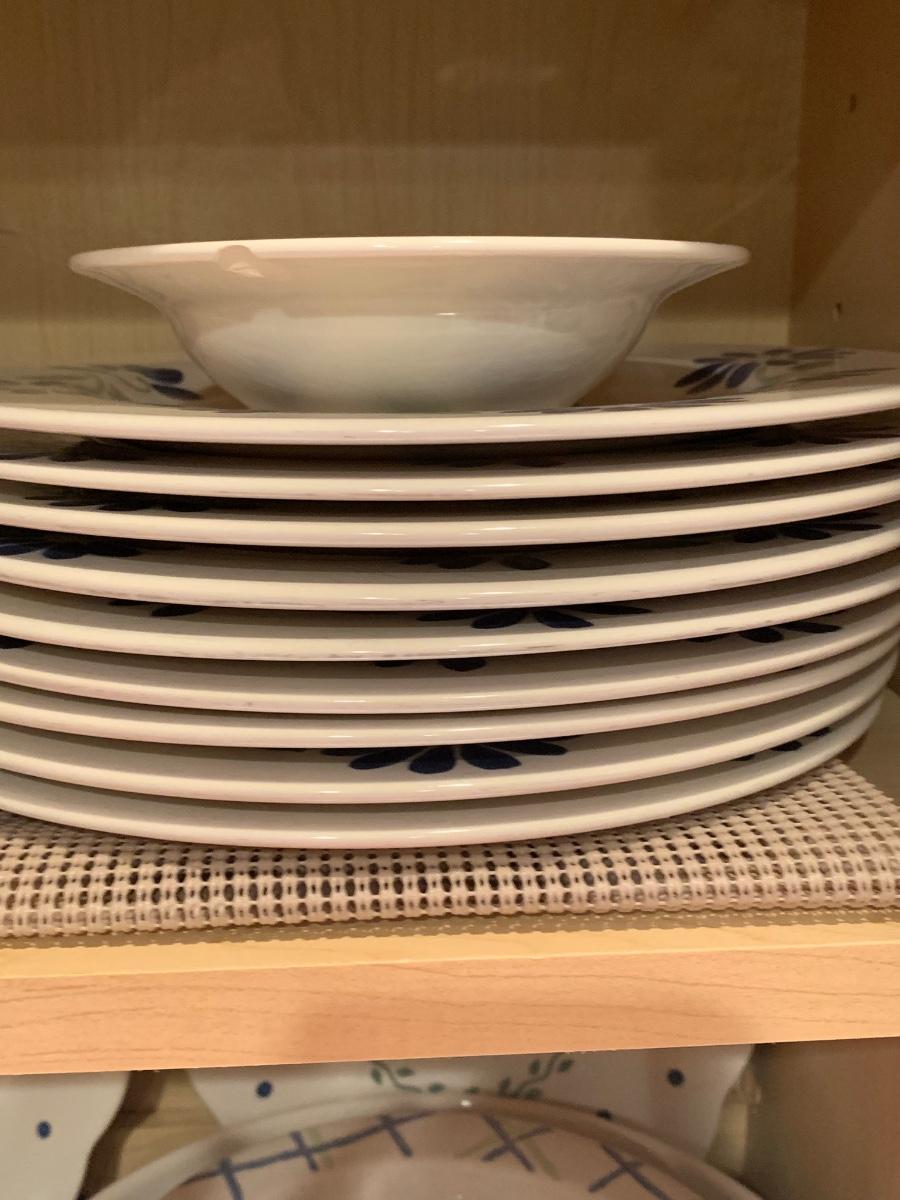 Lovely lot of mixed blue, green, and white dish sets by Pfaltzgraff including patterns such as Clover Hill and Springwood. These are pre-owned and do show surface scuffs from use. All dishes in the cabinet do have scuffs/crazing however the dishes shown or the counter do not show much wear or none at all.