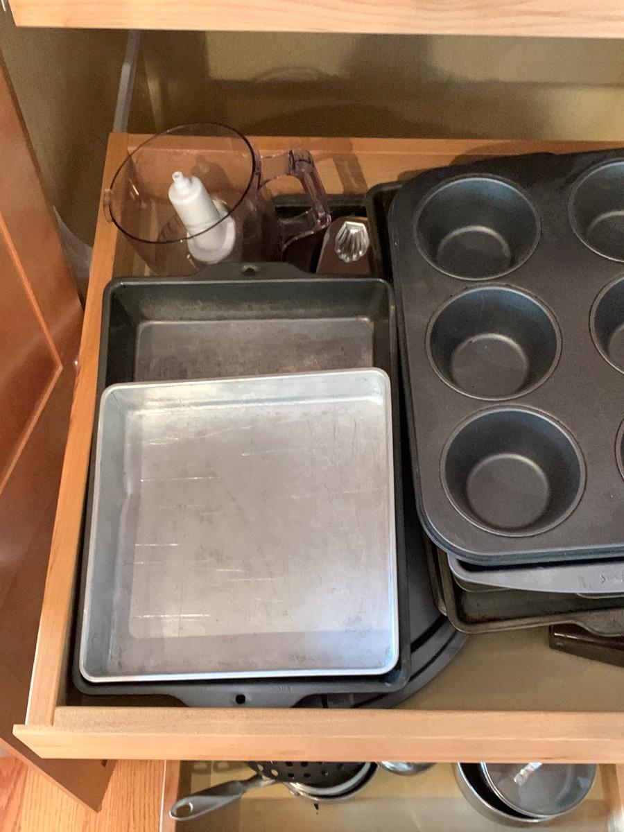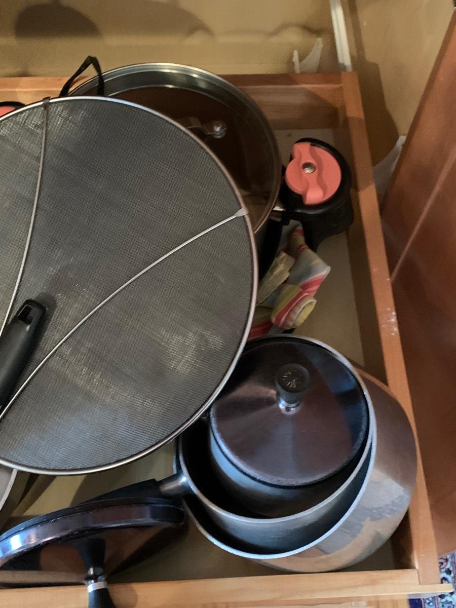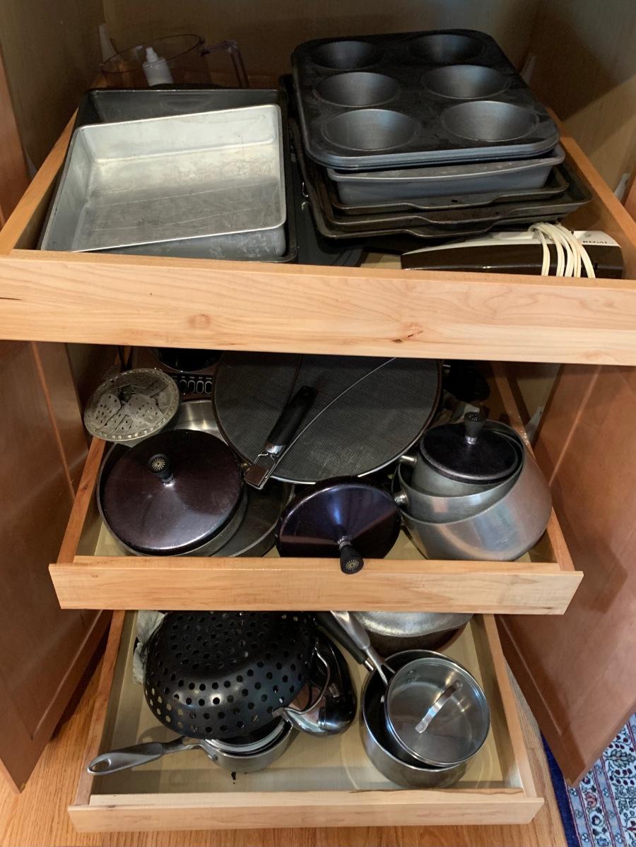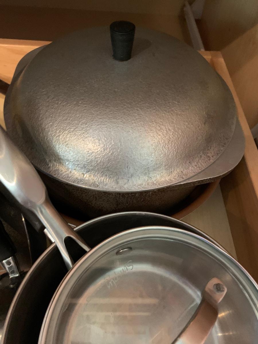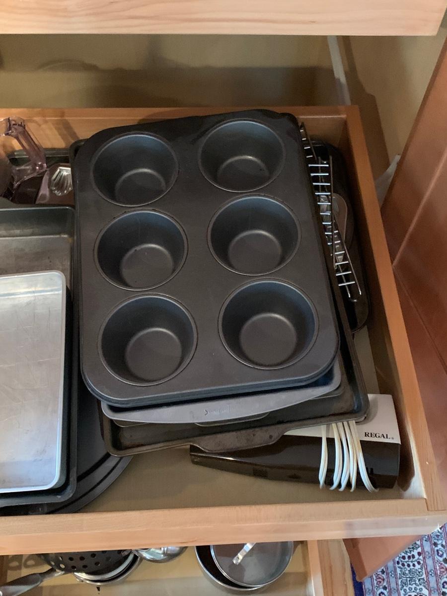 Mixed lot: Pots/Pans, baking tins, and more. All pre-ownedPlease see all pictures as they are the best representation of the items. The pictures show condition, measurements if taken, and what is included in the lot. Due to the large amount that we photograph and the time frame, we are not always able to take measurements. All items unless noted, are pre-owned and have been used. If you purchased furniture, you must bring help. We do not allow one person to carry large furniture out on their own. Bring help, tools and a truck for the safety of our client’s homes, and your personal safety. Any damages that result to the property including walls, and floors due to moving of the furniture will be charged to the buyer. Company policy. Thank you.