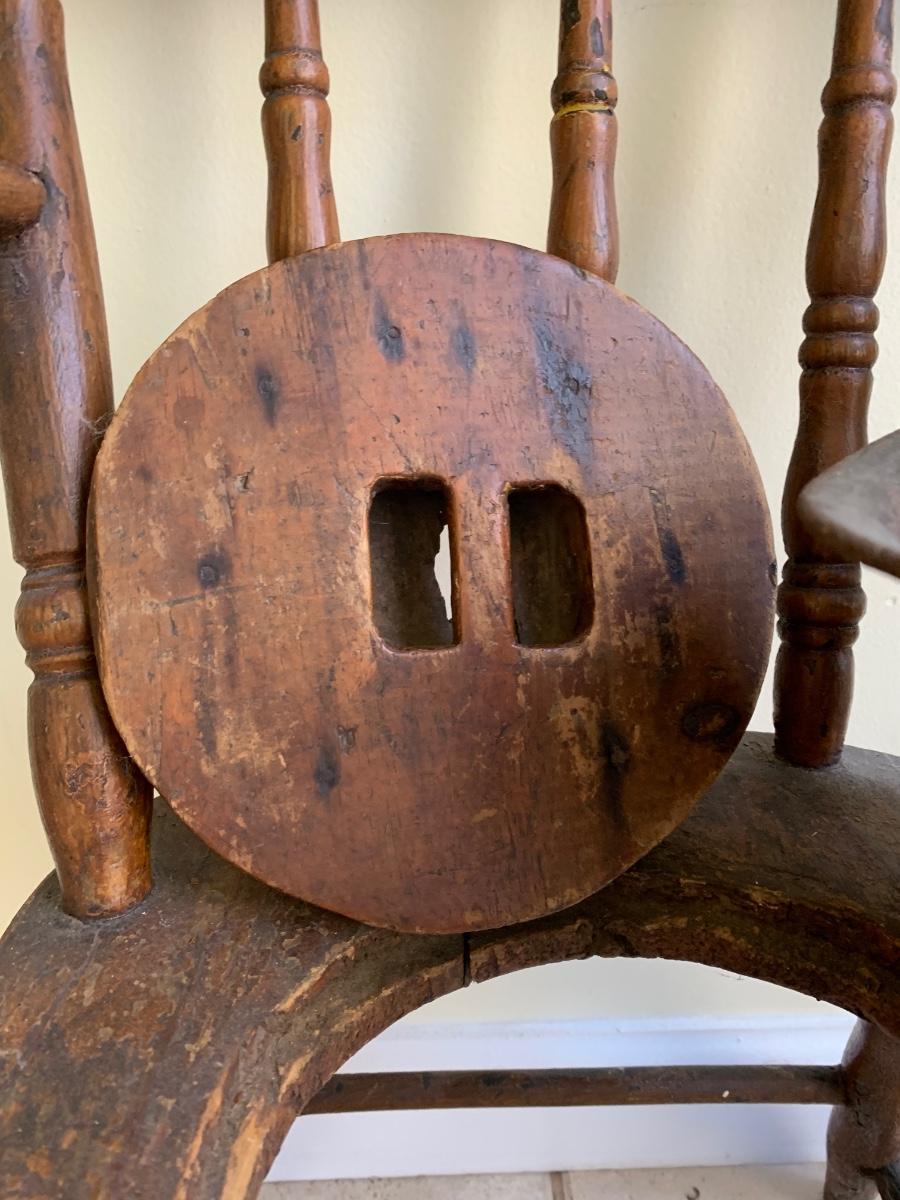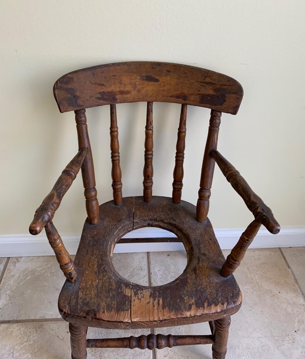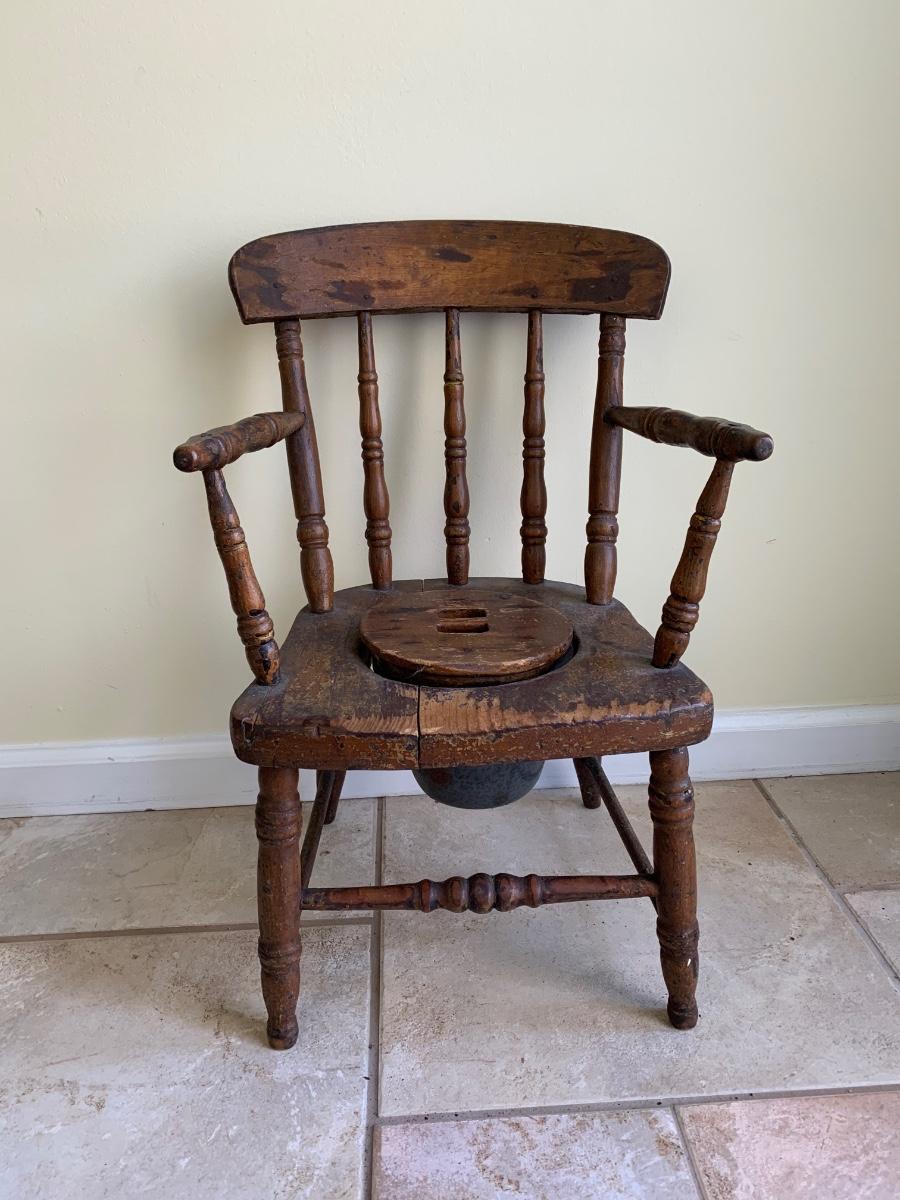 LOT 69: Primitive Lot: Advertising Wall Match Holder, Childs Potty Chair and More