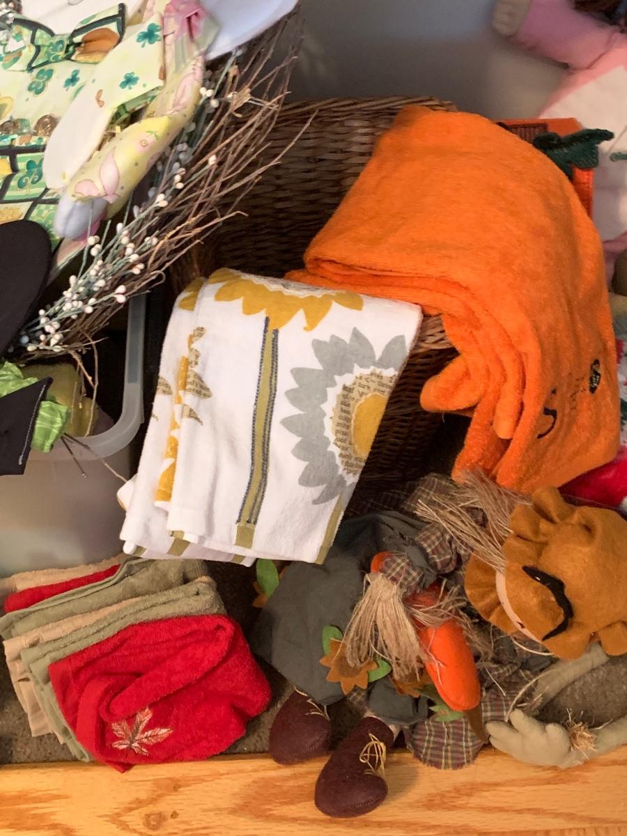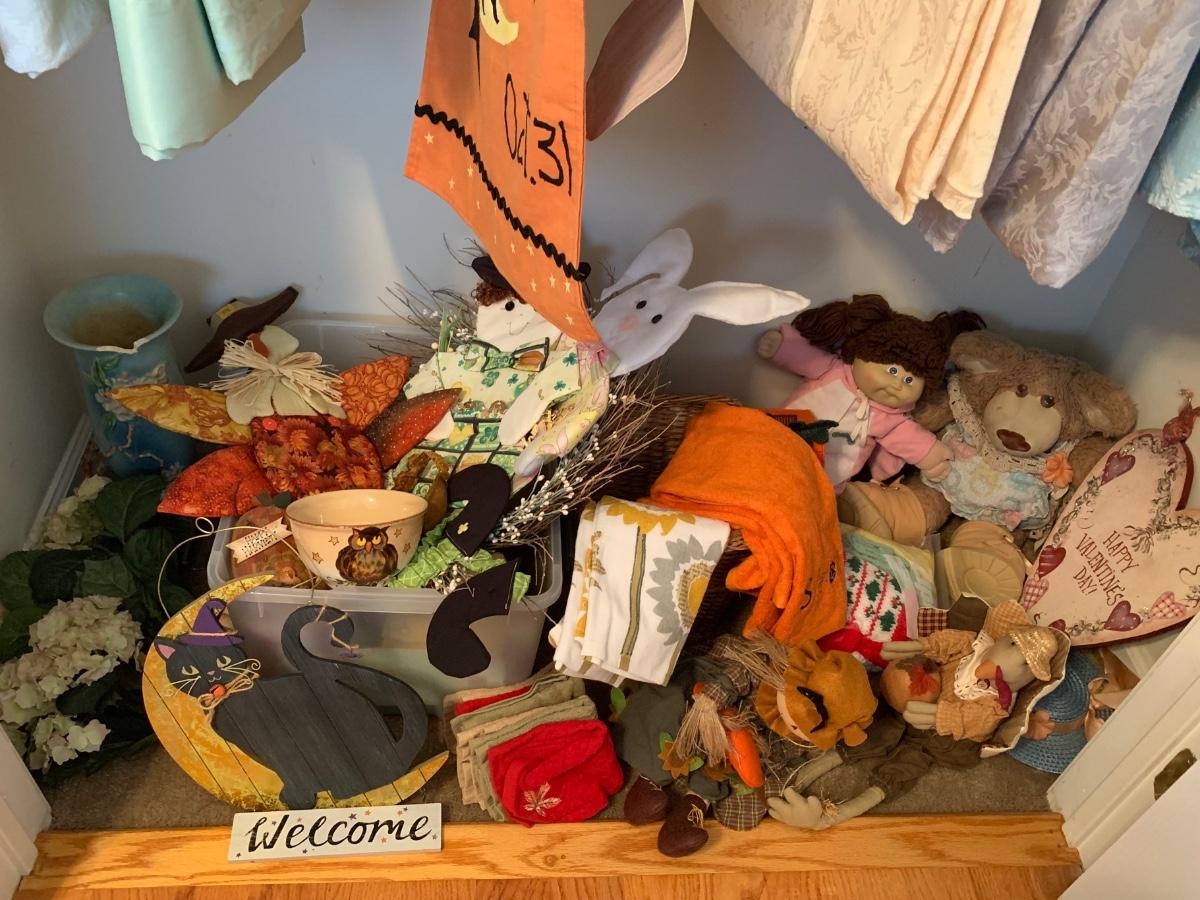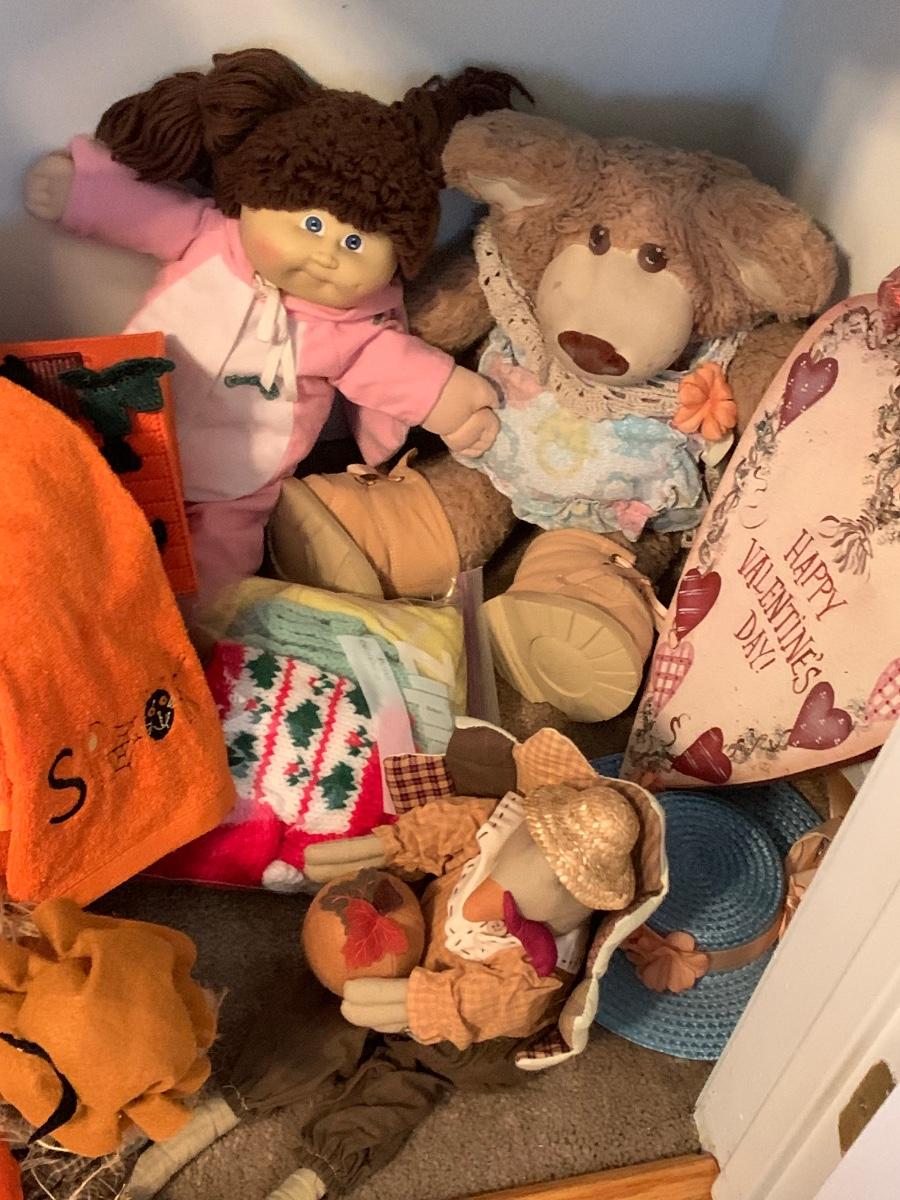 LOT 74: Closet Treasures: Dolls, Holiday. Linens and More