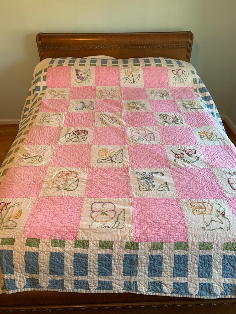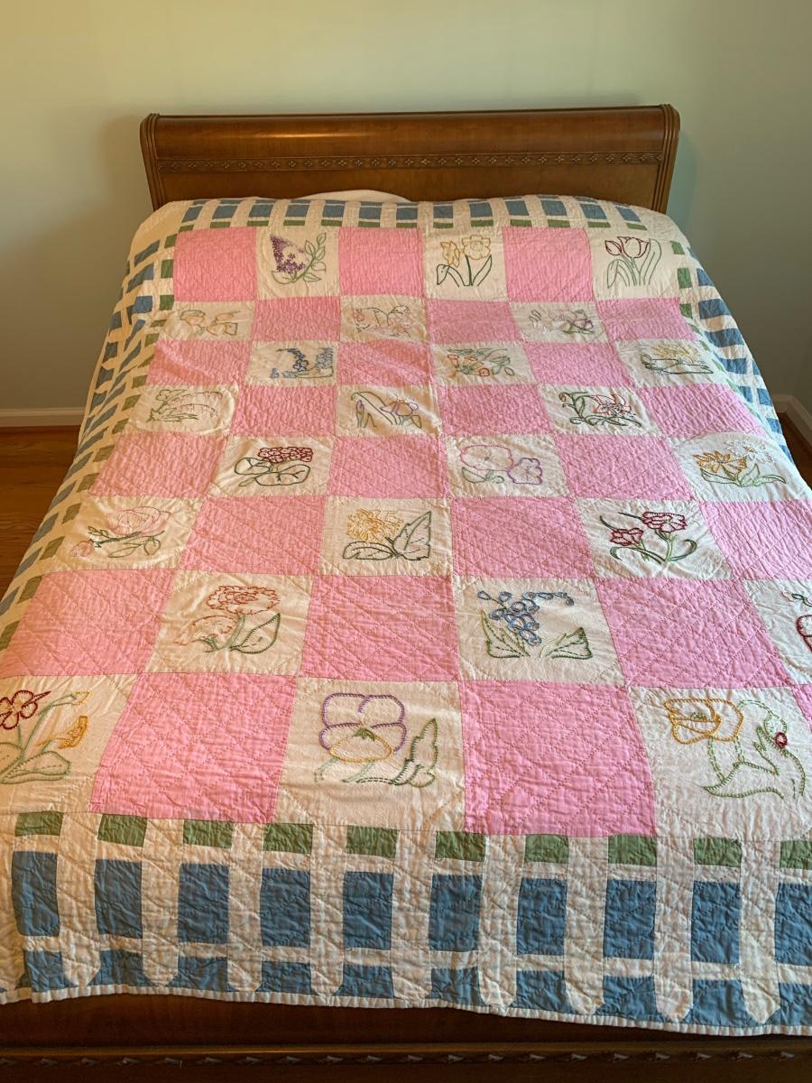 Beautifully made quilt. it is displayed on a full size bed. More than likely was made for a twin bed.