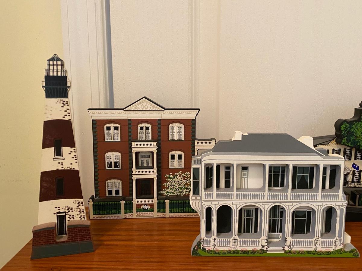 LOT C83: Sheila's Collectible Wooden Houses: Charleston Rainbow Row and More