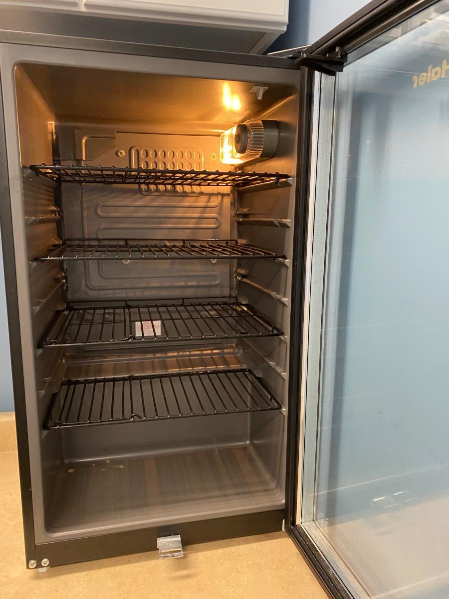 Mini fridge for wine or beverages. Powers up. Please see all pictures as they are the best representation of the items. The pictures show condition, measurements if taken, and what is included in the lot. Due to the large amount that we photograph and the time frame, we are not always able to take measurements. All items unless noted, are pre-owned and have been used. If you purchased furniture, you must bring help. We do not allow one person to carry large furniture out on their own. Bring help, tools and a truck for the safety of our client’s homes, and your personal safety. Any damages that result to the property including walls, and floors due to moving of the furniture will be charged to the buyer. Company policy. Thank you.