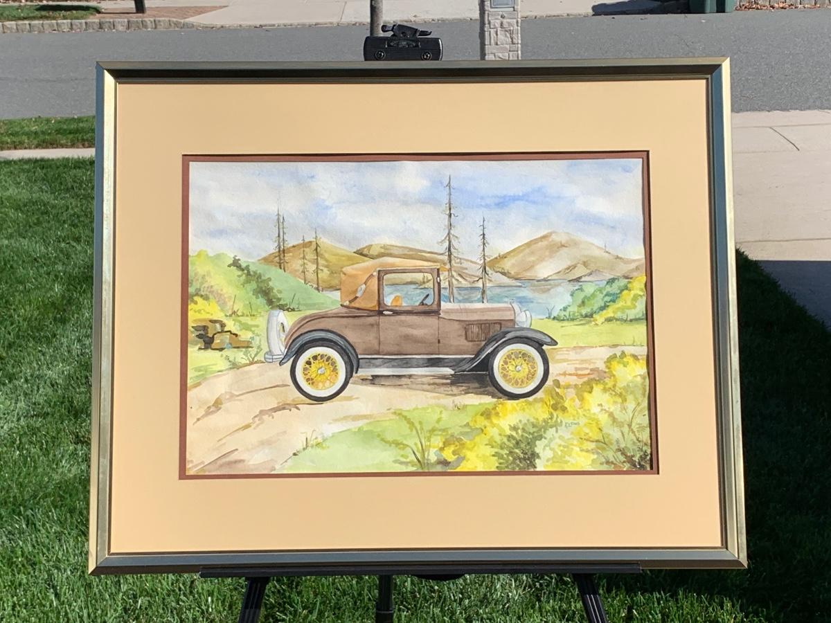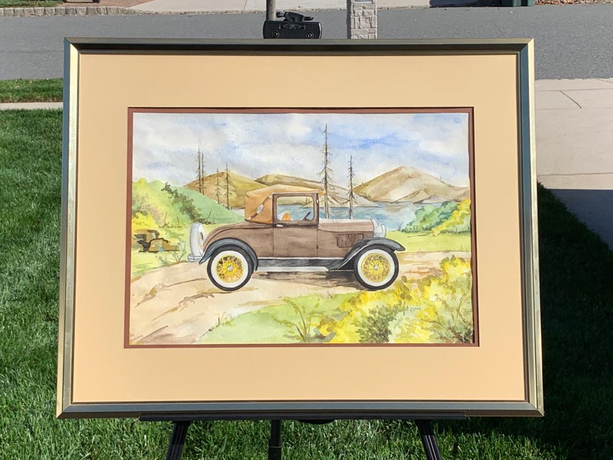 LOT 102R: R. Lewis Signed & Framed Art of Ford Model A