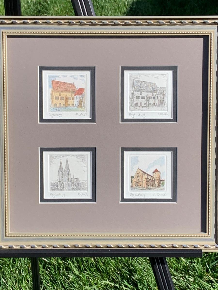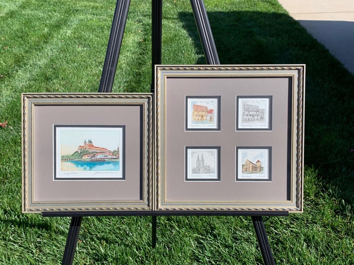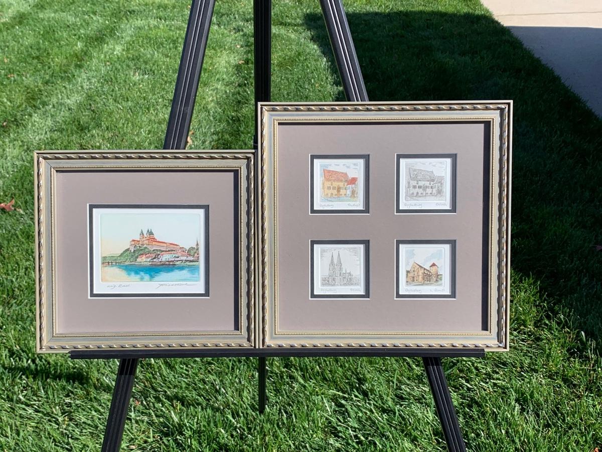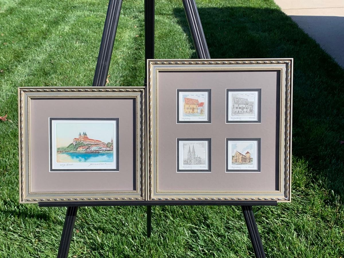 LOT 103R: Vintage Signed & Framed Etching w/Matching Frames