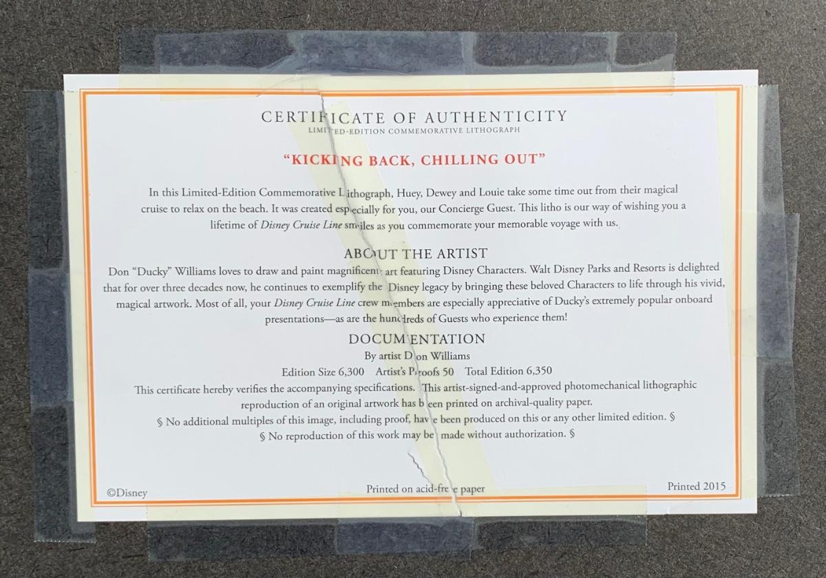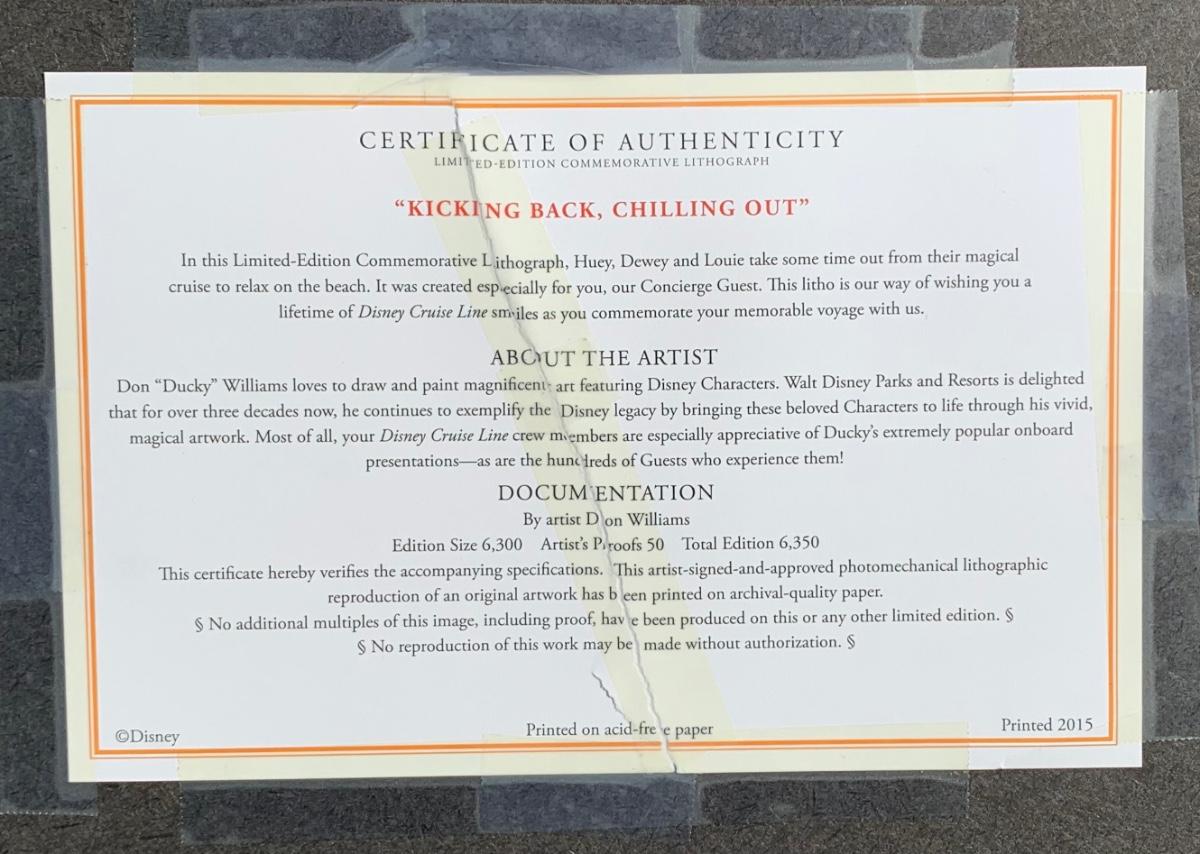 LOT 104 Disney Cruise Line "Kicking Back, Chilling Out" Signed & w/COA