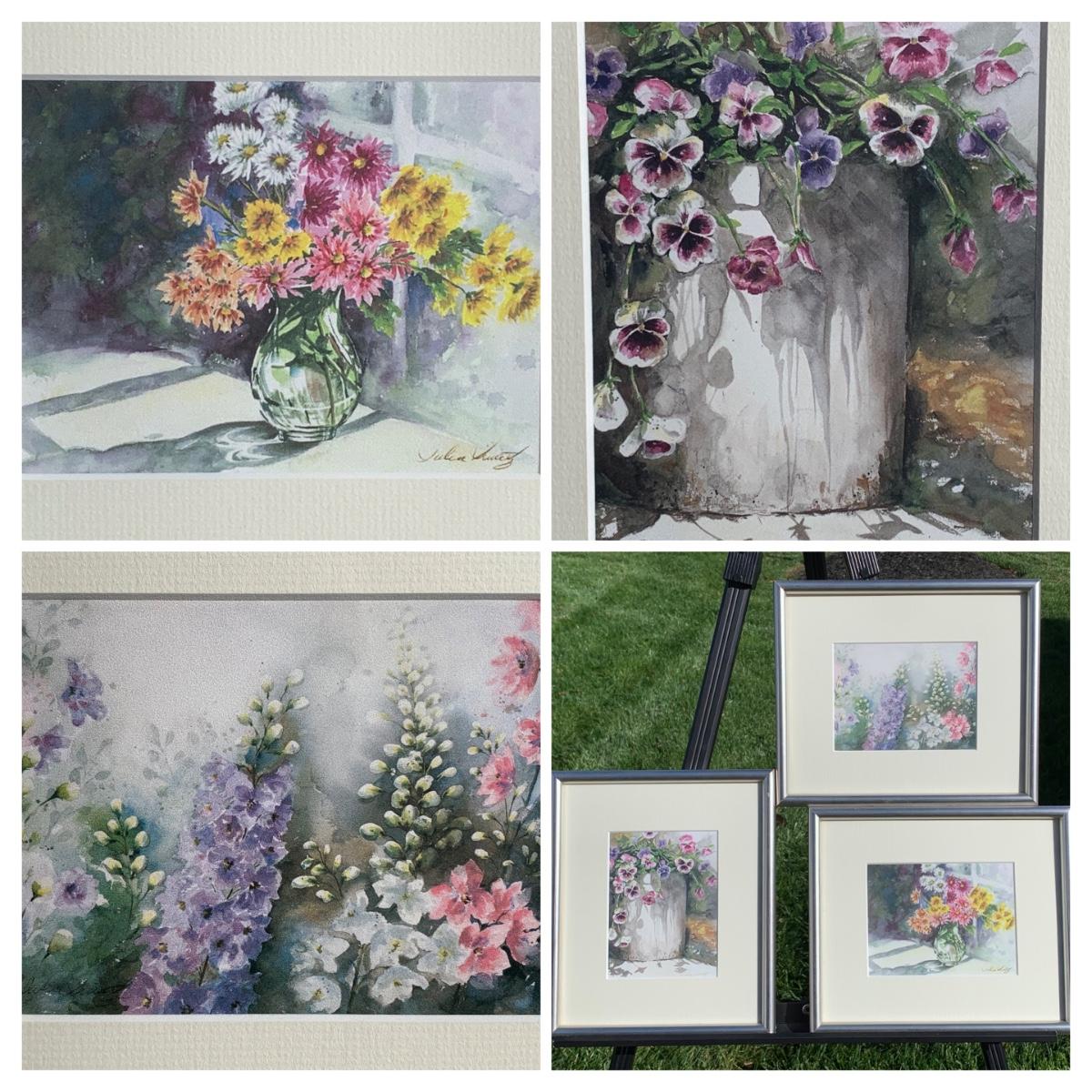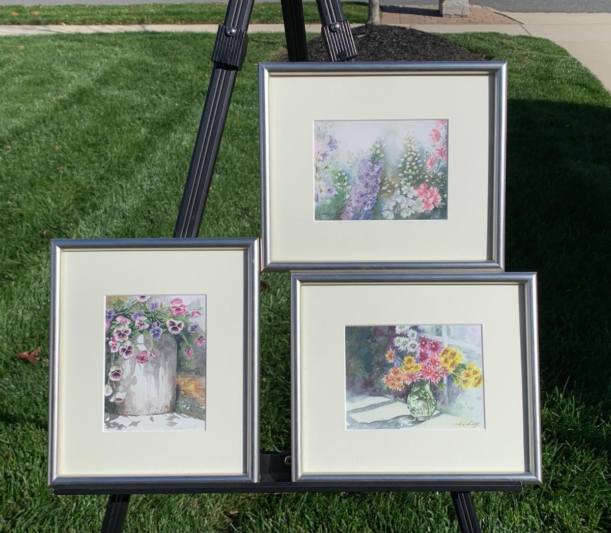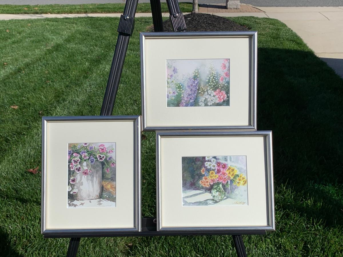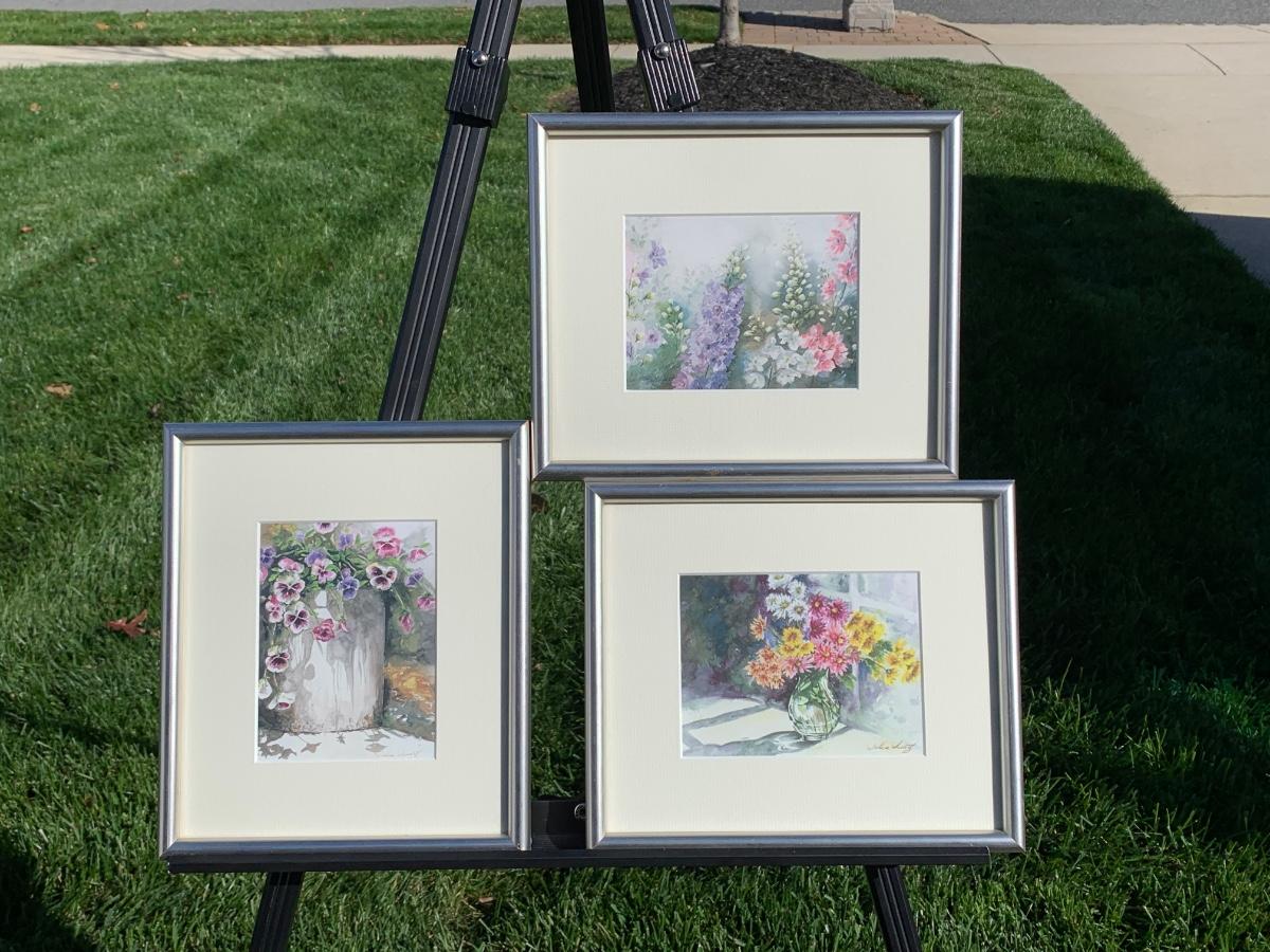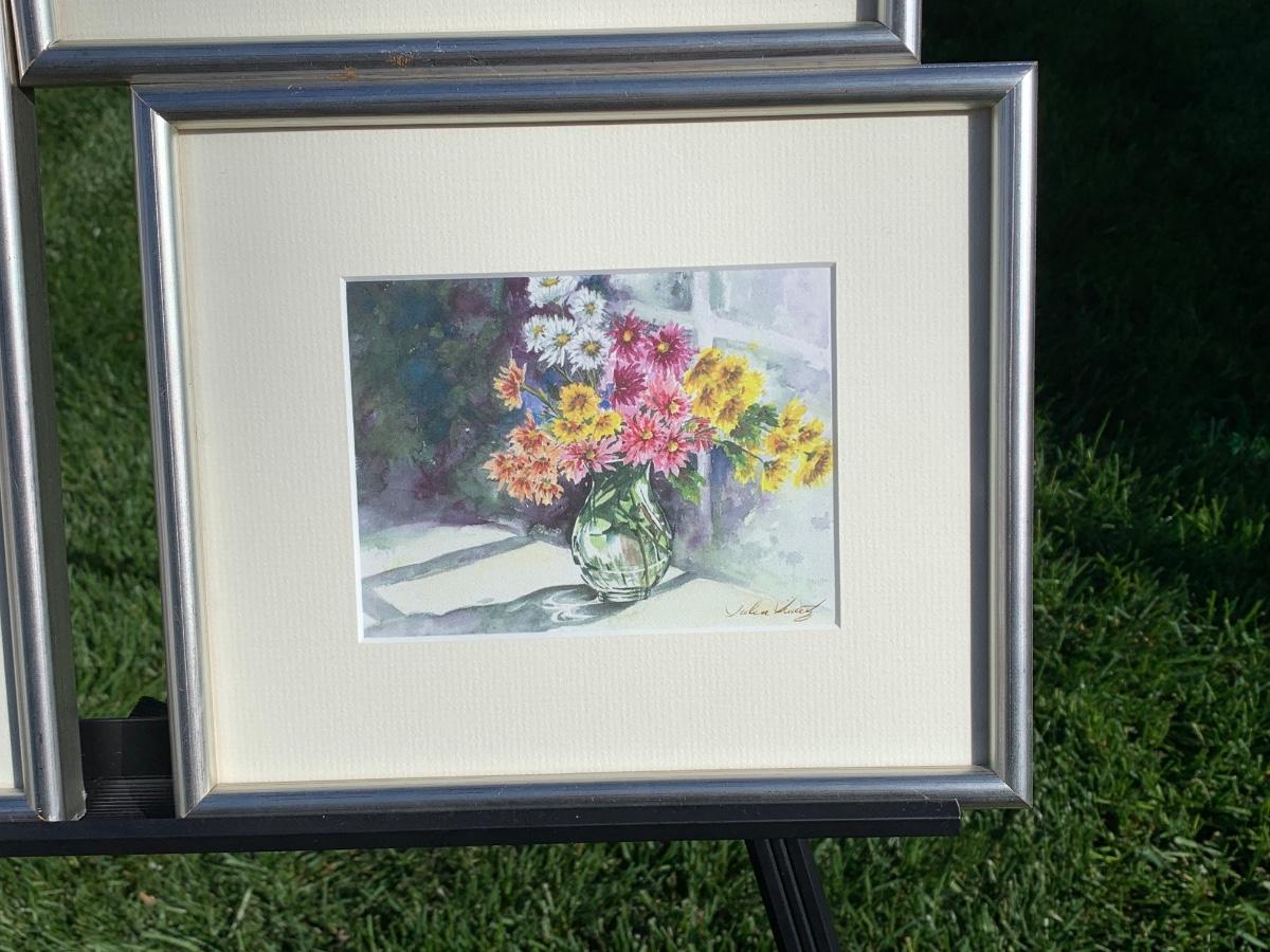 LOT 105: Floral Watercolors Signed & w./Matching Silvertone Frames