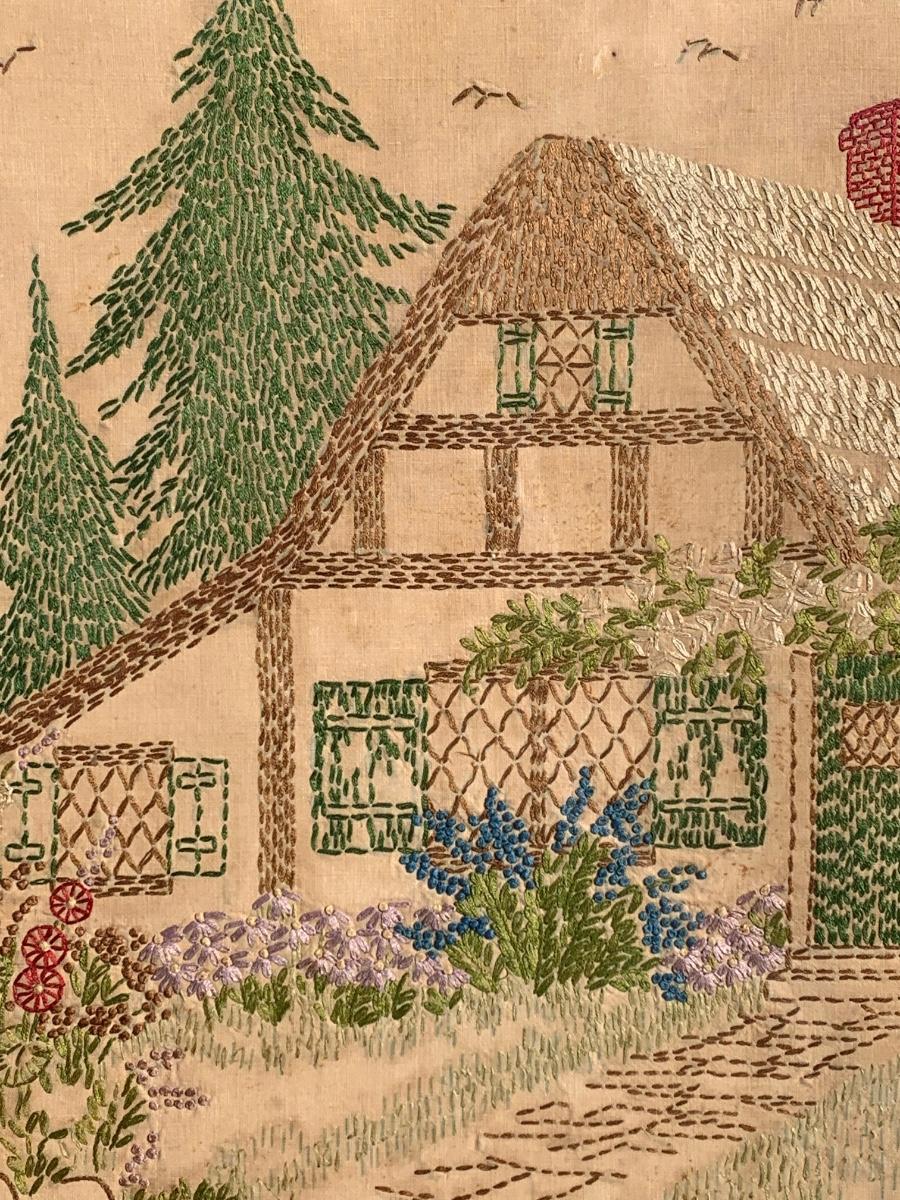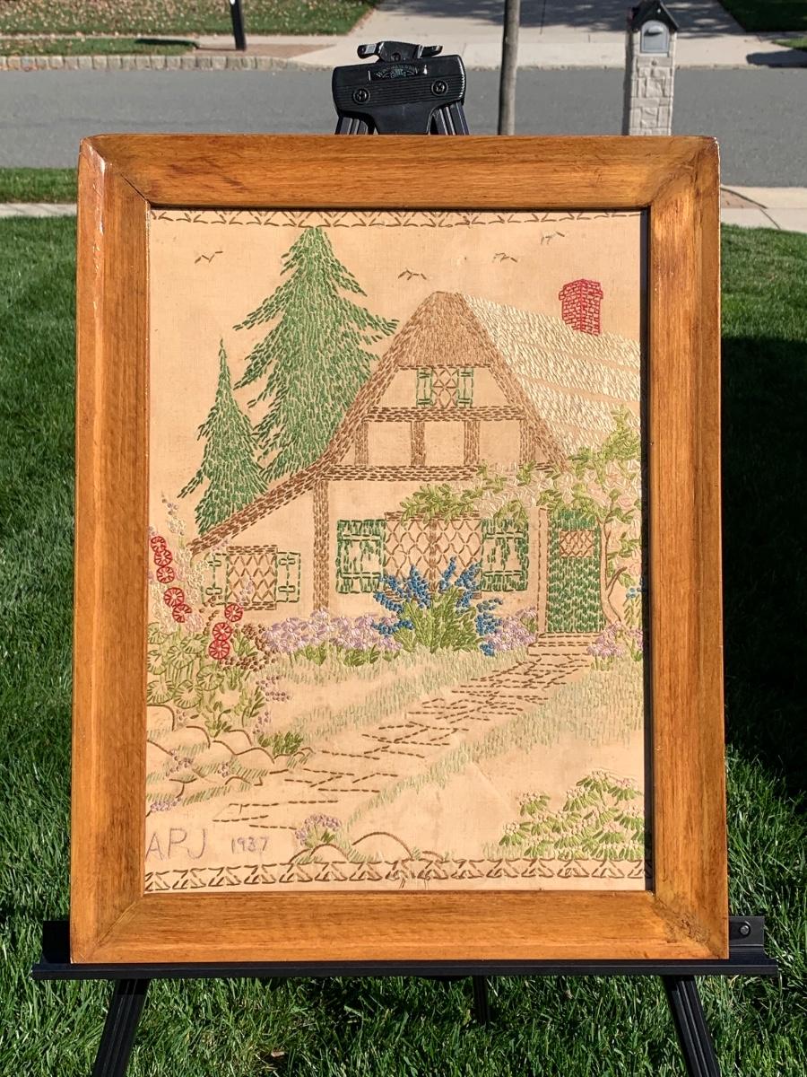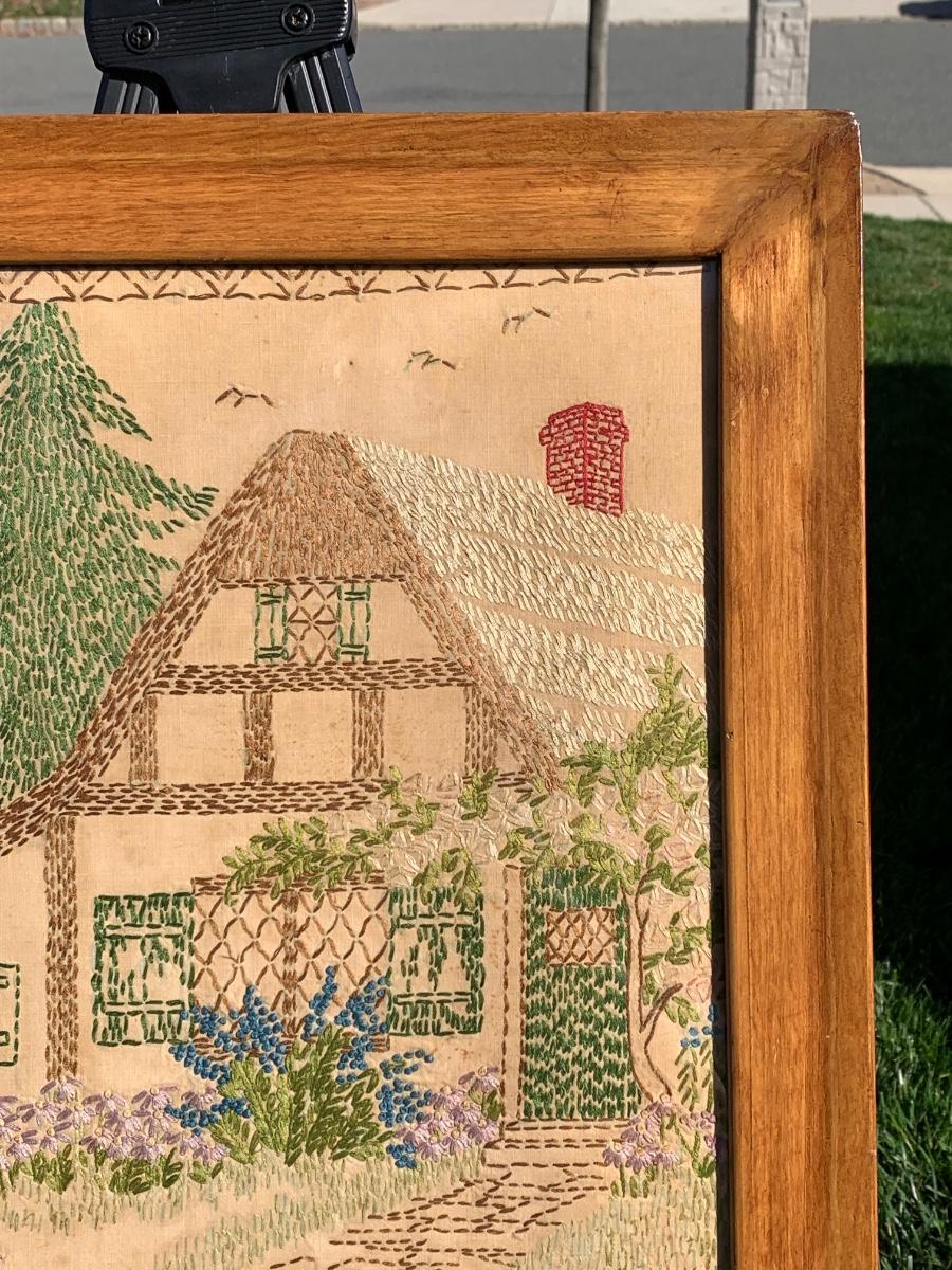 Beautiful detailed needlework of a cottage 18 x 22.5
