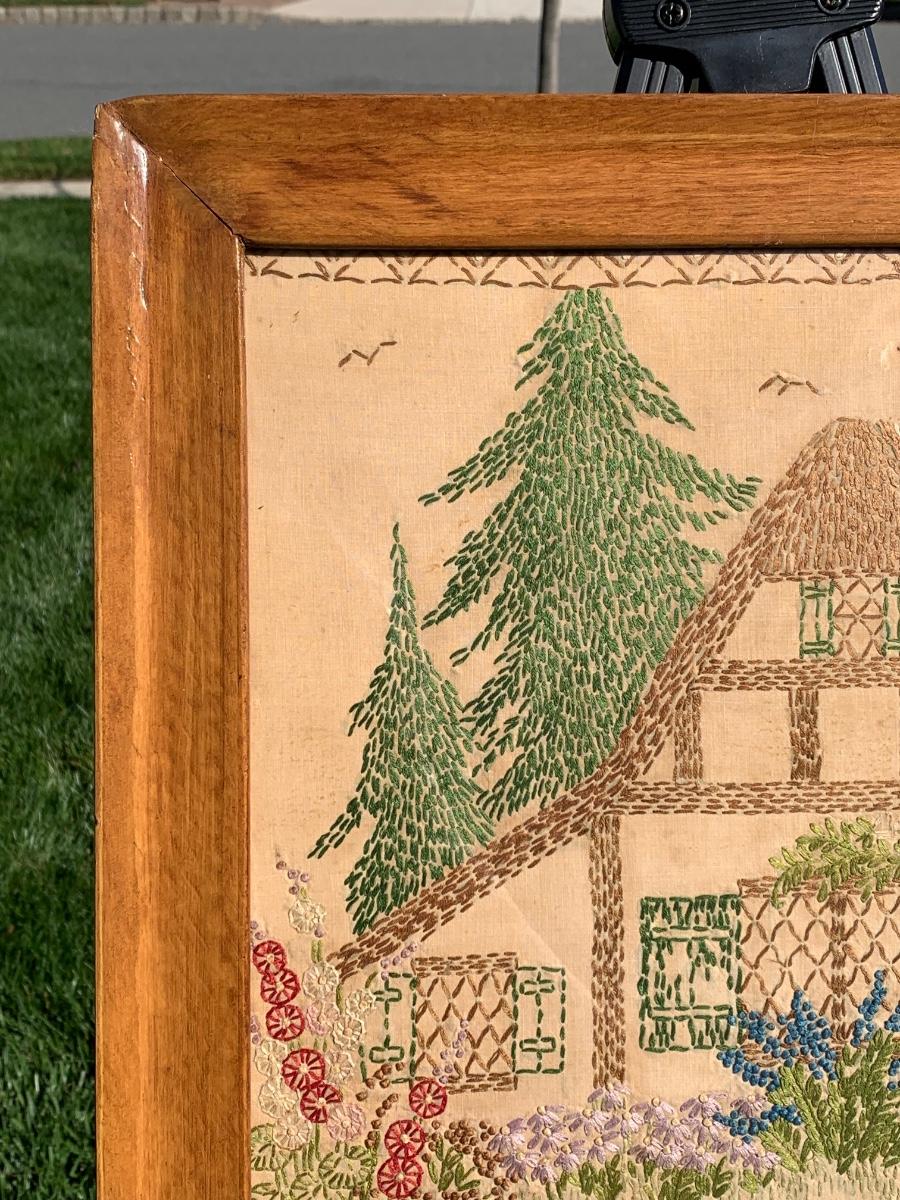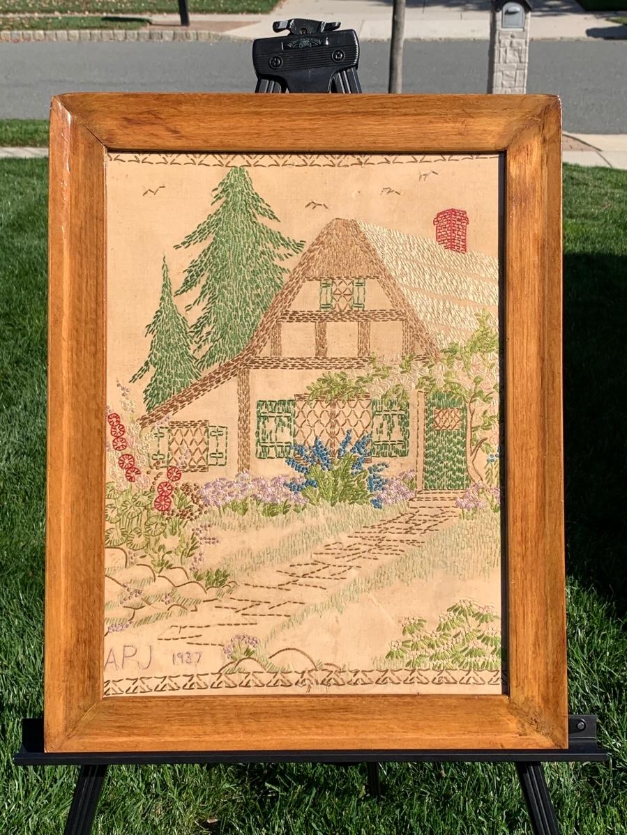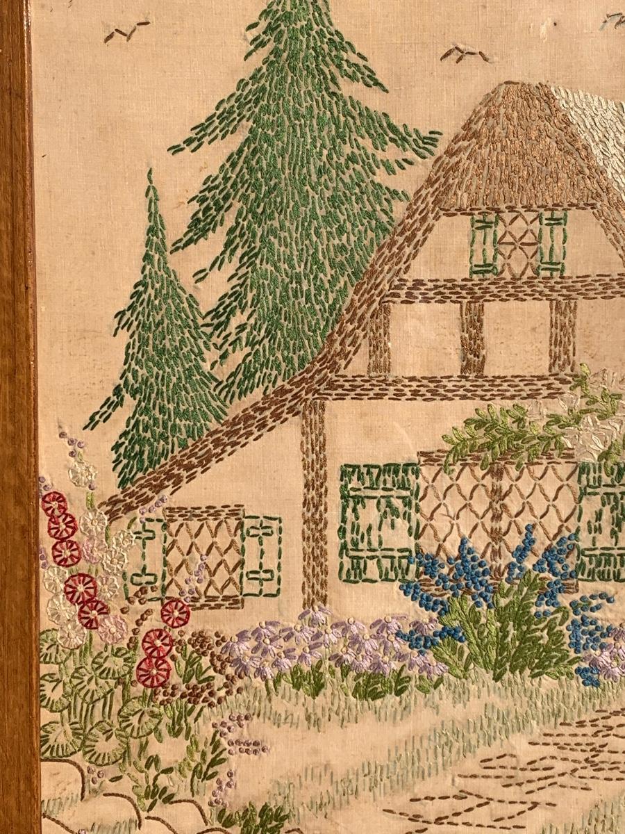 Beautiful detailed needlework of a cottage 18 x 22.5