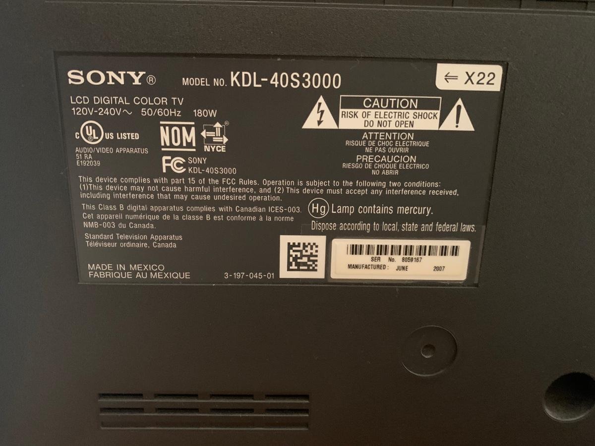 LOT 127R: Sony TV Model #KDL-40S3000 & Stand