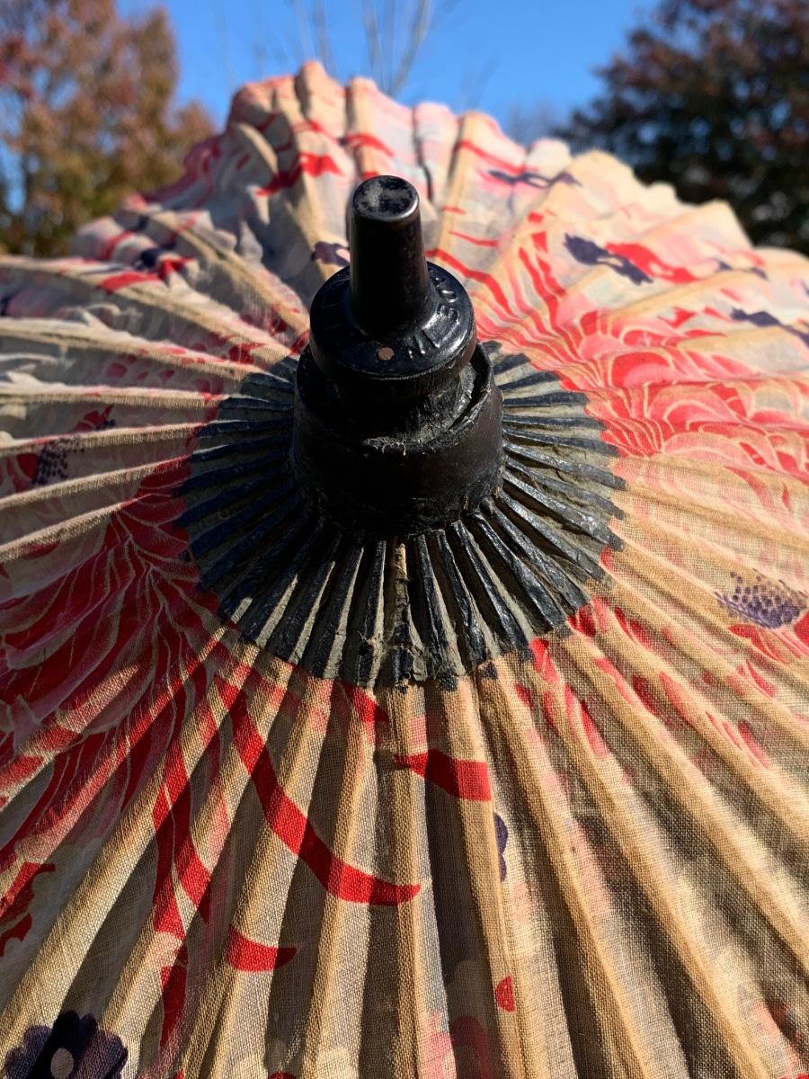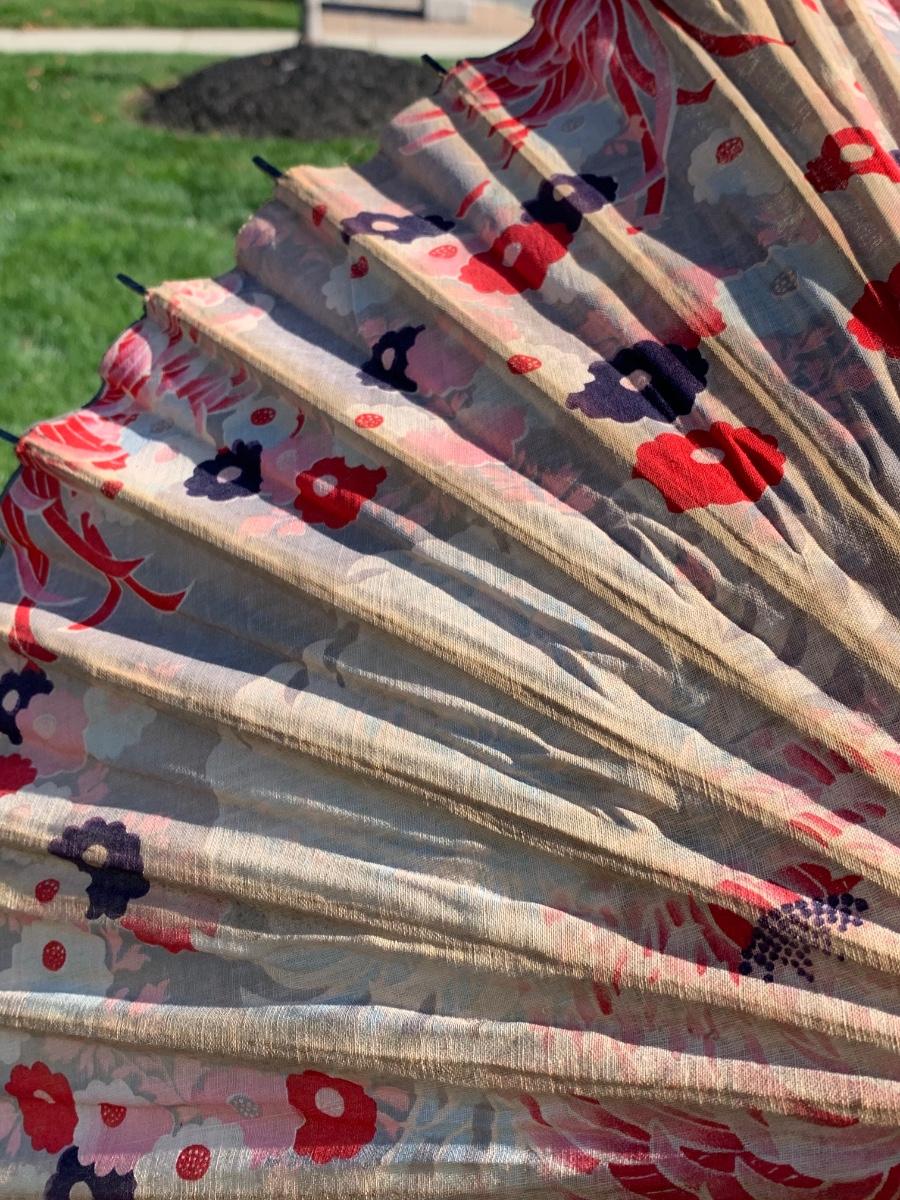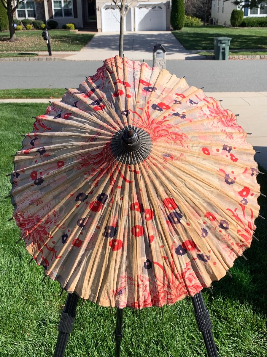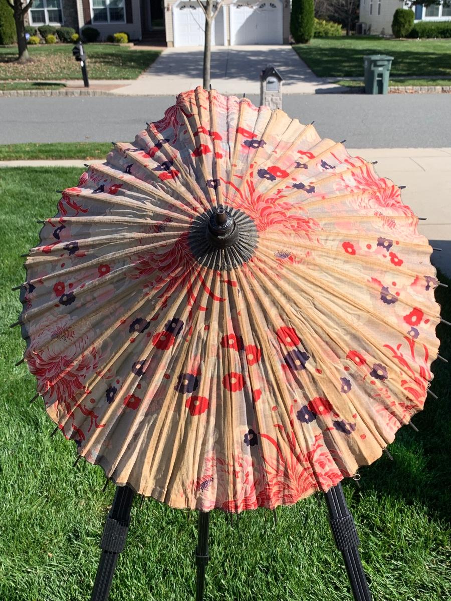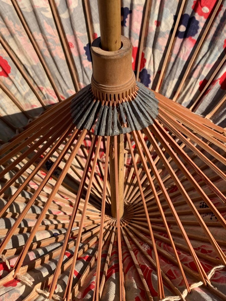LOT 135: Vintage Fabric Parasol and Framed Floral Prints